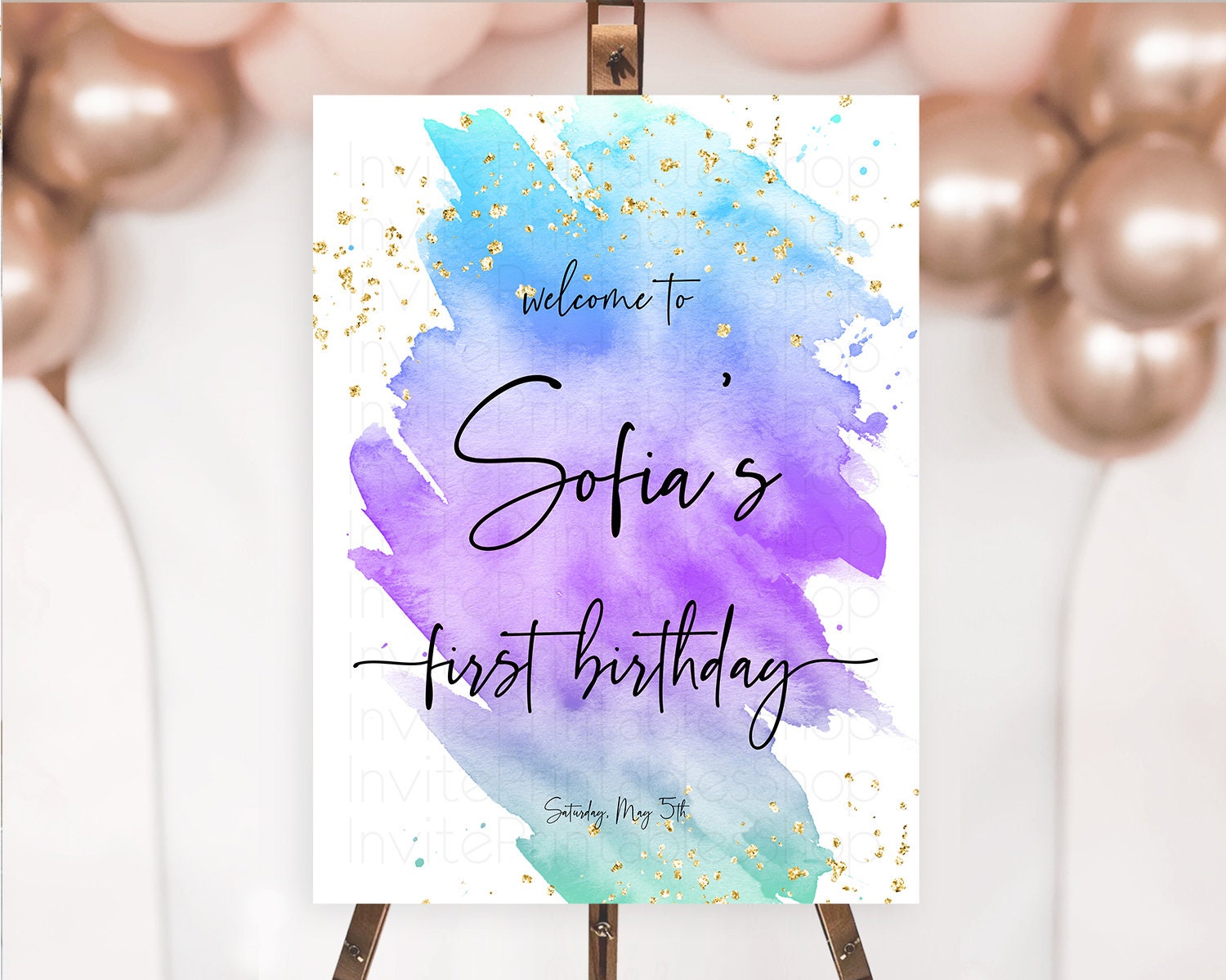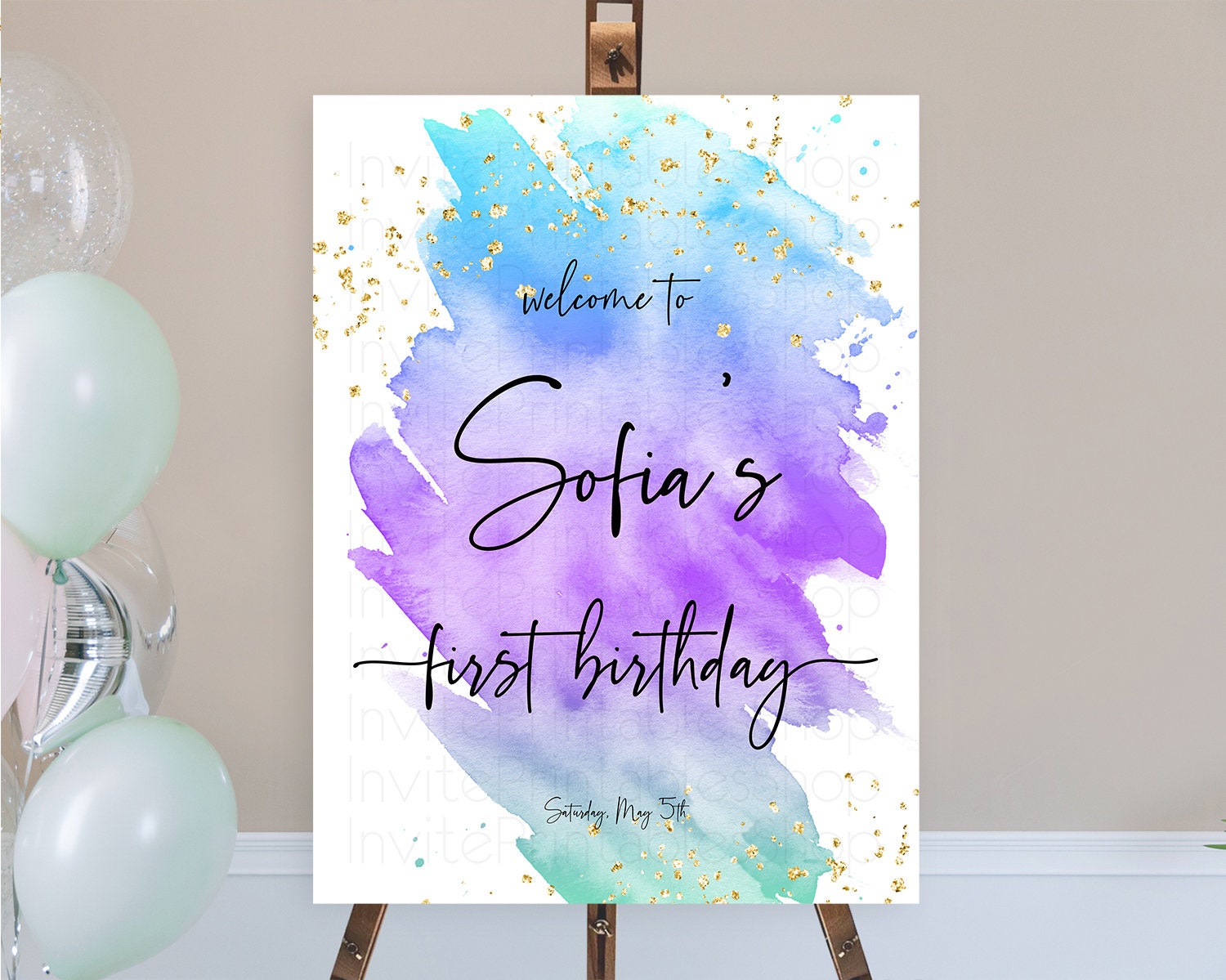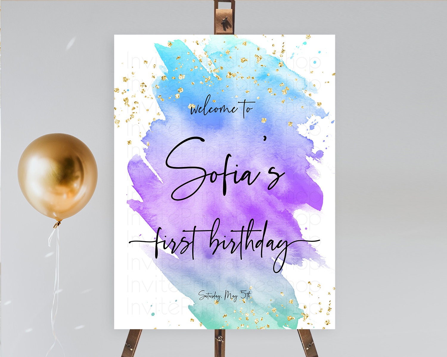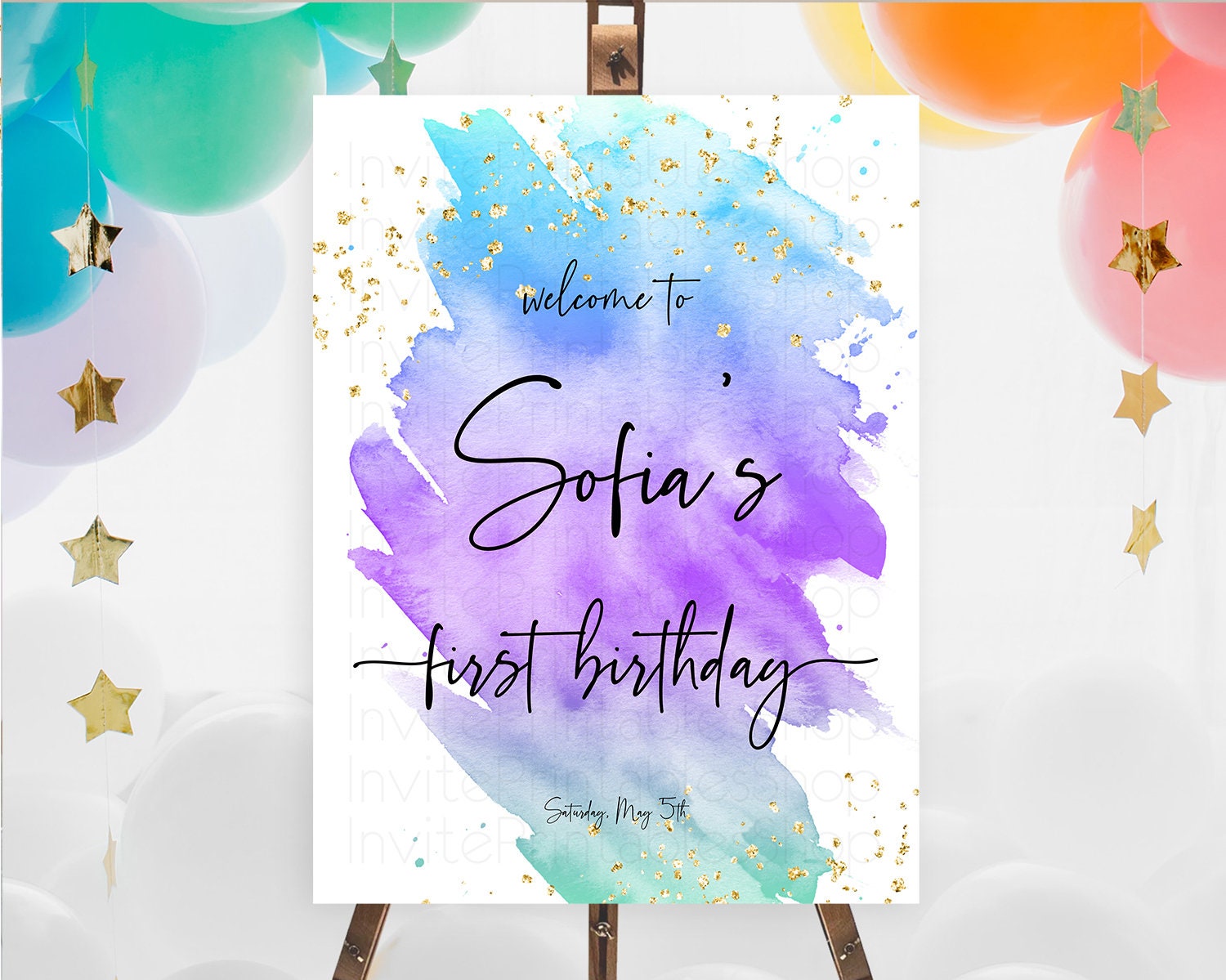 Pastel Welcome Sign Pastel Rainbow Welcome Sign Colorful Rainbow Confetti Watercolor Glitter Pastel First Birthday Welcome Sign D10491