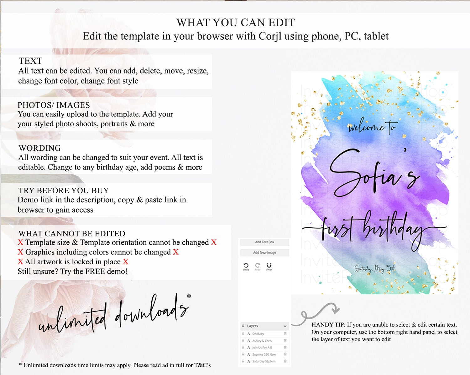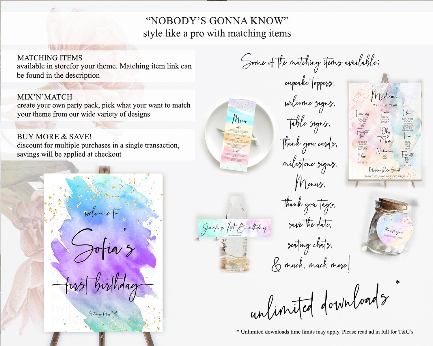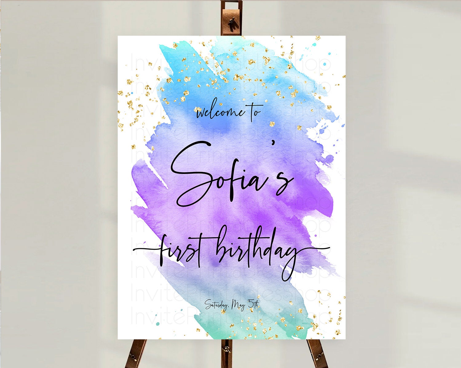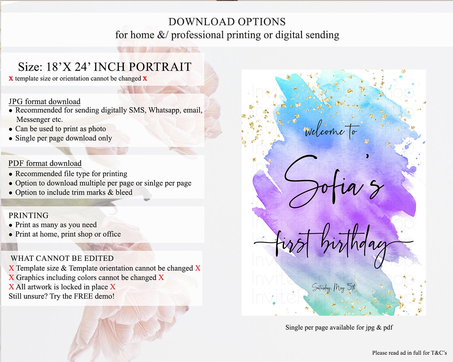 Pastel Welcome Sign Pastel Rainbow Welcome Sign Colorful Rainbow Confetti Watercolor Glitter Pastel First Birthday Welcome Sign D10491