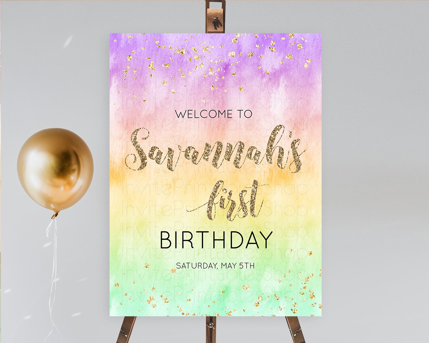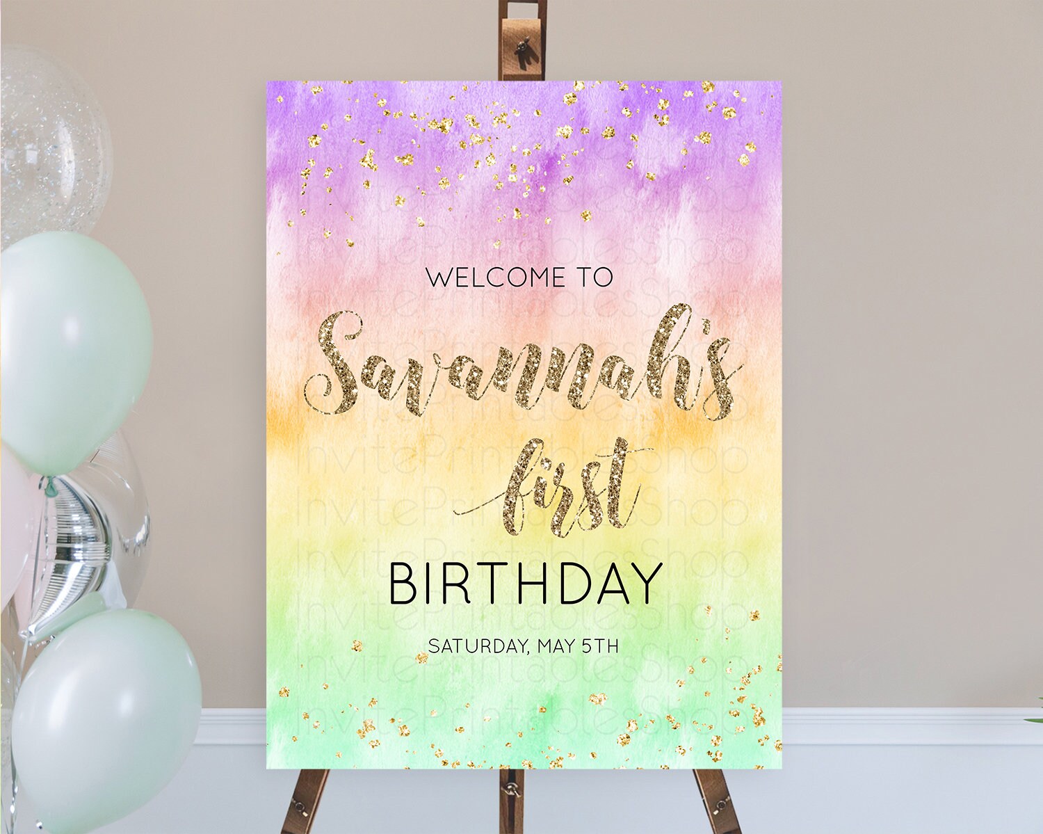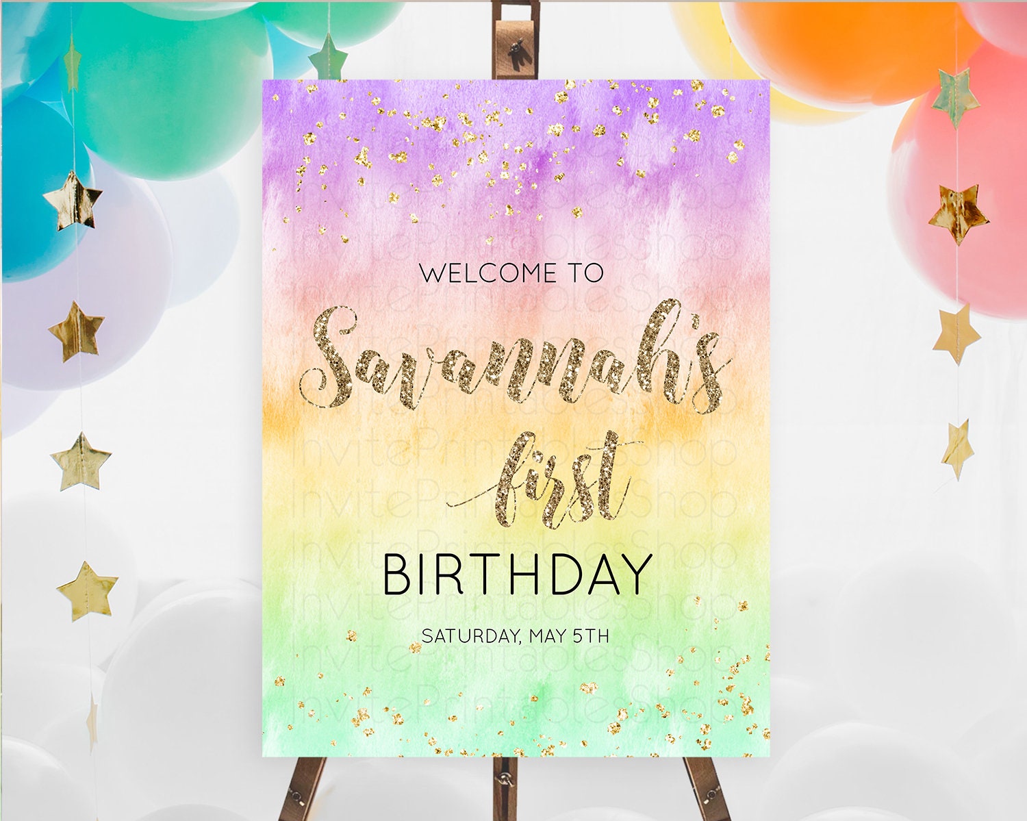 Pastel Welcome Sign Pastel Rainbow Welcome Sign Colorful Rainbow Confetti Watercolor Glitter Pastel First Birthday Welcome Sign D10512