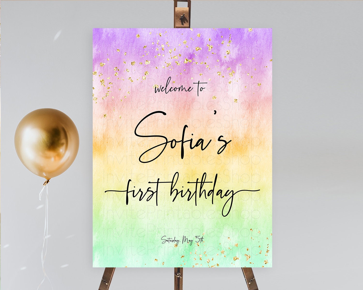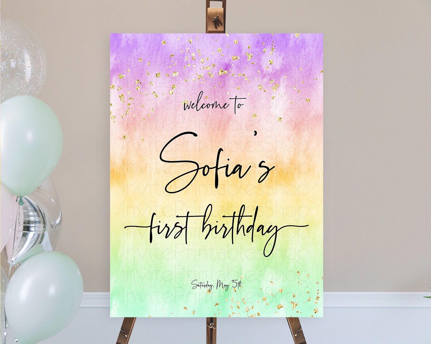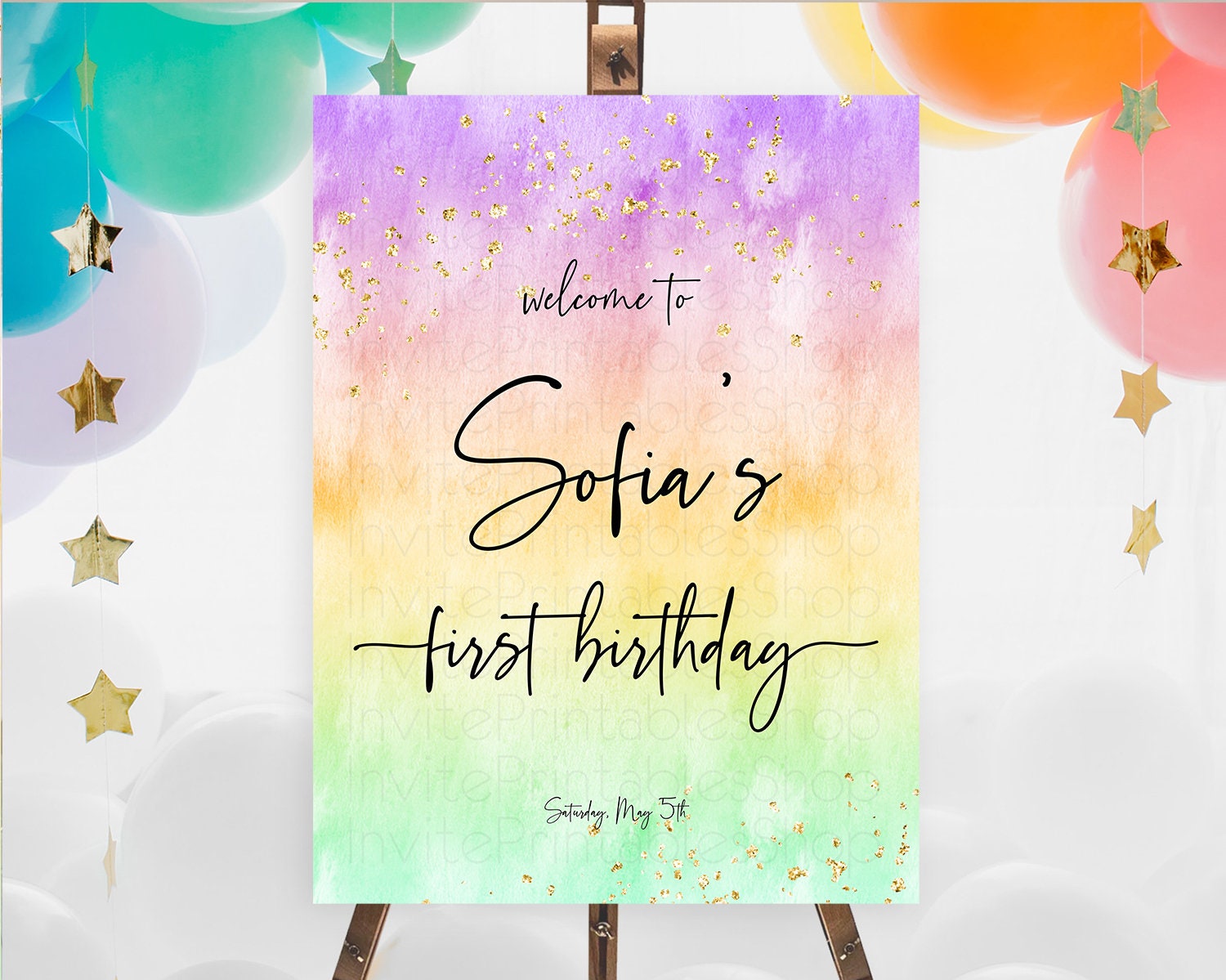 Pastel Welcome Sign Pastel Rainbow Welcome Sign Colorful Rainbow Confetti Watercolor Glitter Pastel First Birthday Welcome Sign D10514