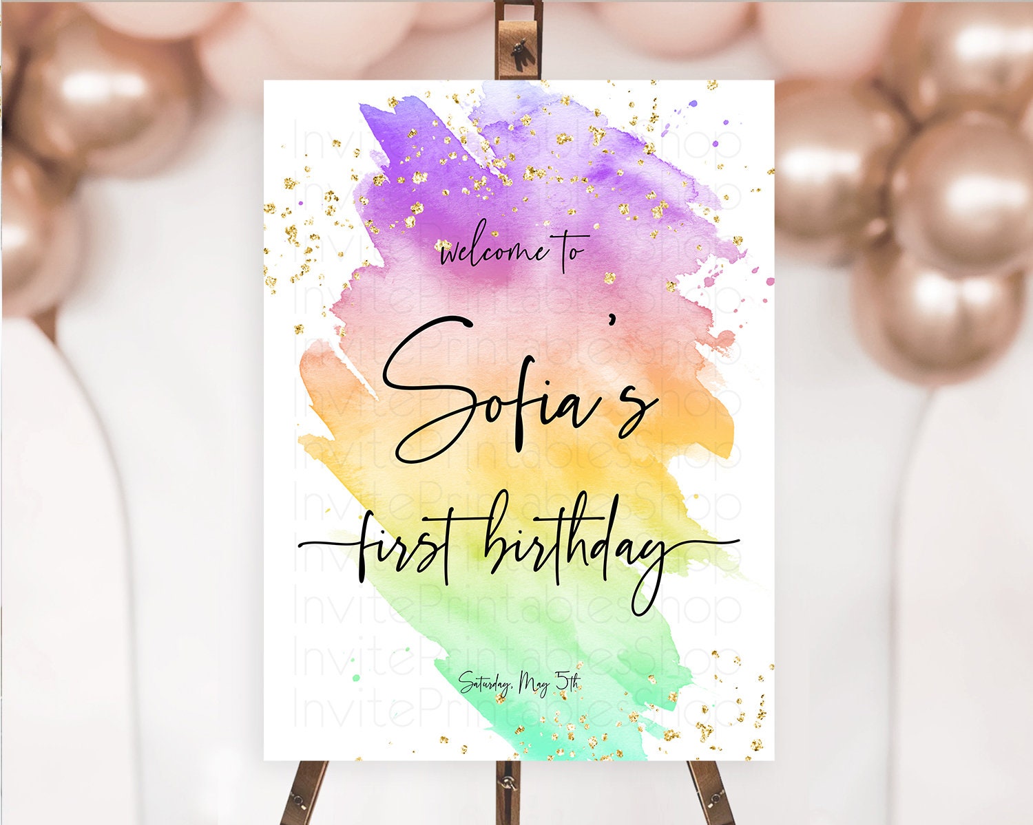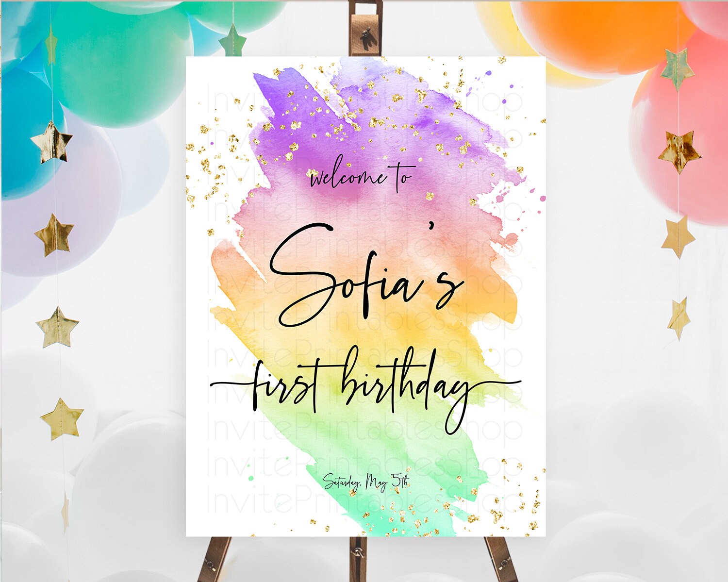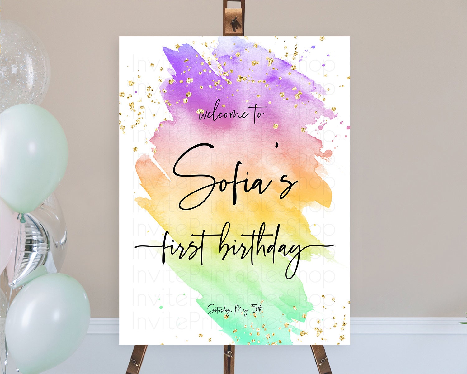 Pastel Welcome Sign Pastel Rainbow Welcome Sign Colorful Rainbow Confetti Watercolor Glitter Pastel First Birthday Welcome Sign D10518