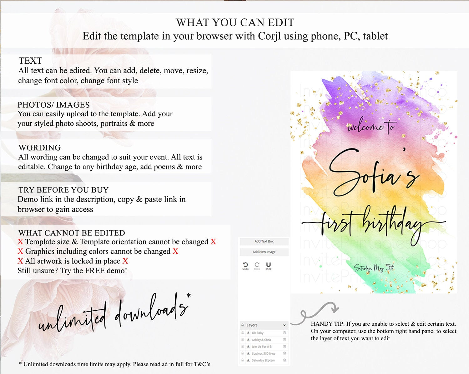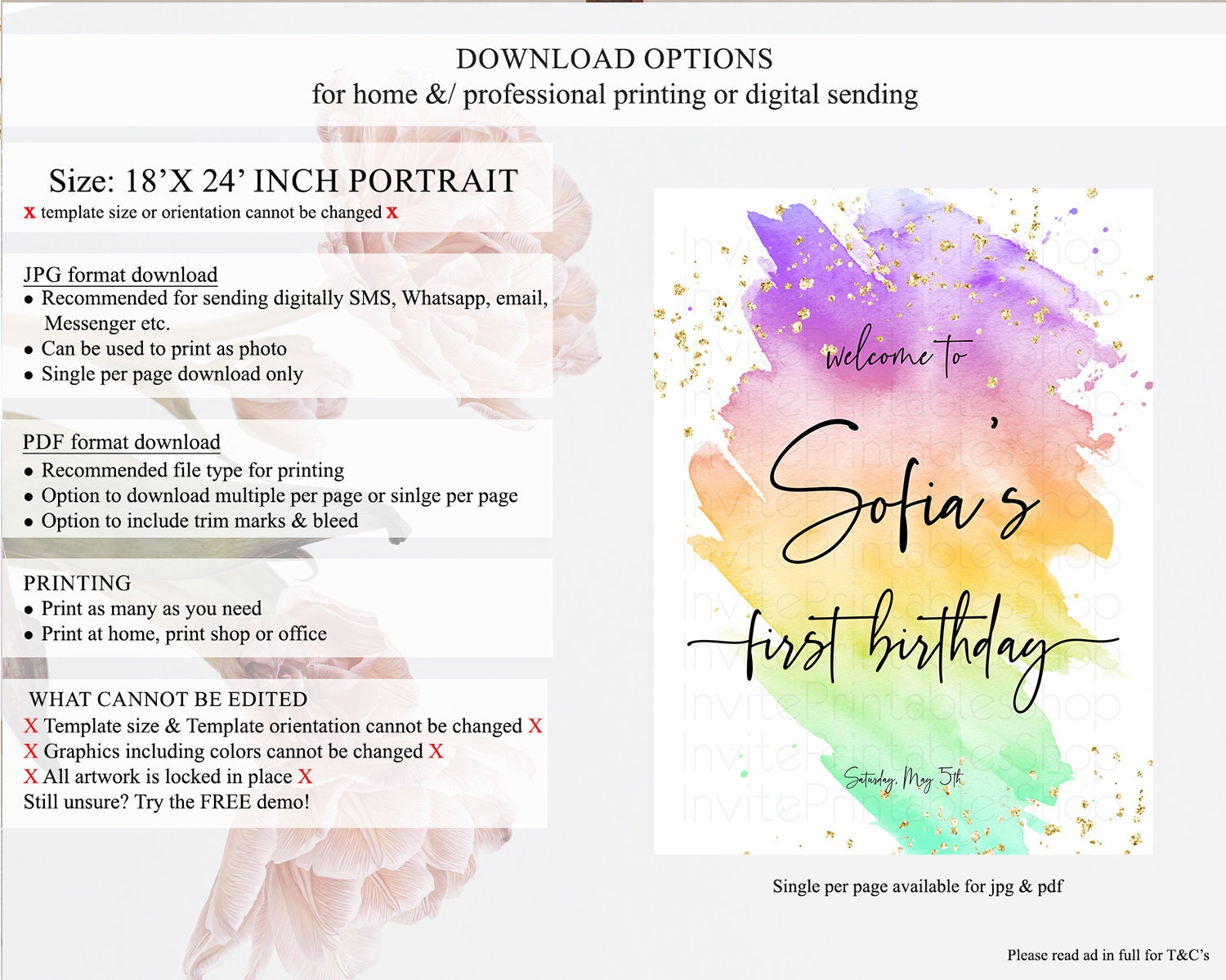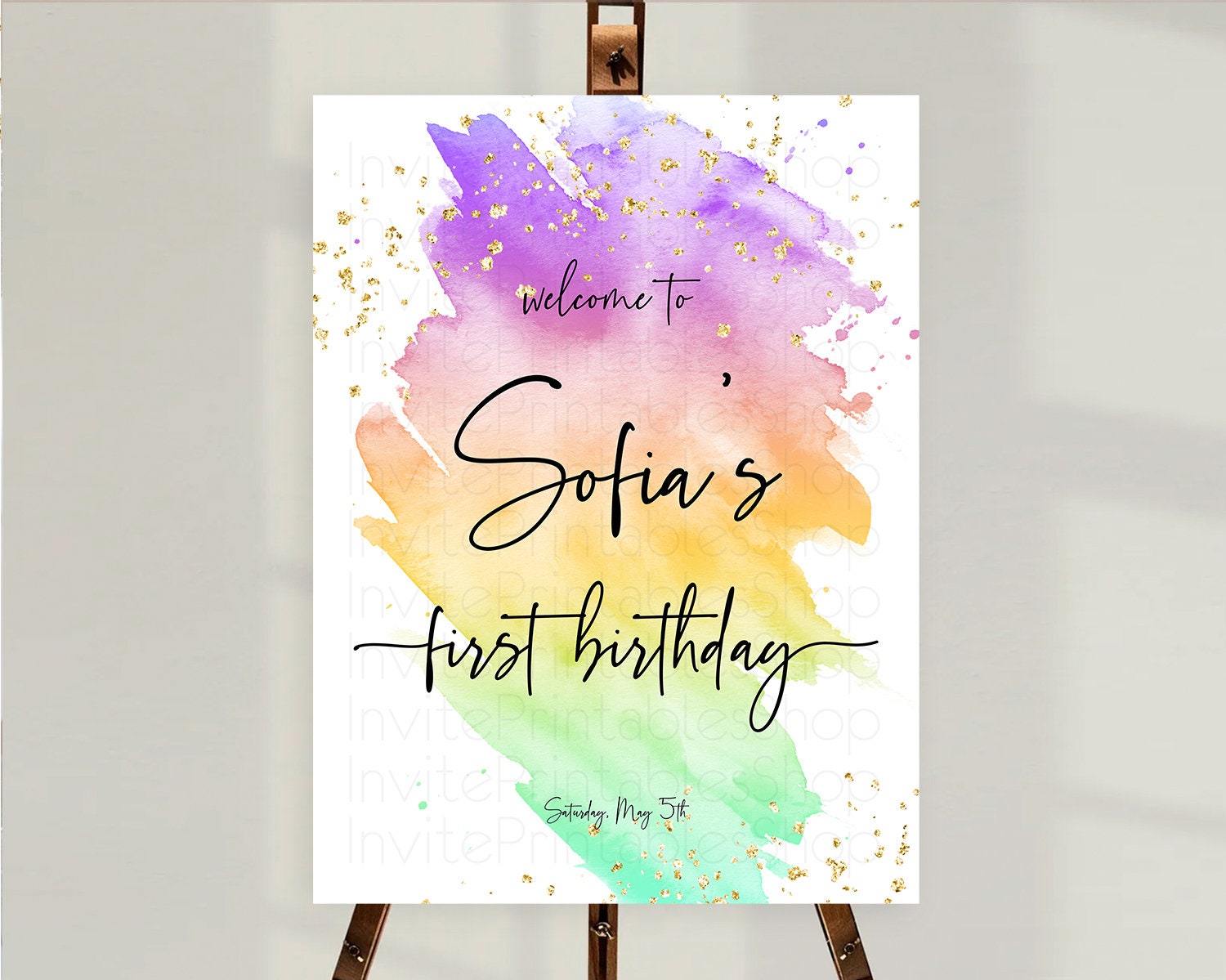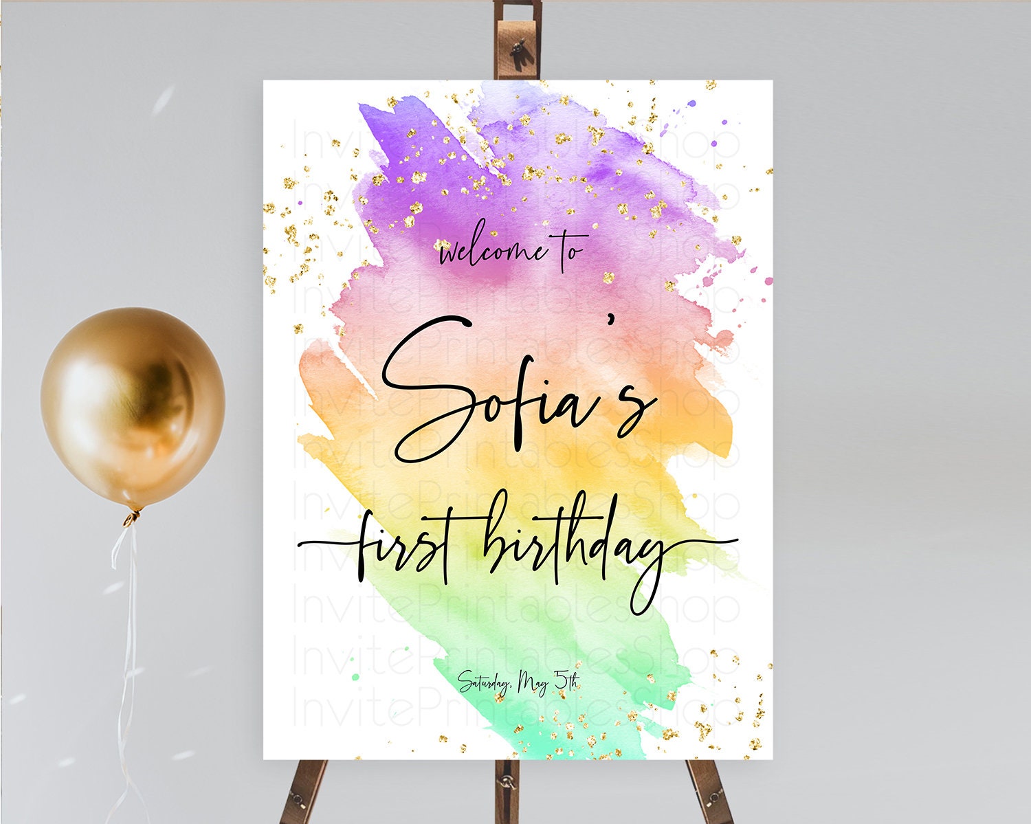 Pastel Welcome Sign Pastel Rainbow Welcome Sign Colorful Rainbow Confetti Watercolor Glitter Pastel First Birthday Welcome Sign D10518