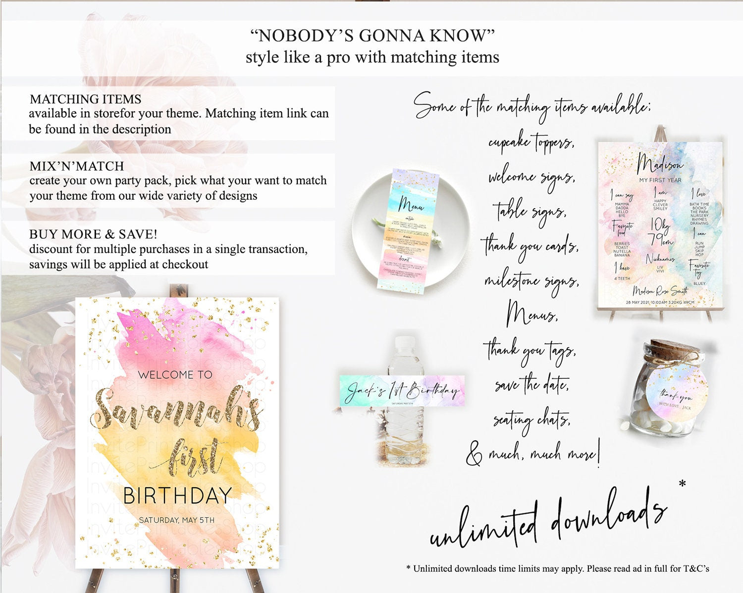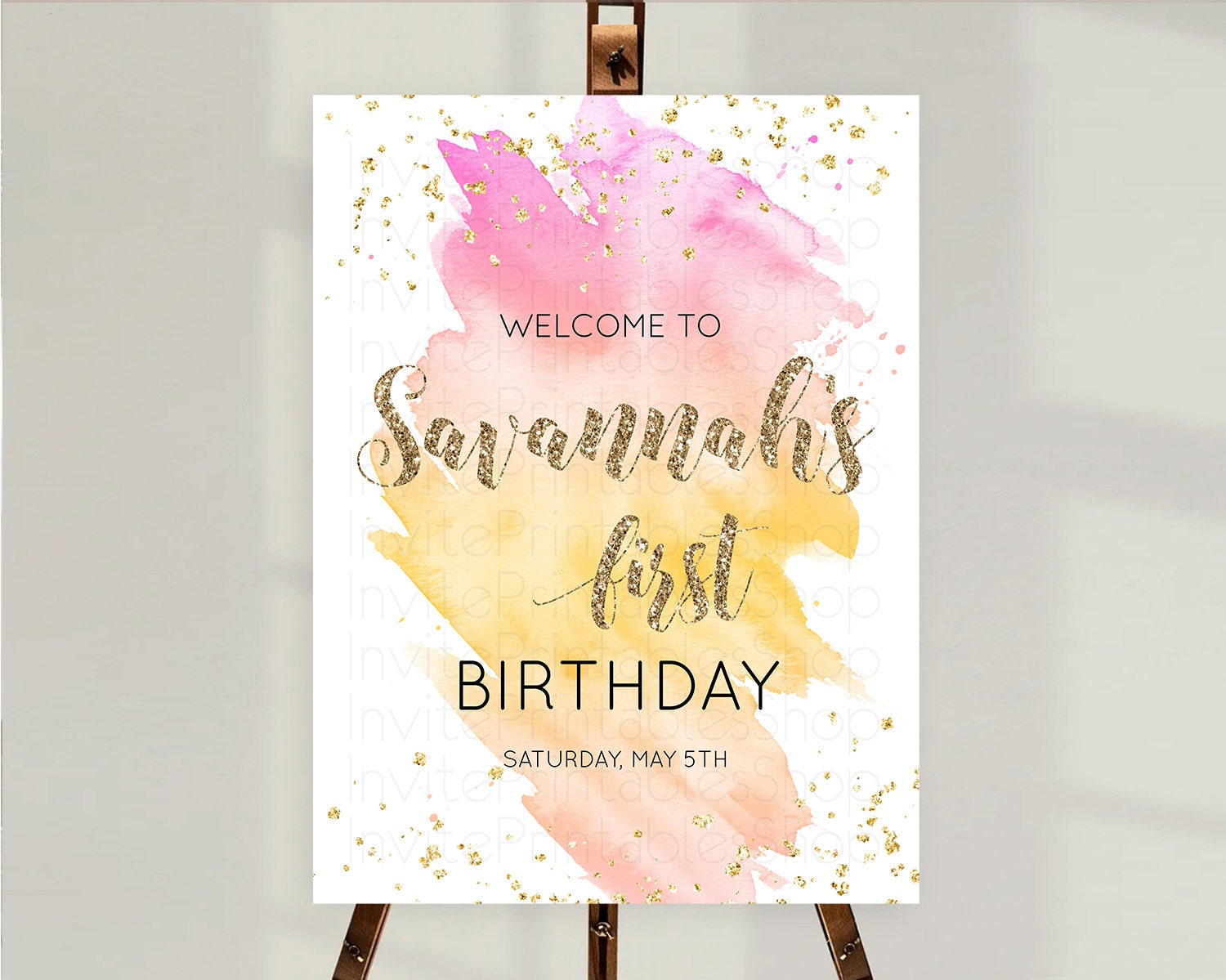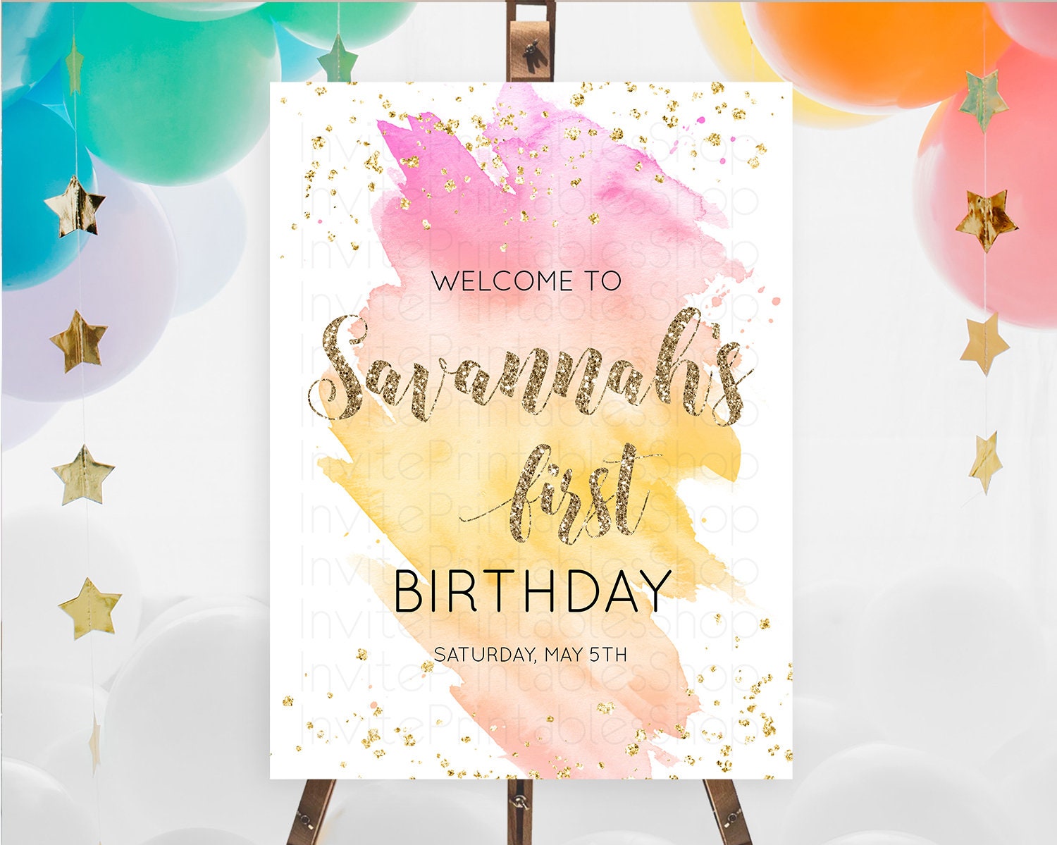Pastel Welcome Sign Pastel Rainbow Welcome Sign Colorful Rainbow Confetti Watercolor Glitter Pastel First Birthday Welcome Sign D10526
