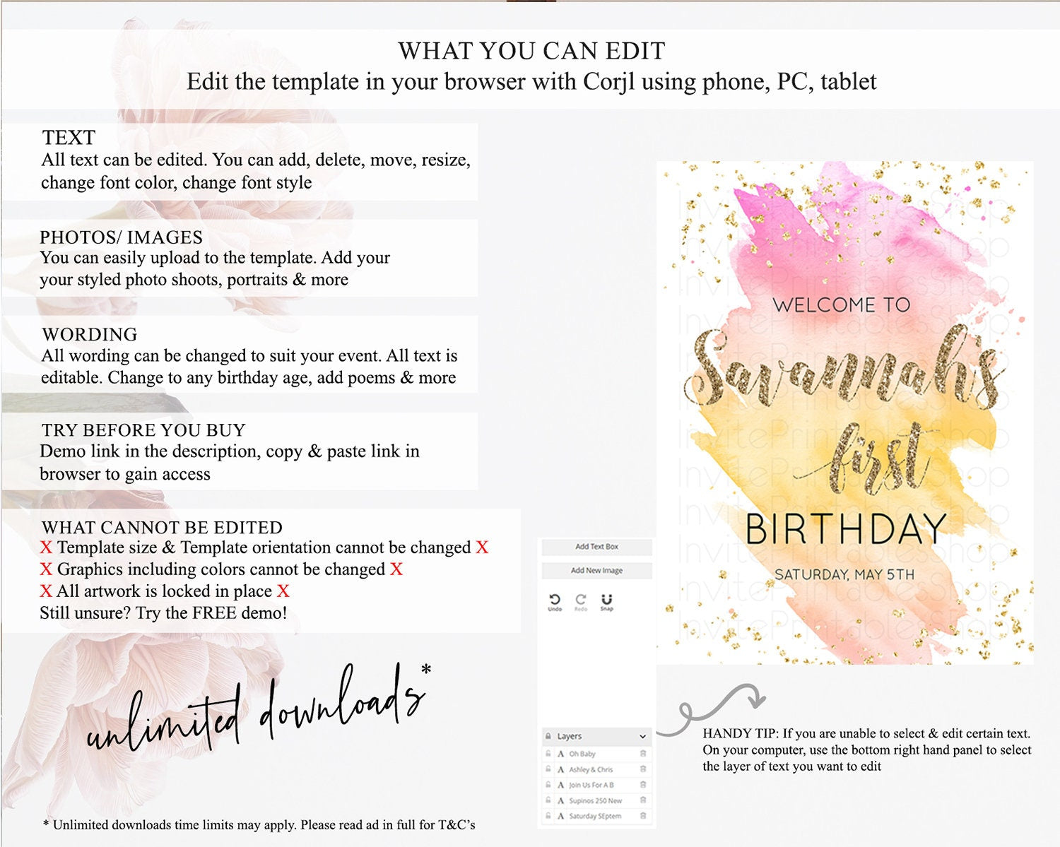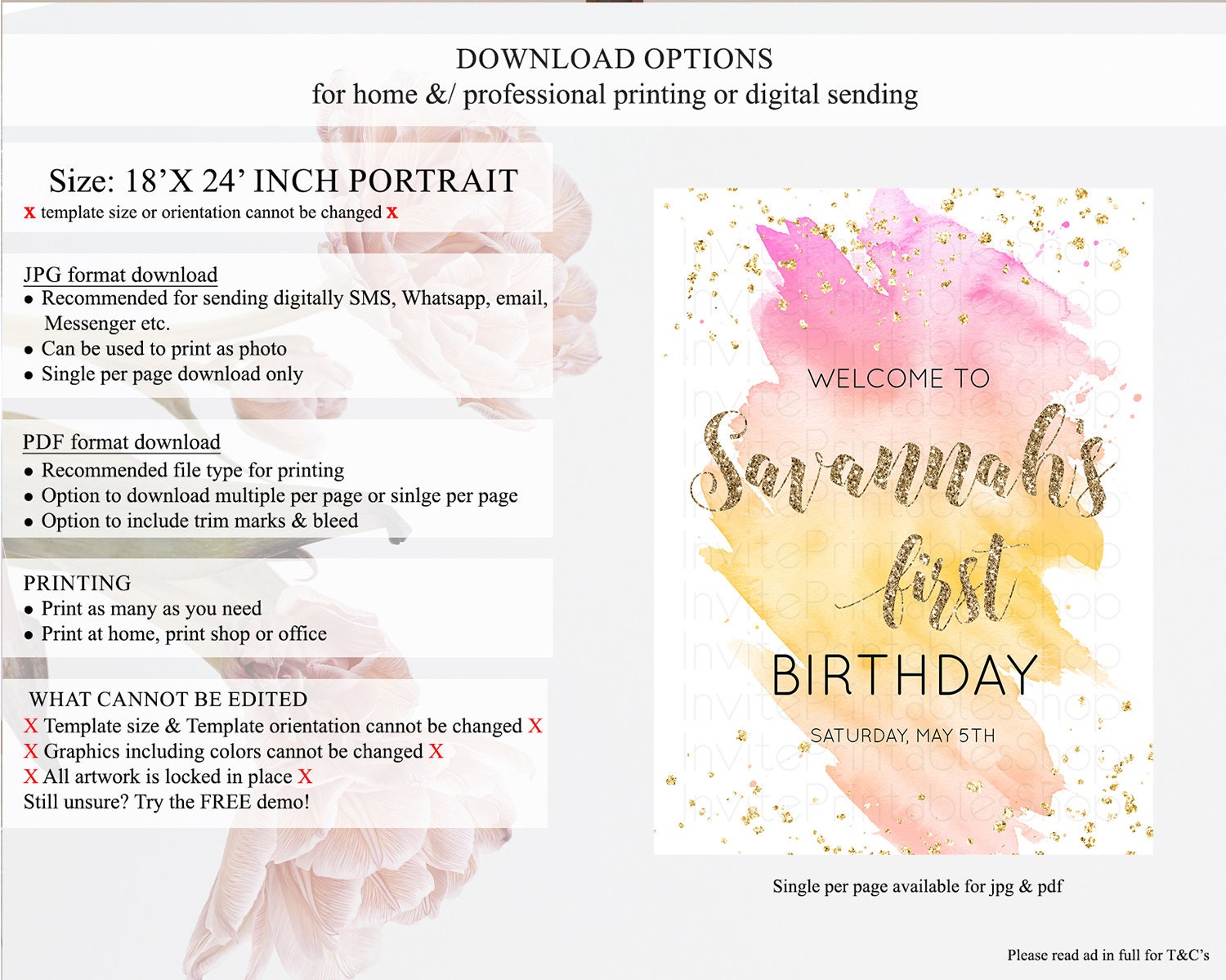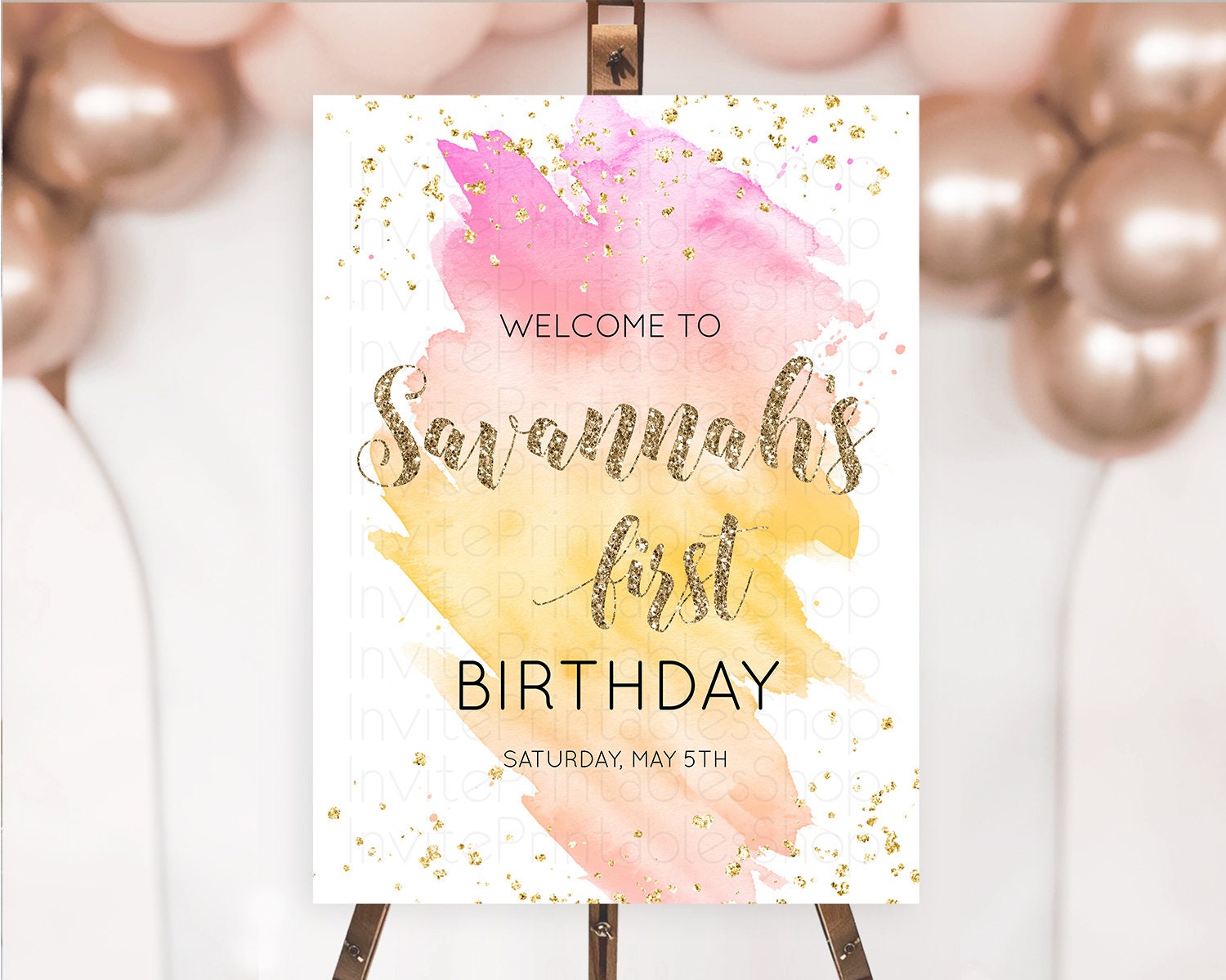 Pastel Welcome Sign Pastel Rainbow Welcome Sign Colorful Rainbow Confetti Watercolor Glitter Pastel First Birthday Welcome Sign D10526