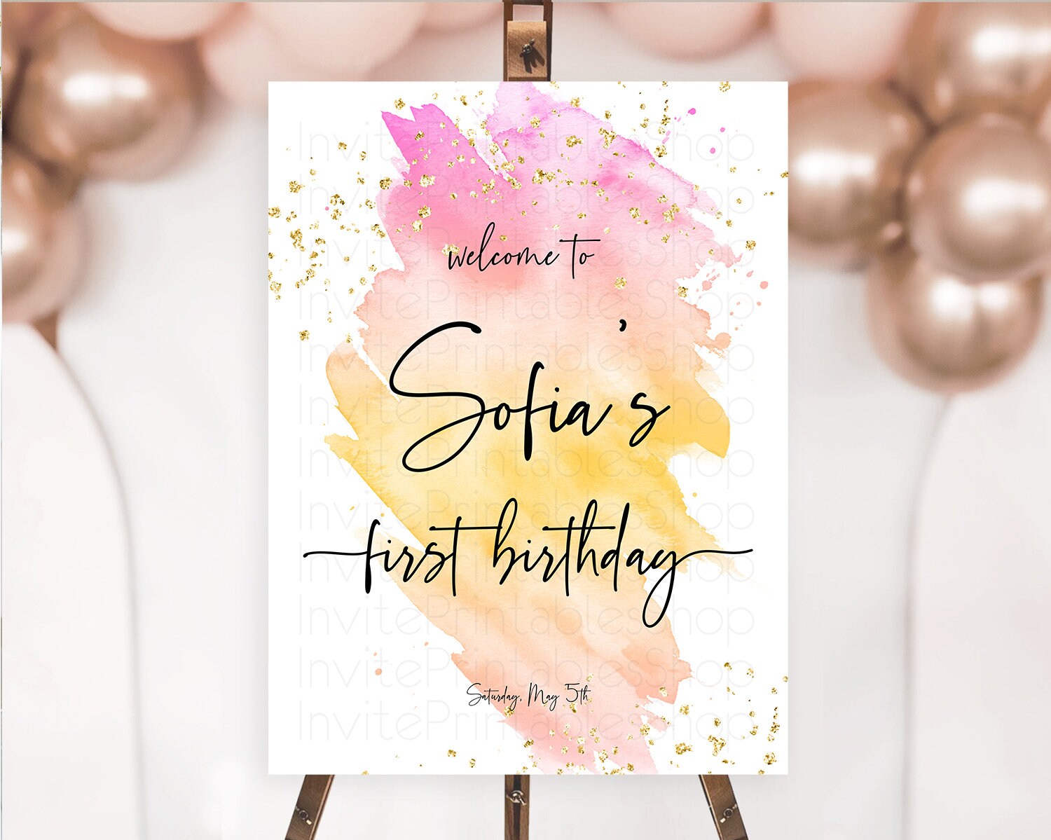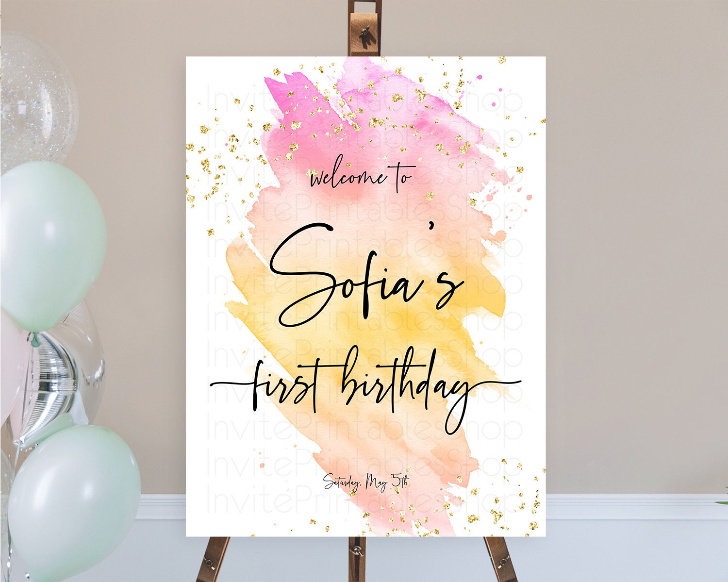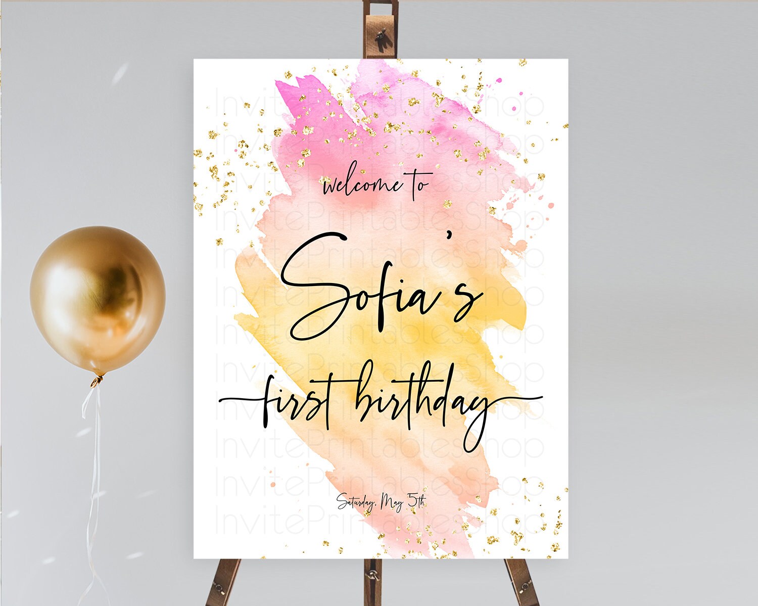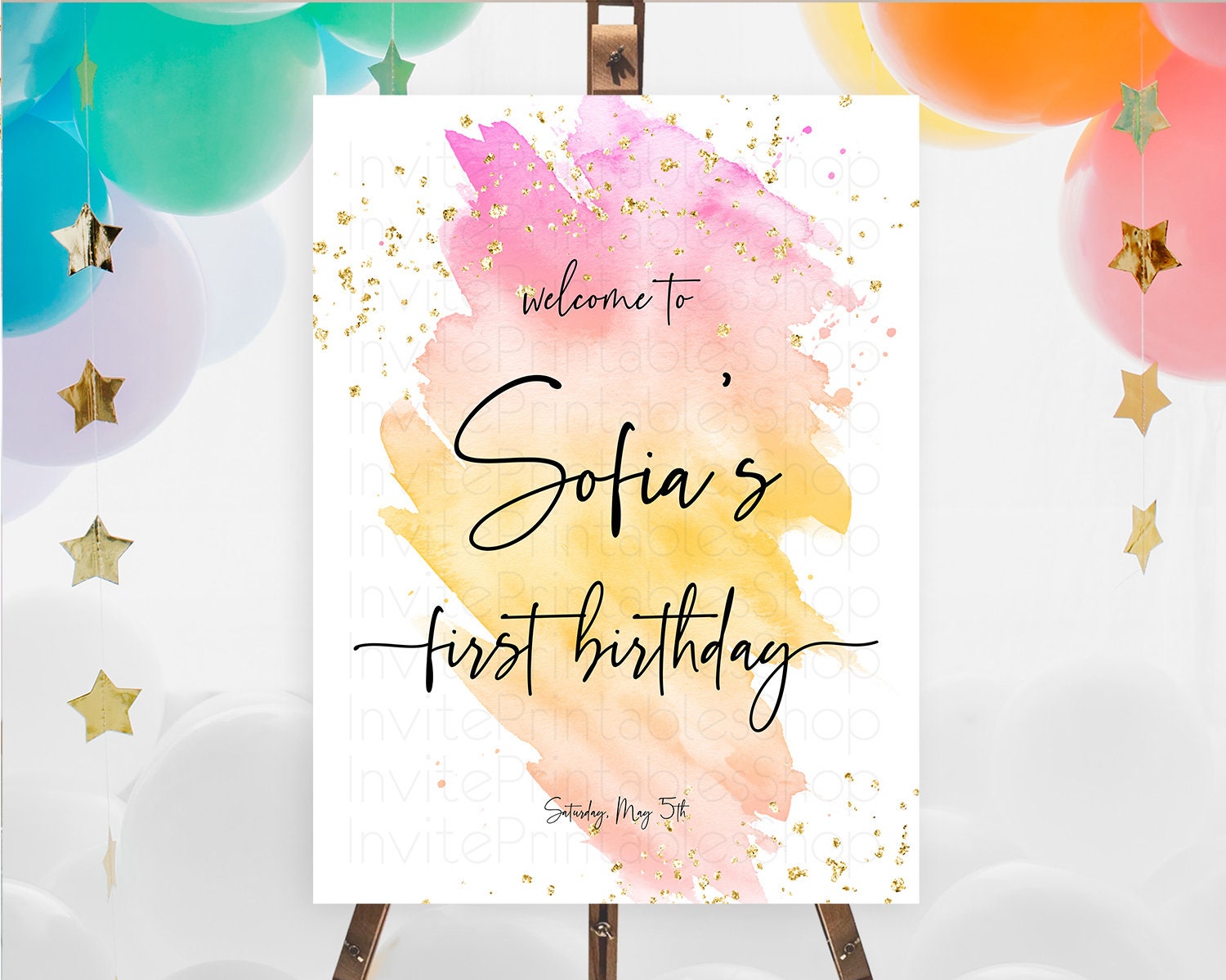 Pastel Welcome Sign Pastel Rainbow Welcome Sign Colorful Rainbow Confetti Watercolor Glitter Pastel First Birthday Welcome Sign D10527