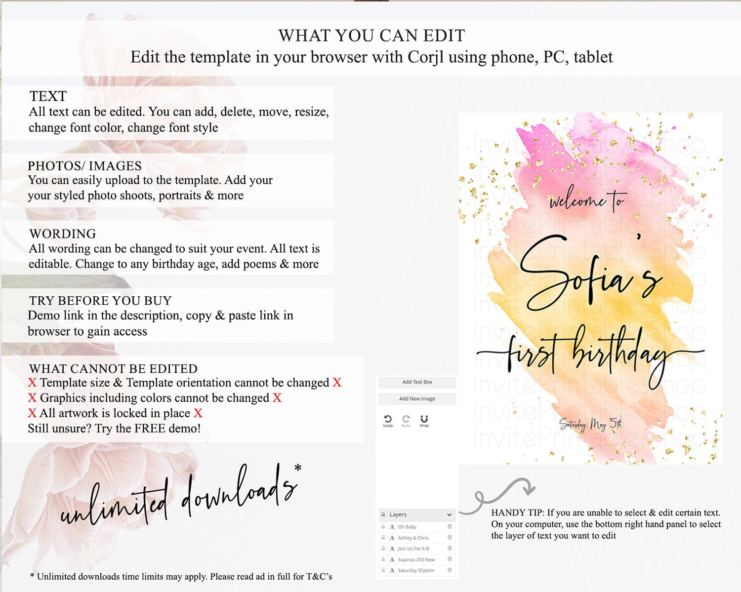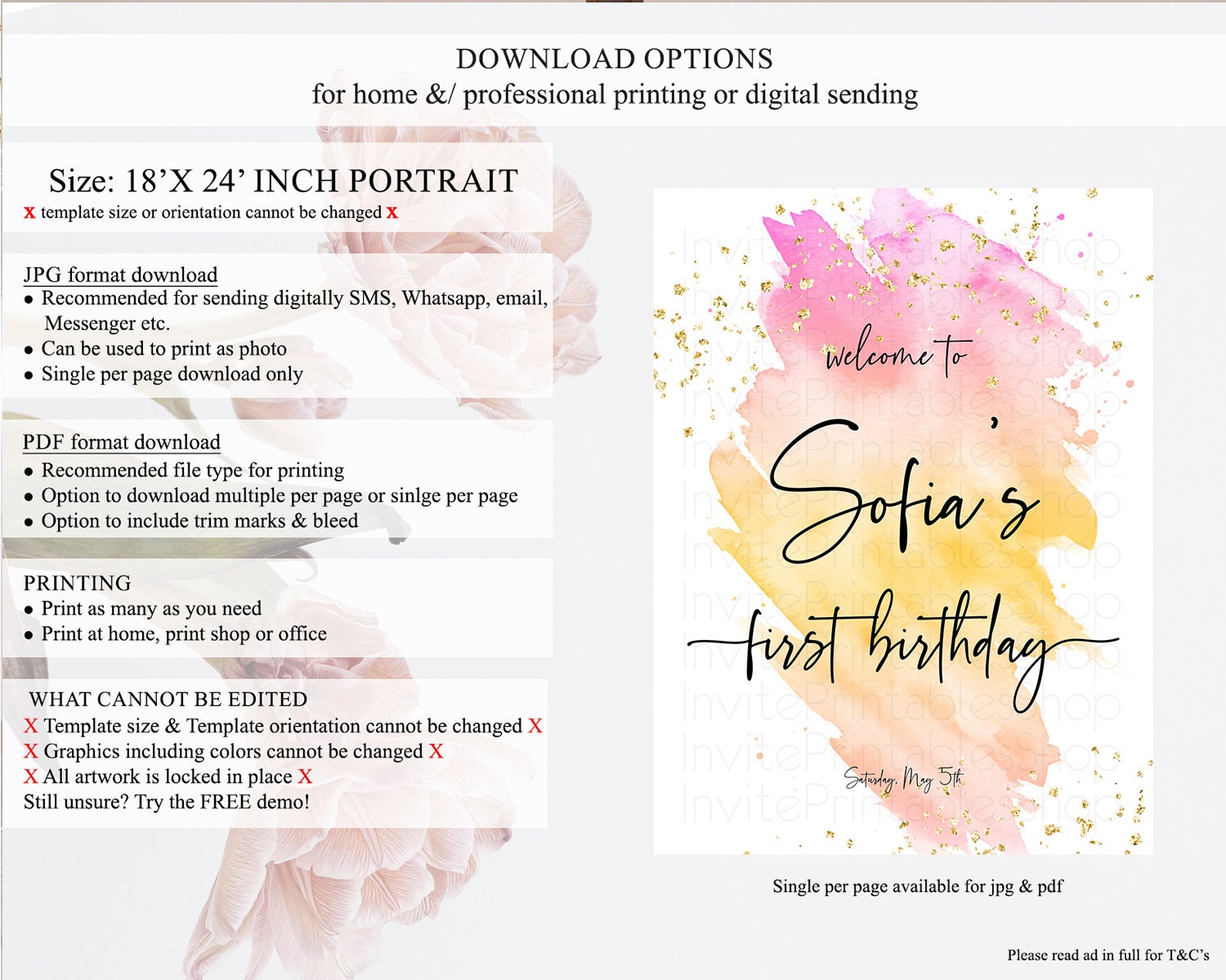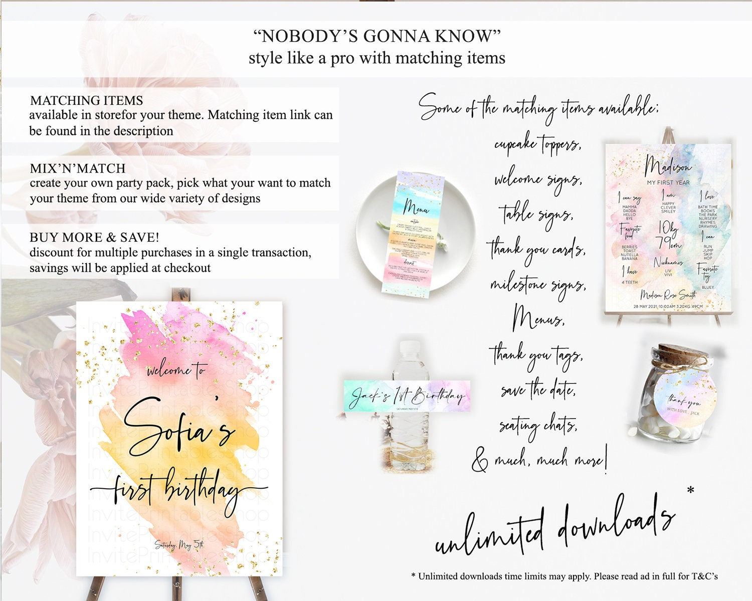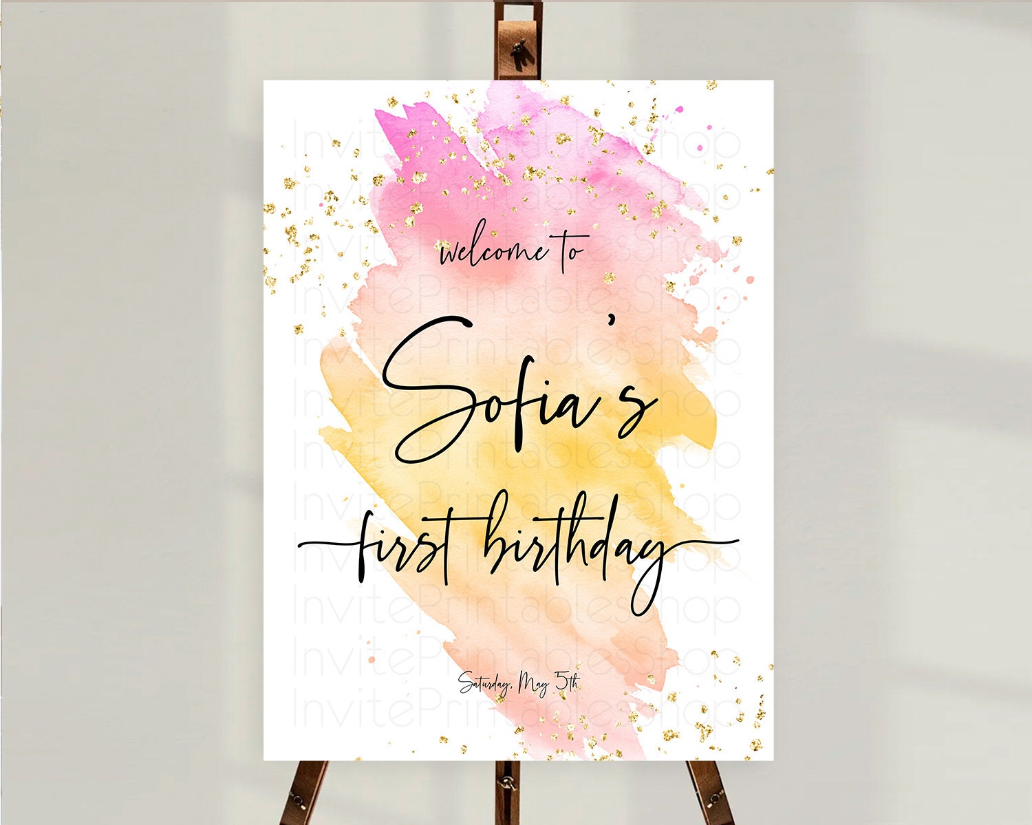 Pastel Welcome Sign Pastel Rainbow Welcome Sign Colorful Rainbow Confetti Watercolor Glitter Pastel First Birthday Welcome Sign D10527