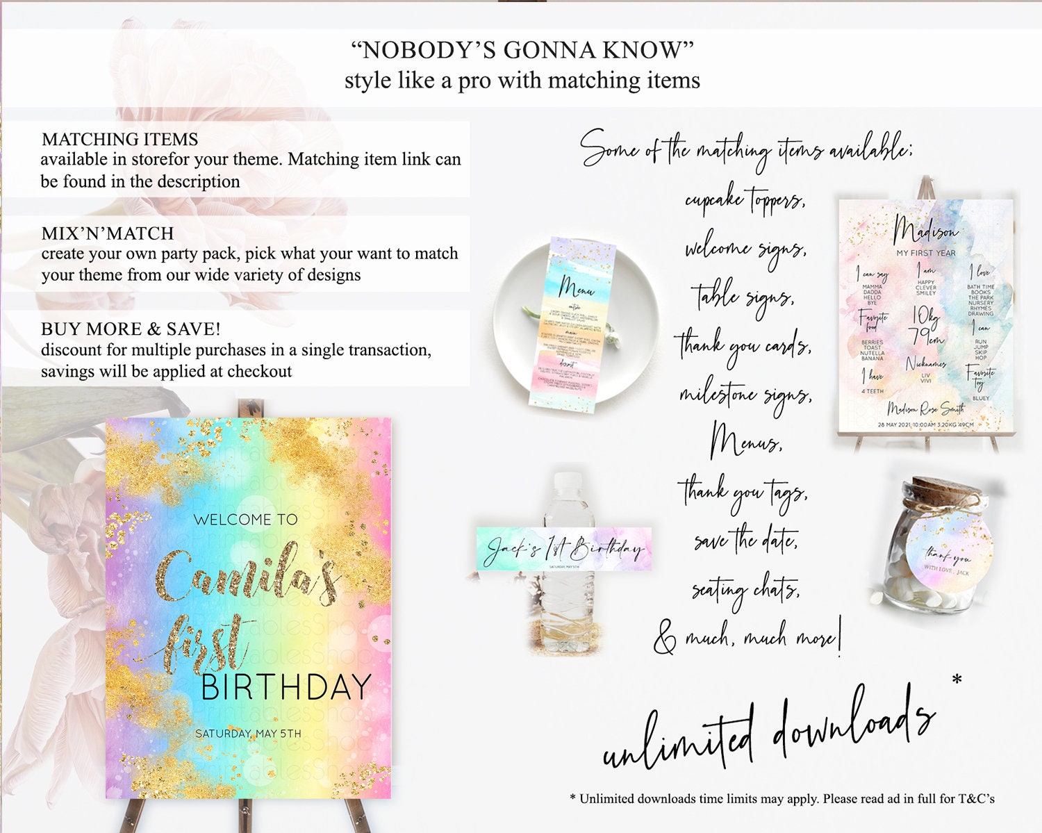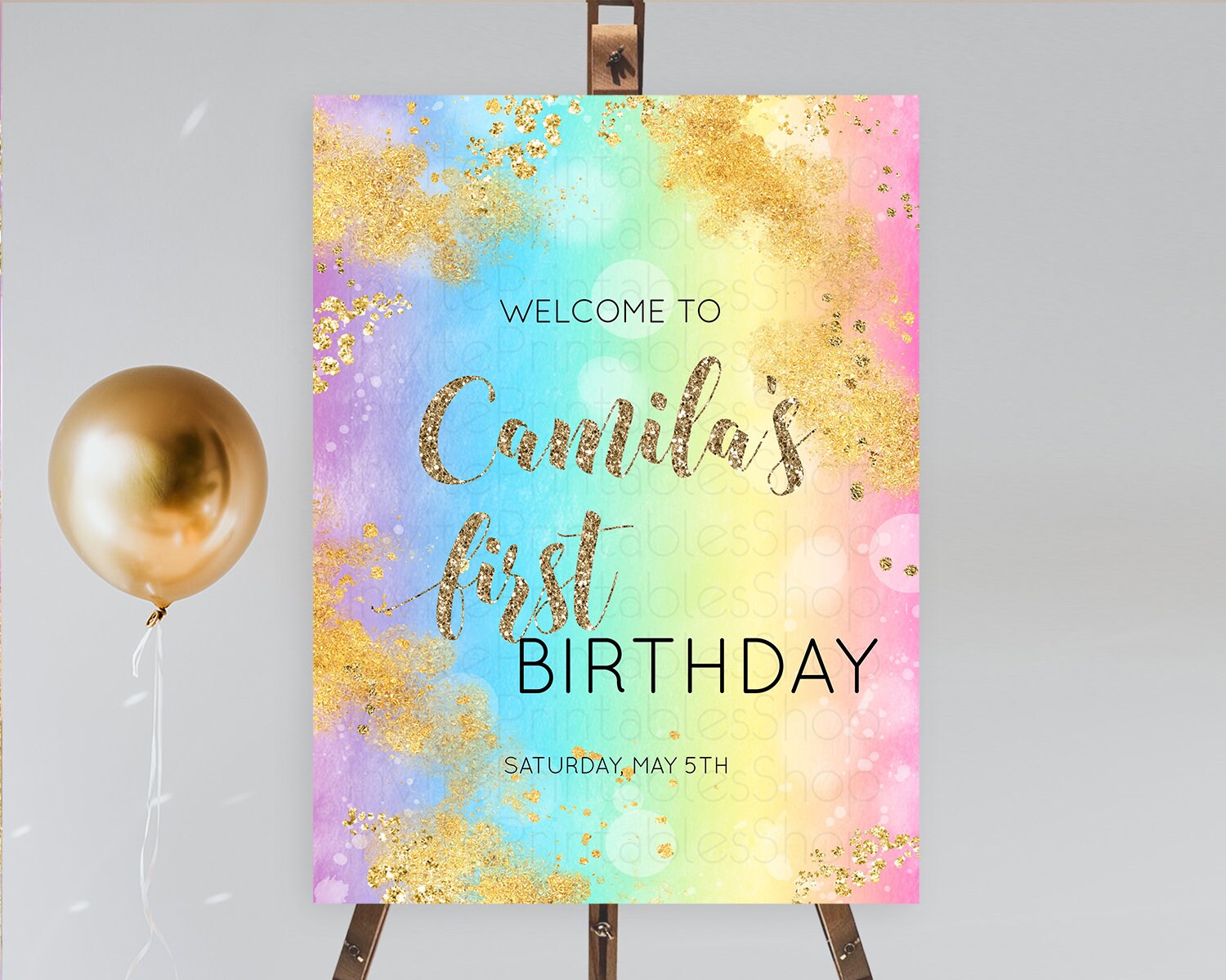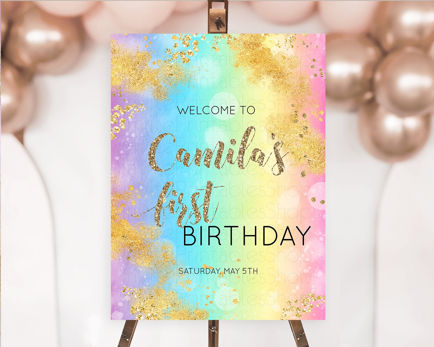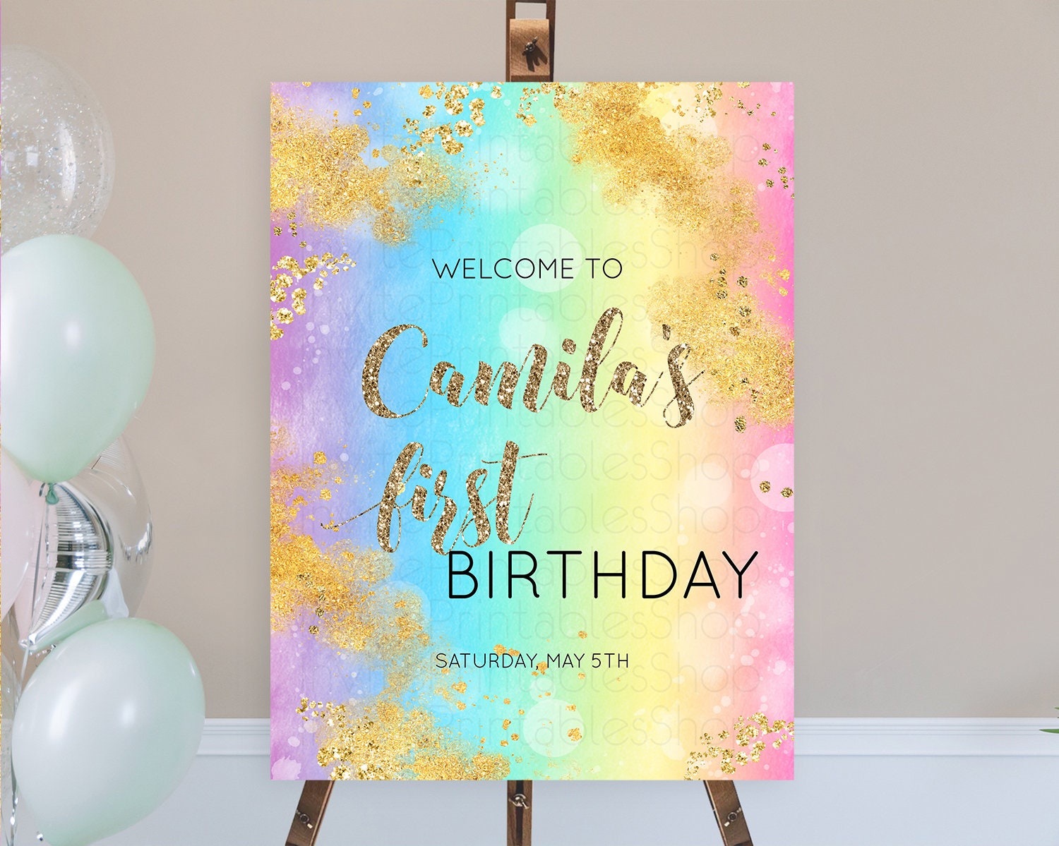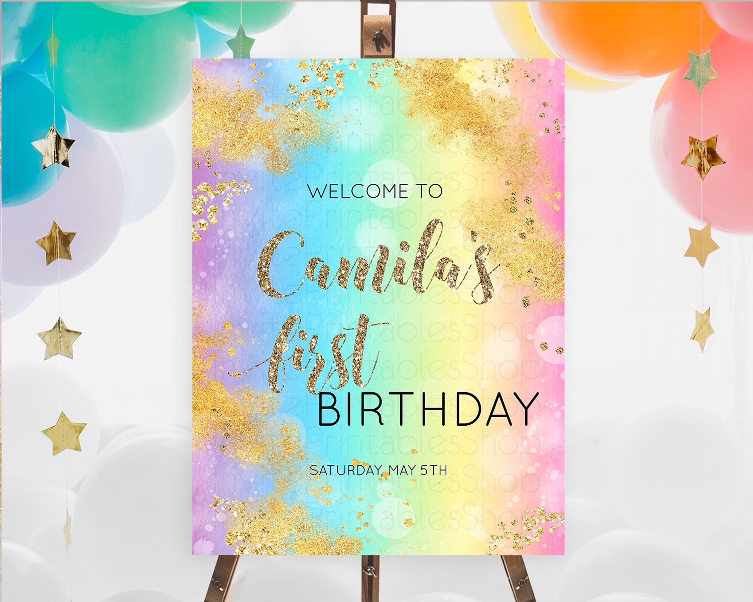 Pastel Welcome Sign Pastel Rainbow Welcome Sign Colorful Rainbow Confetti Watercolor Glitter Pastel First Birthday Welcome Sign D10561