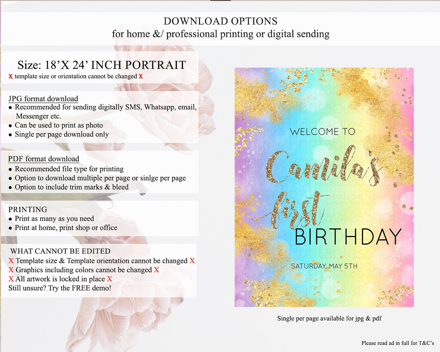• Template size & orientation cannot be changed. Please use the demo link to confirm this product suits your needs.