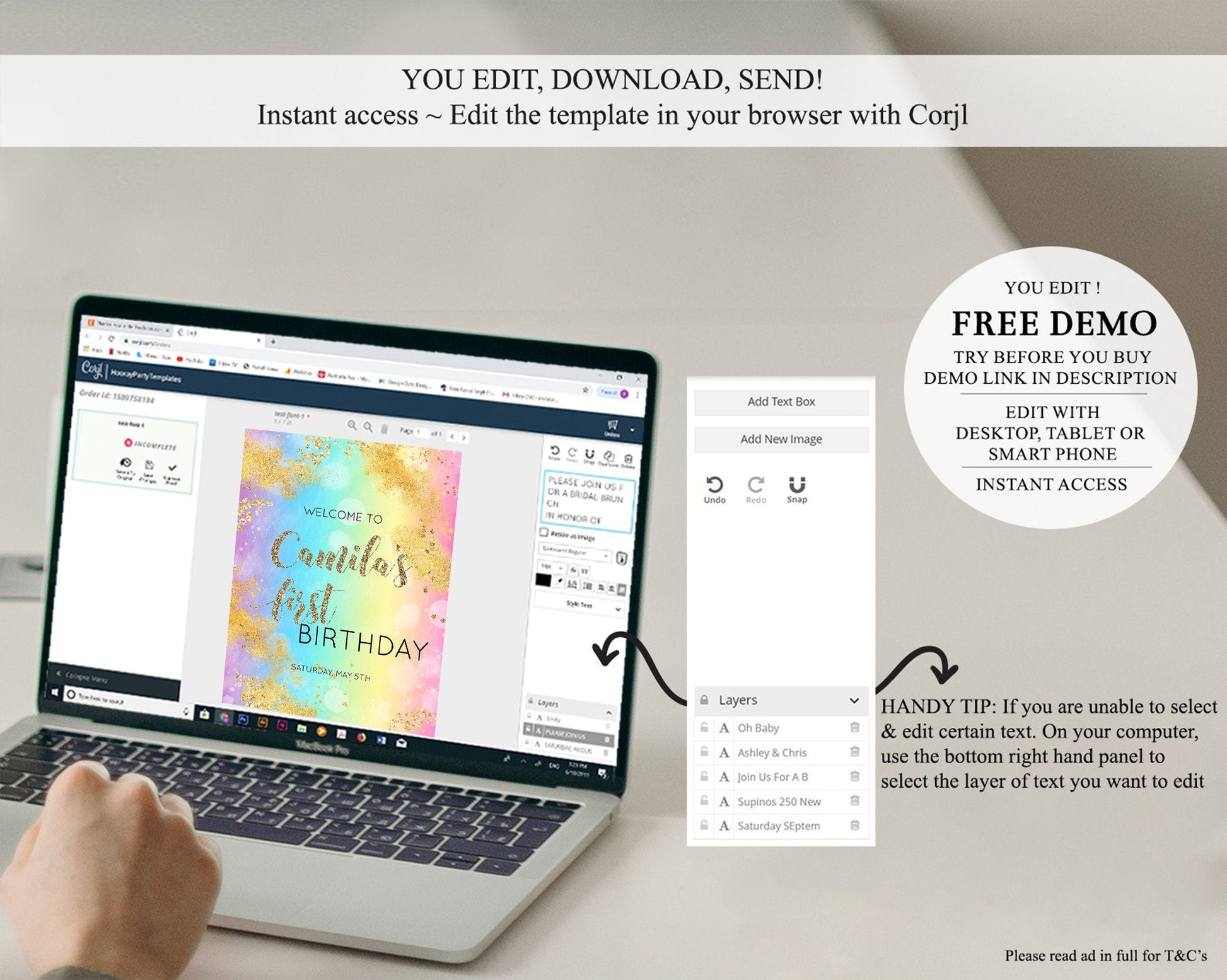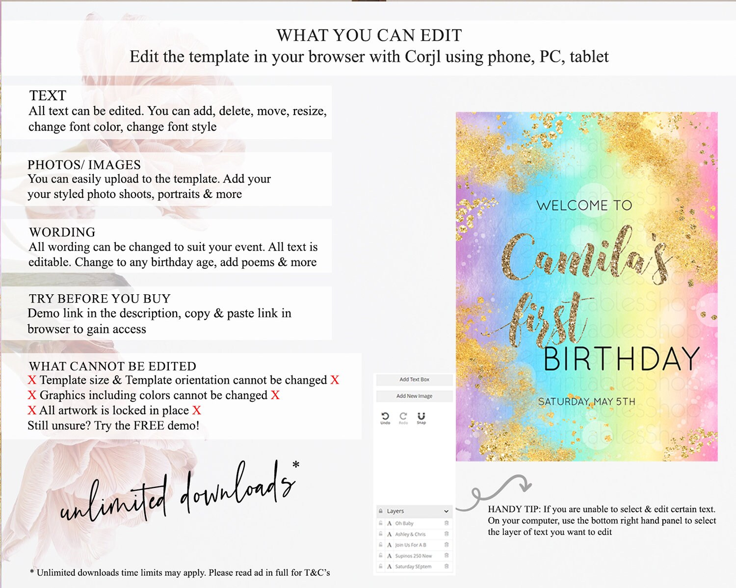 • After purchase, Corjl emails your editing link. Allow up to 15 minutes for delivery.