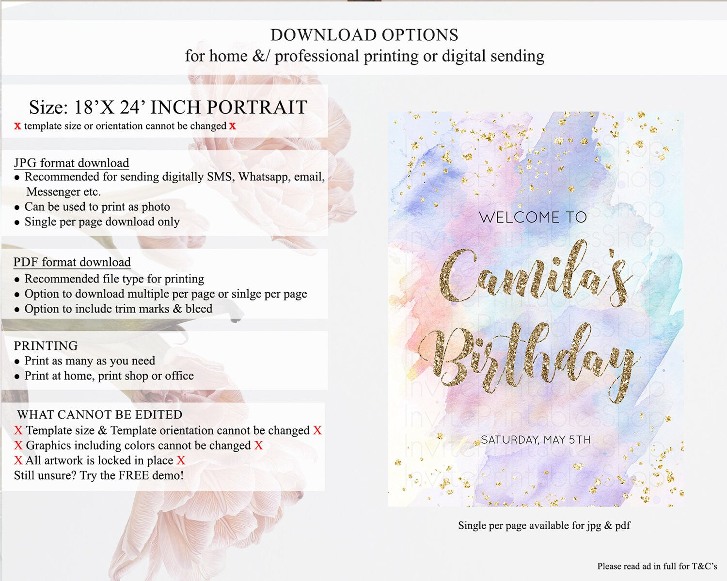 • Template size & orientation cannot be changed. Please use the demo link to confirm this product suits your needs.