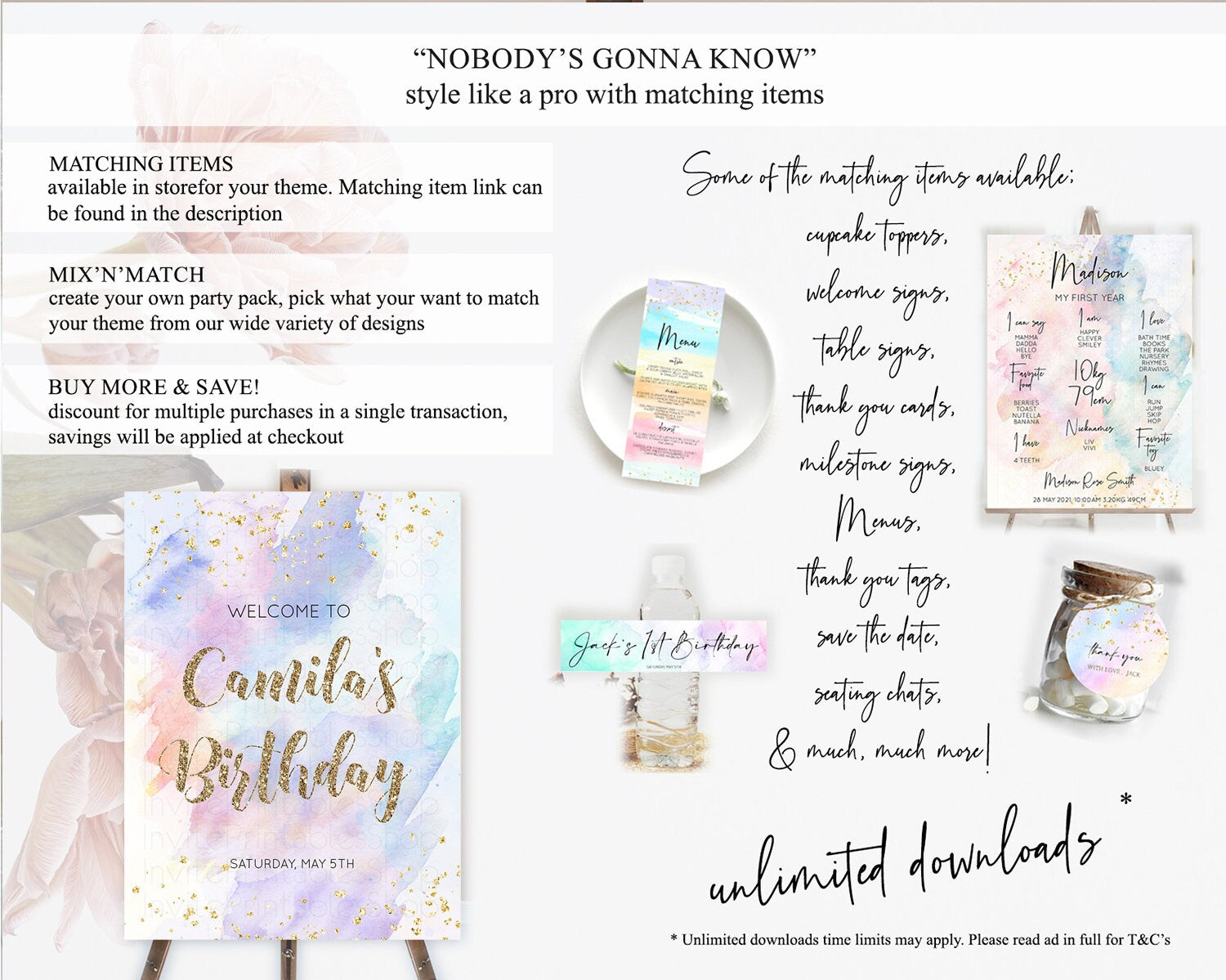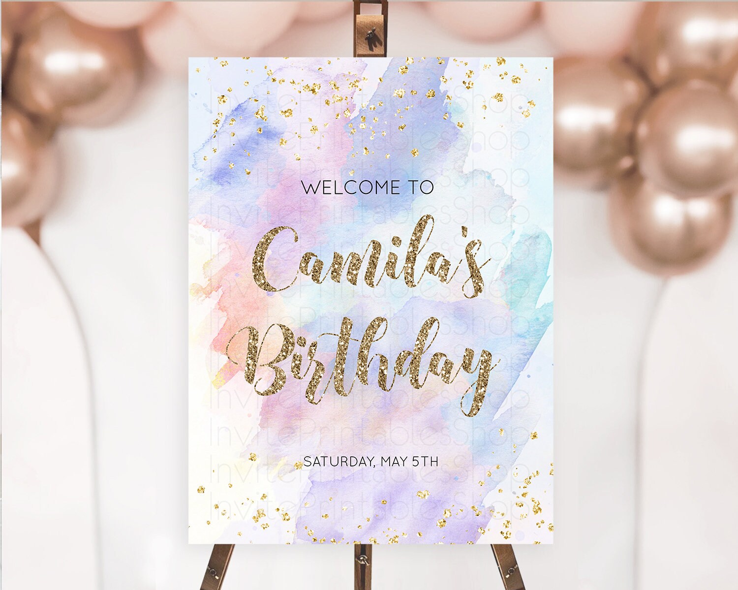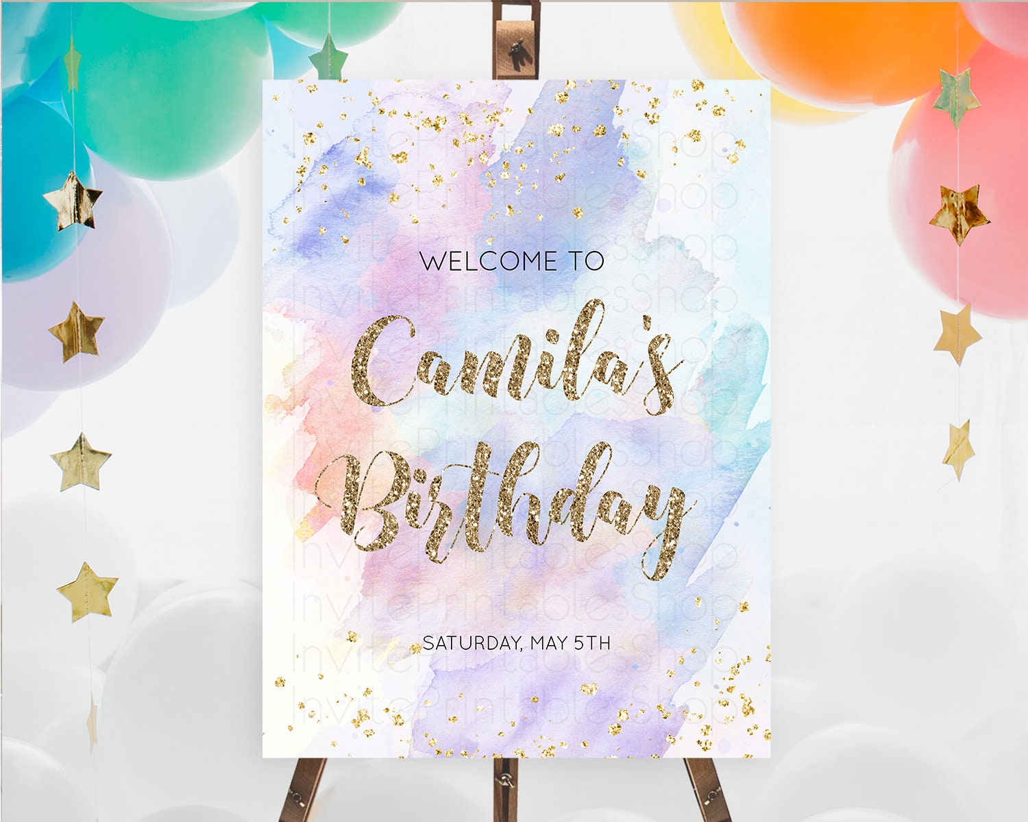 Pastel Welcome Sign Pastel Rainbow Welcome Sign Colorful Rainbow Confetti Watercolor Glitter Pastel First Birthday Welcome Sign D10583
