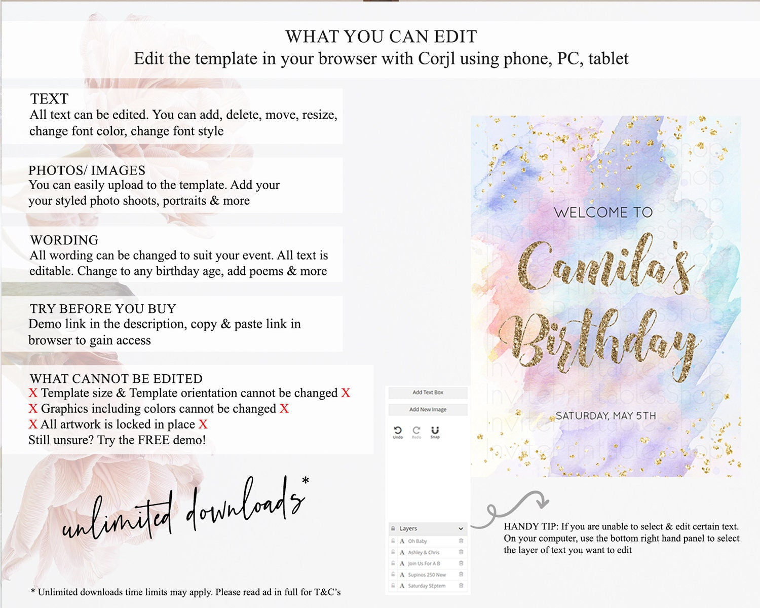 • After purchase, Corjl emails your editing link. Allow up to 15 minutes for delivery.