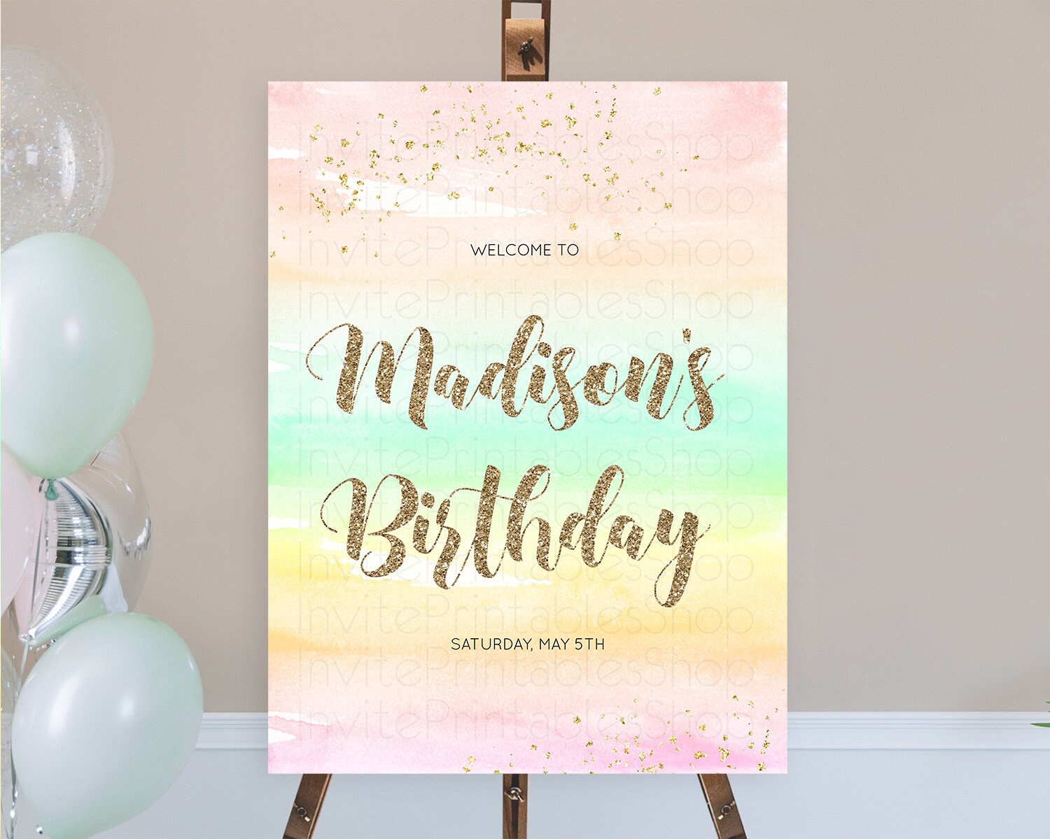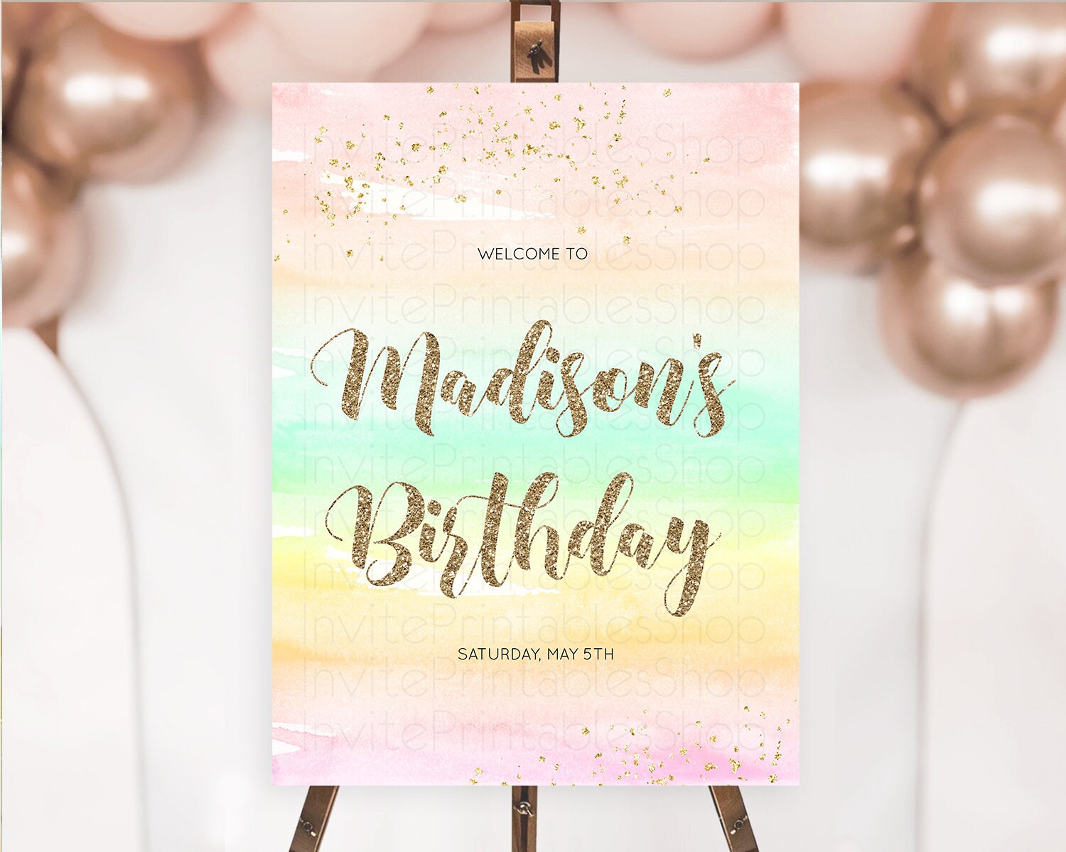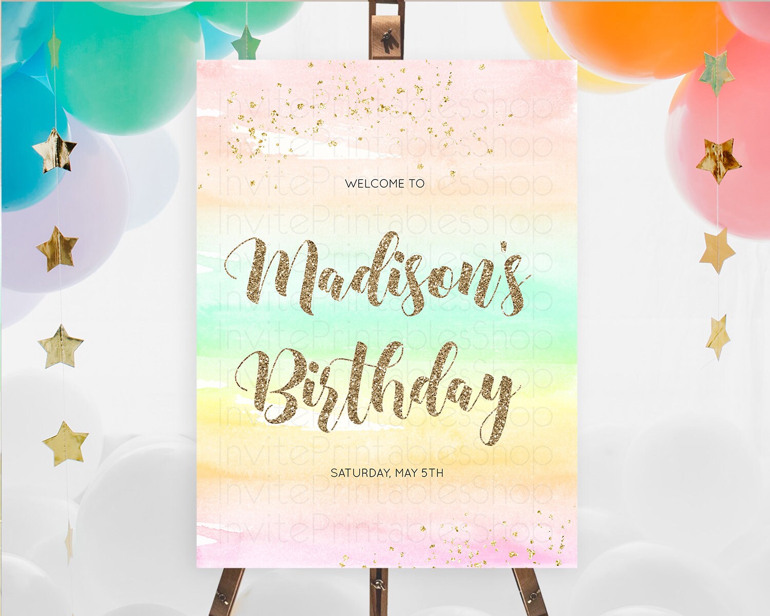 Pastel Welcome Sign Pastel Rainbow Welcome Sign Colorful Rainbow Confetti Watercolor Glitter Pastel First Birthday Welcome Sign D10592