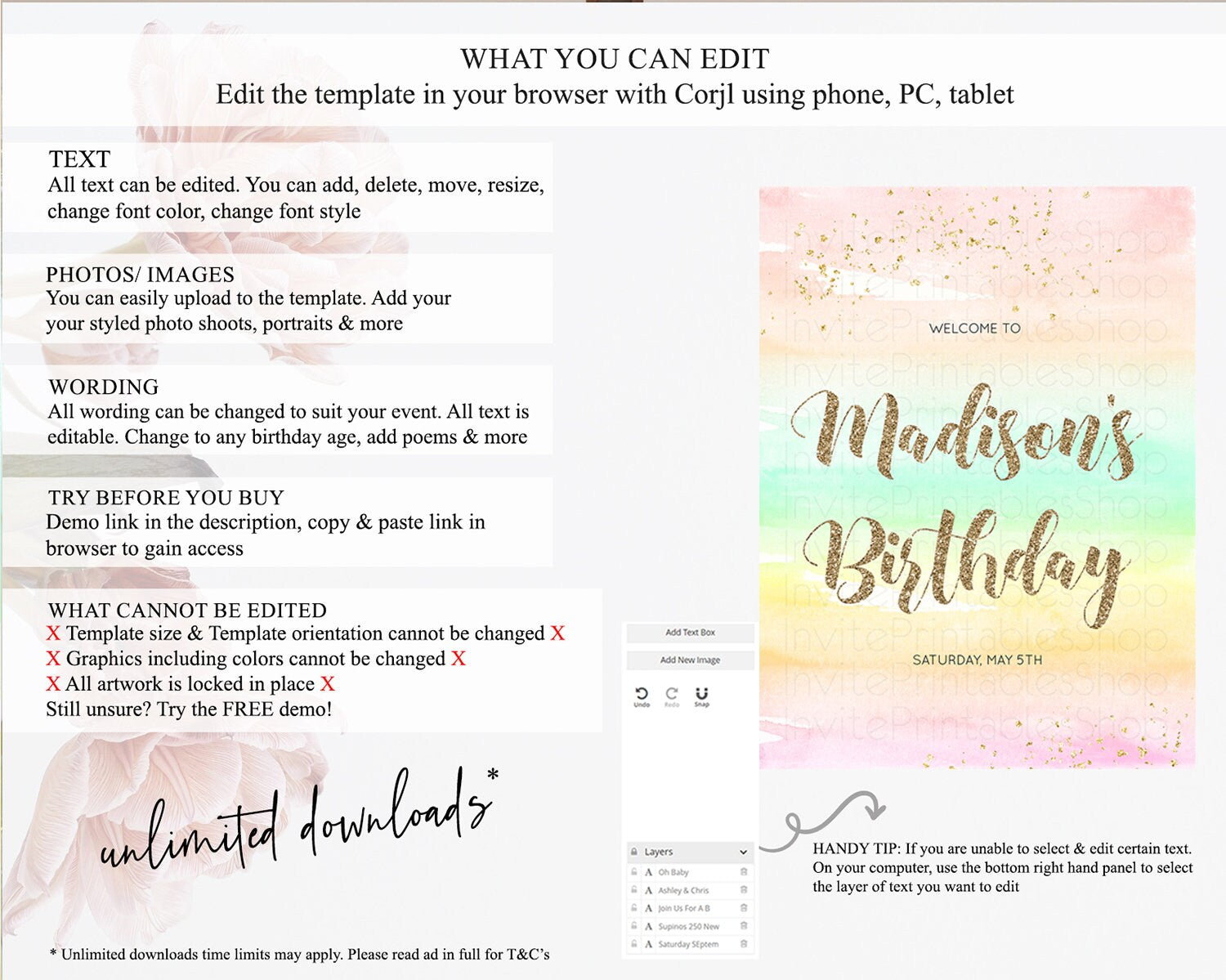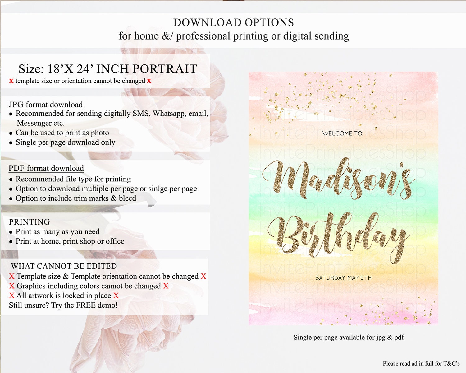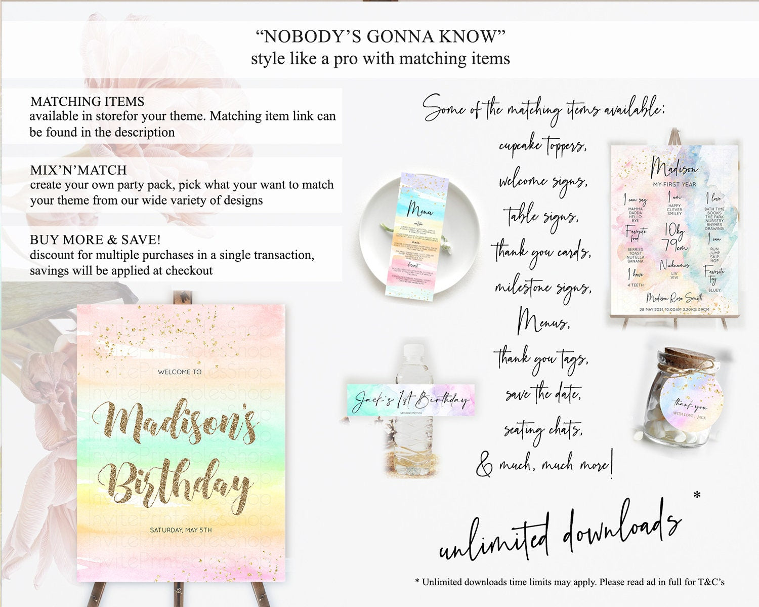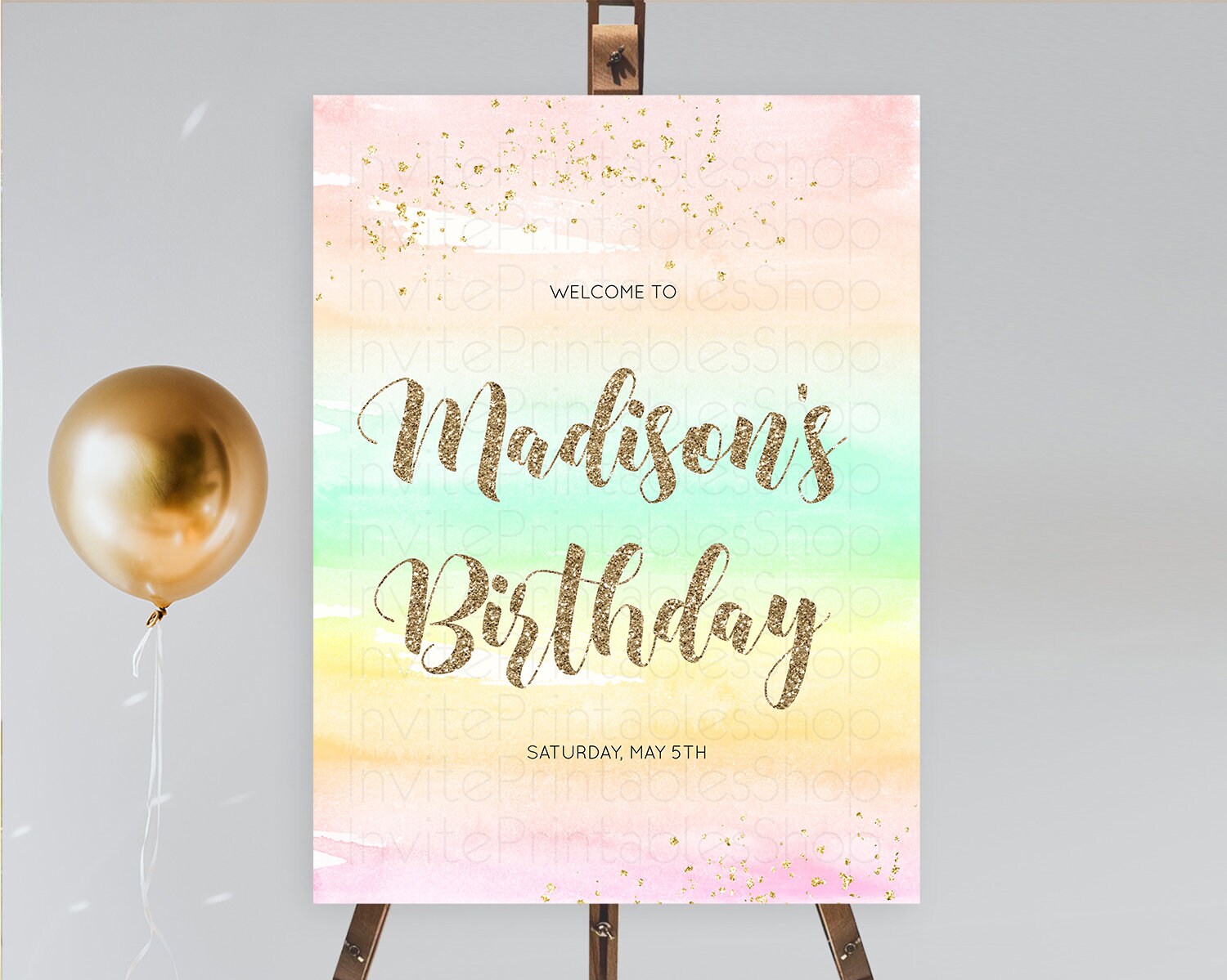 Pastel Welcome Sign Pastel Rainbow Welcome Sign Colorful Rainbow Confetti Watercolor Glitter Pastel First Birthday Welcome Sign D10592