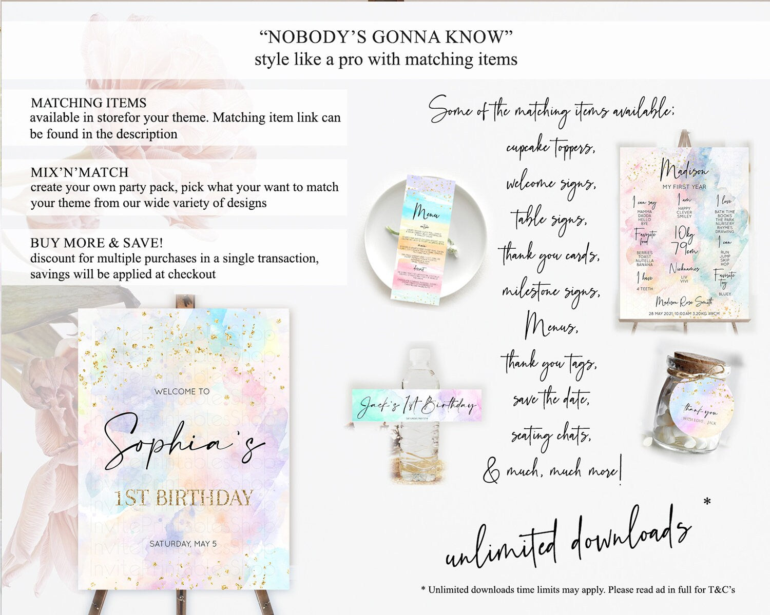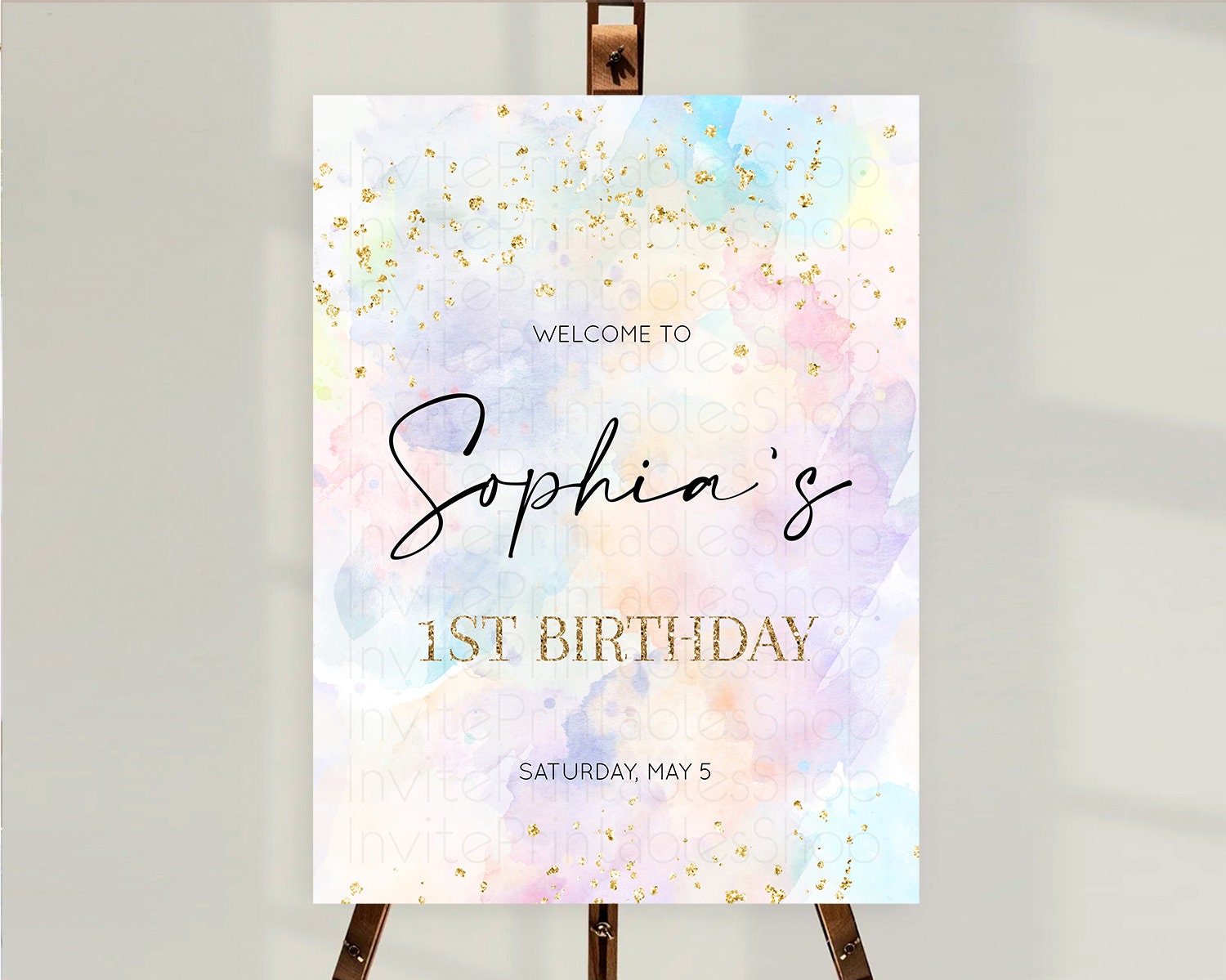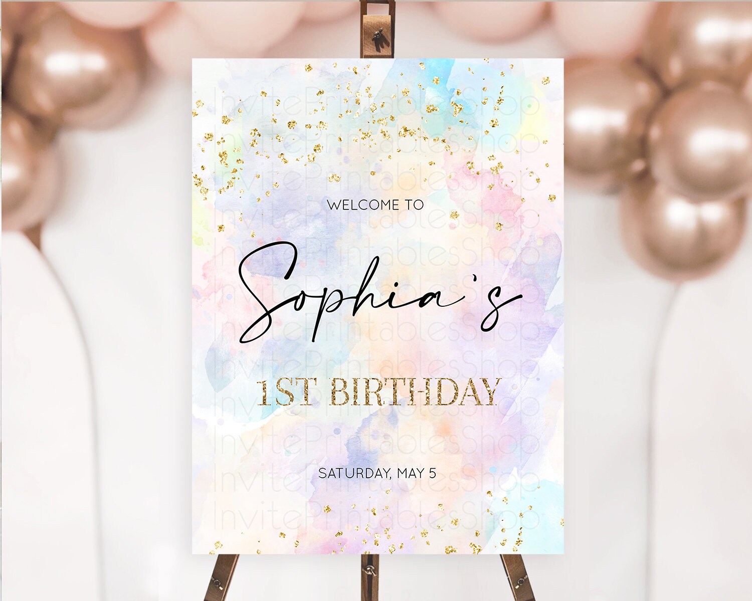 Pastel Welcome Sign Pastel Rainbow Welcome Sign Colorful Rainbow Confetti Watercolor Glitter Pastel First Birthday Welcome Sign D10605