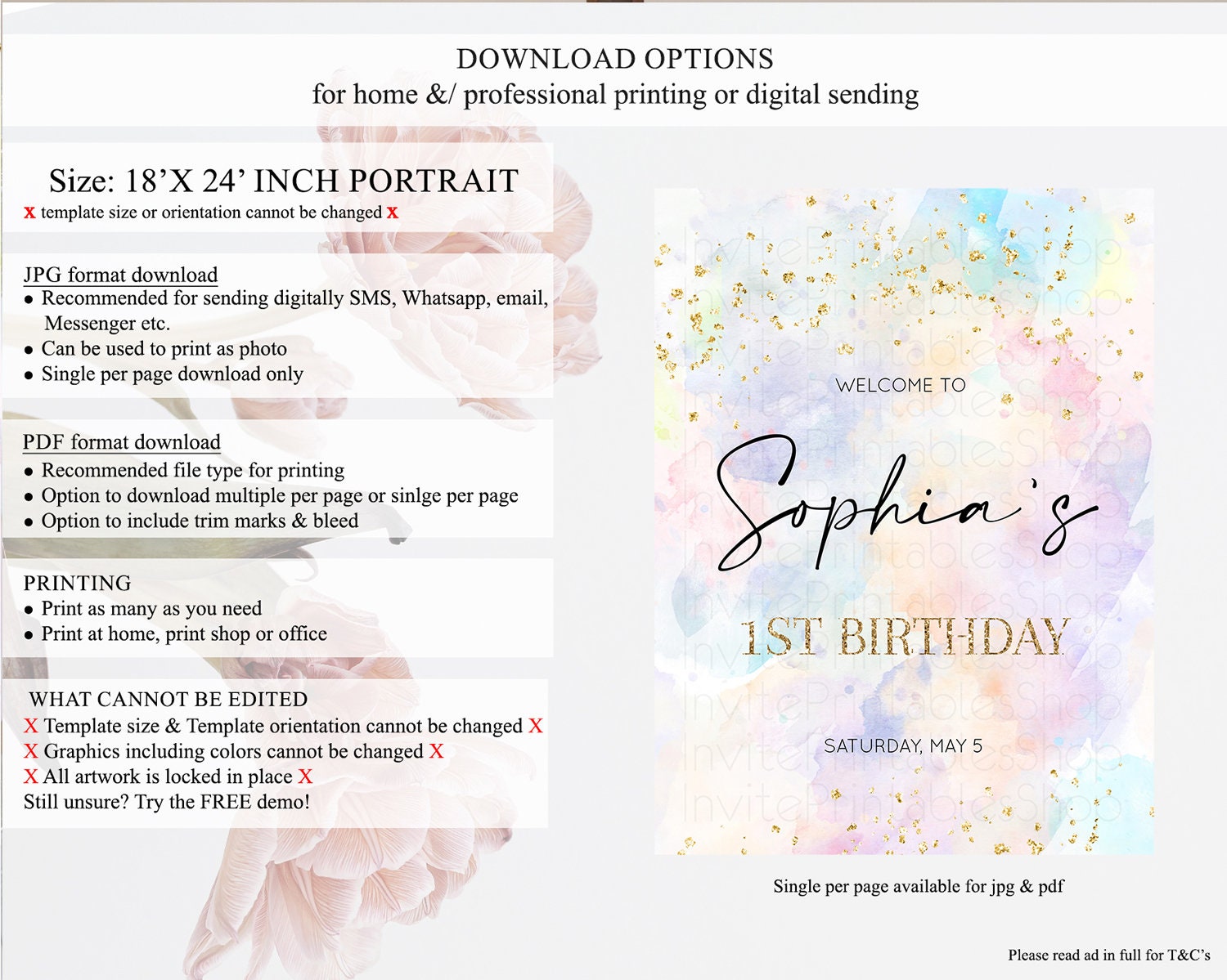 • Template size & orientation cannot be changed. Please use the demo link to confirm this product suits your needs.