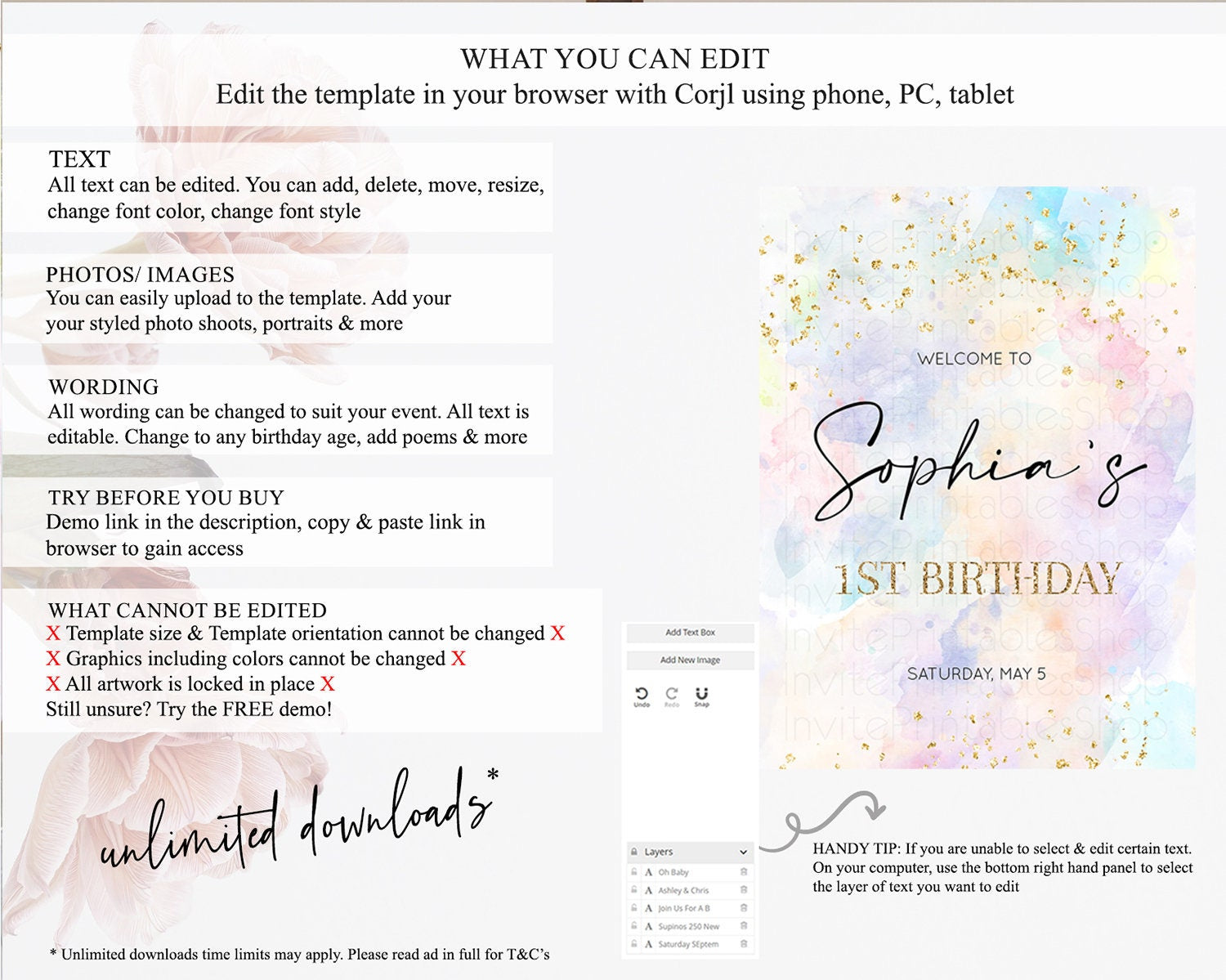 • After purchase, Corjl emails your editing link. Allow up to 15 minutes for delivery.