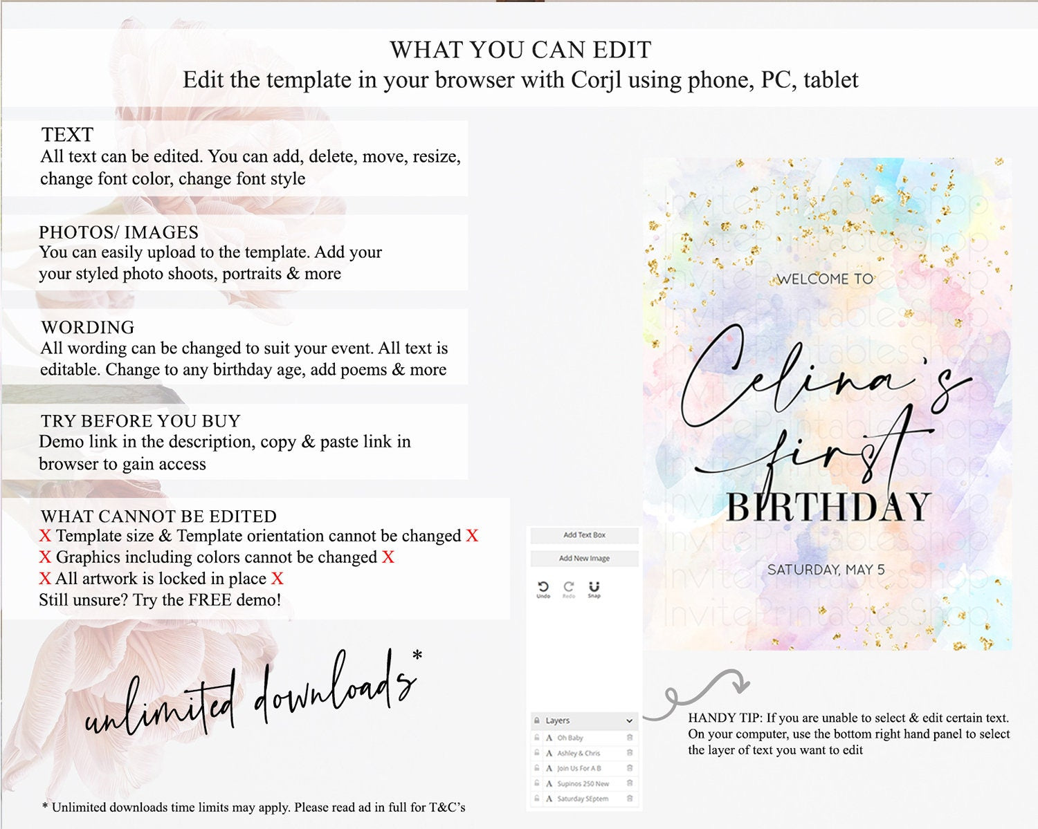 • After purchase, Corjl emails your editing link. Allow up to 15 minutes for delivery.