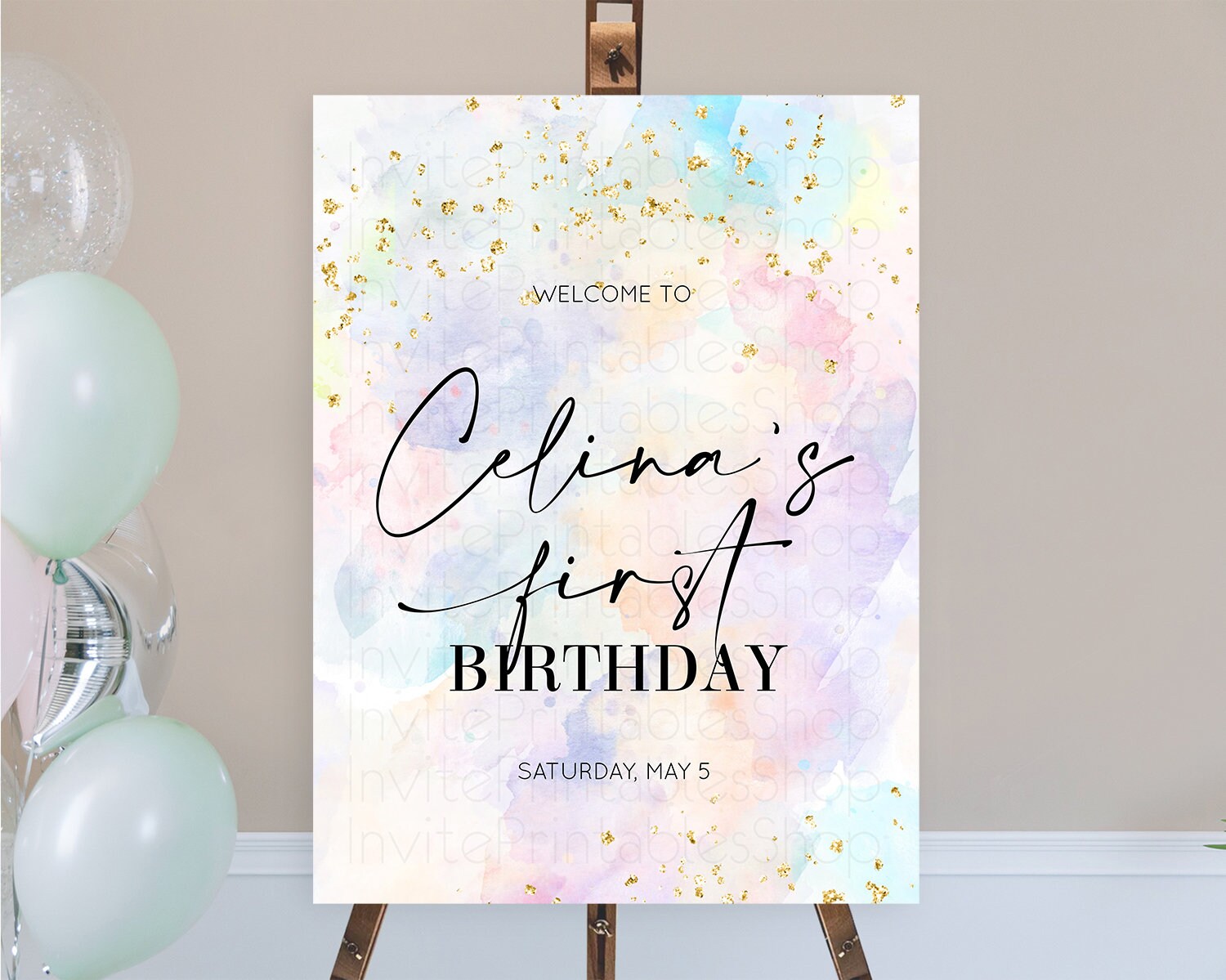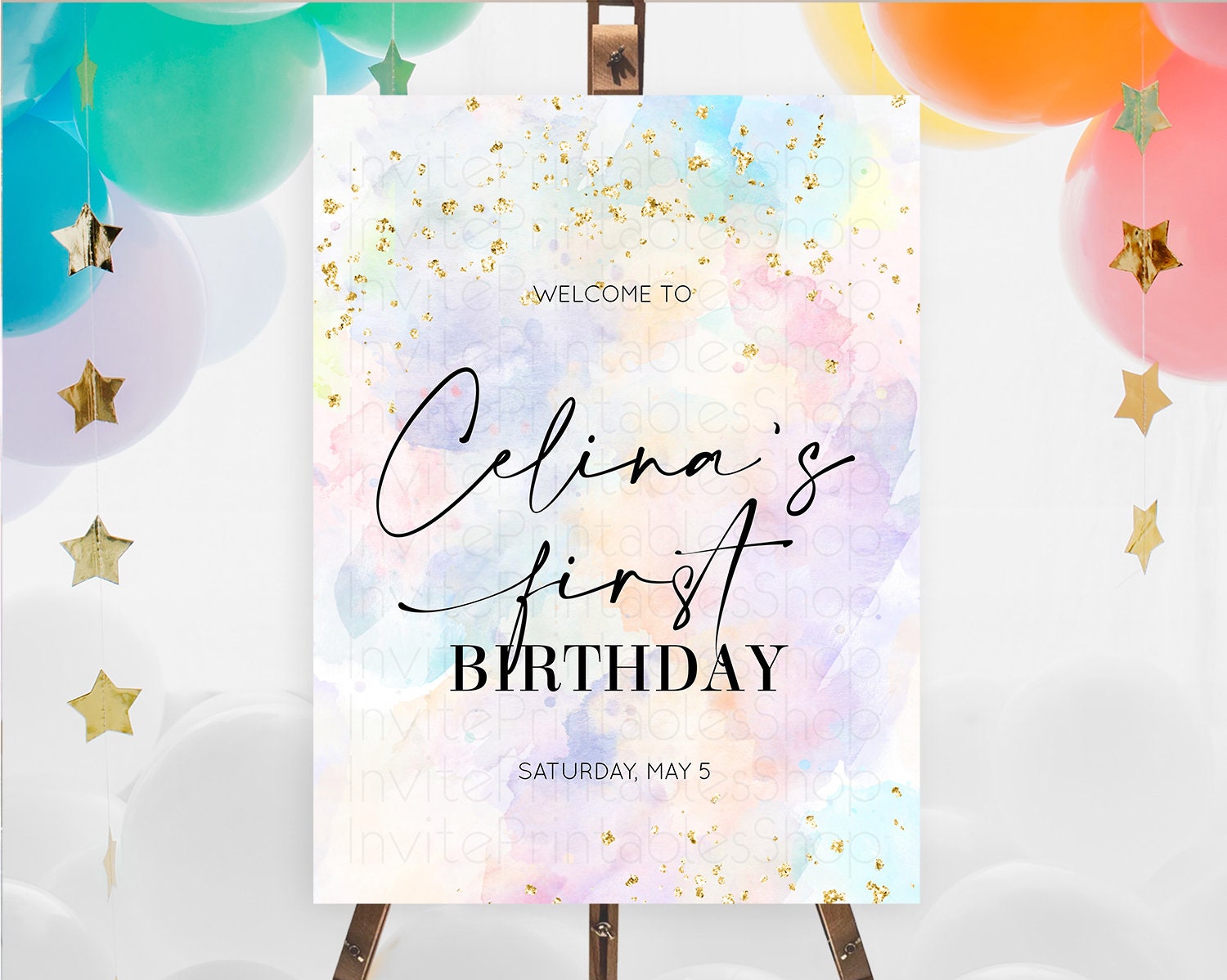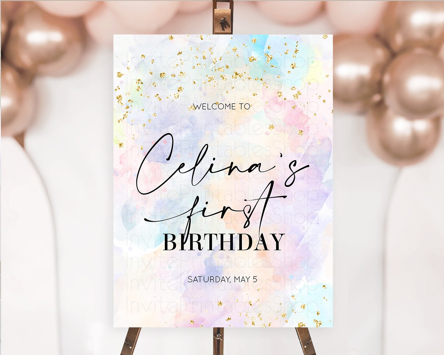 Pastel Welcome Sign Pastel Rainbow Welcome Sign Colorful Rainbow Confetti Watercolor Glitter Pastel First Birthday Welcome Sign D10605