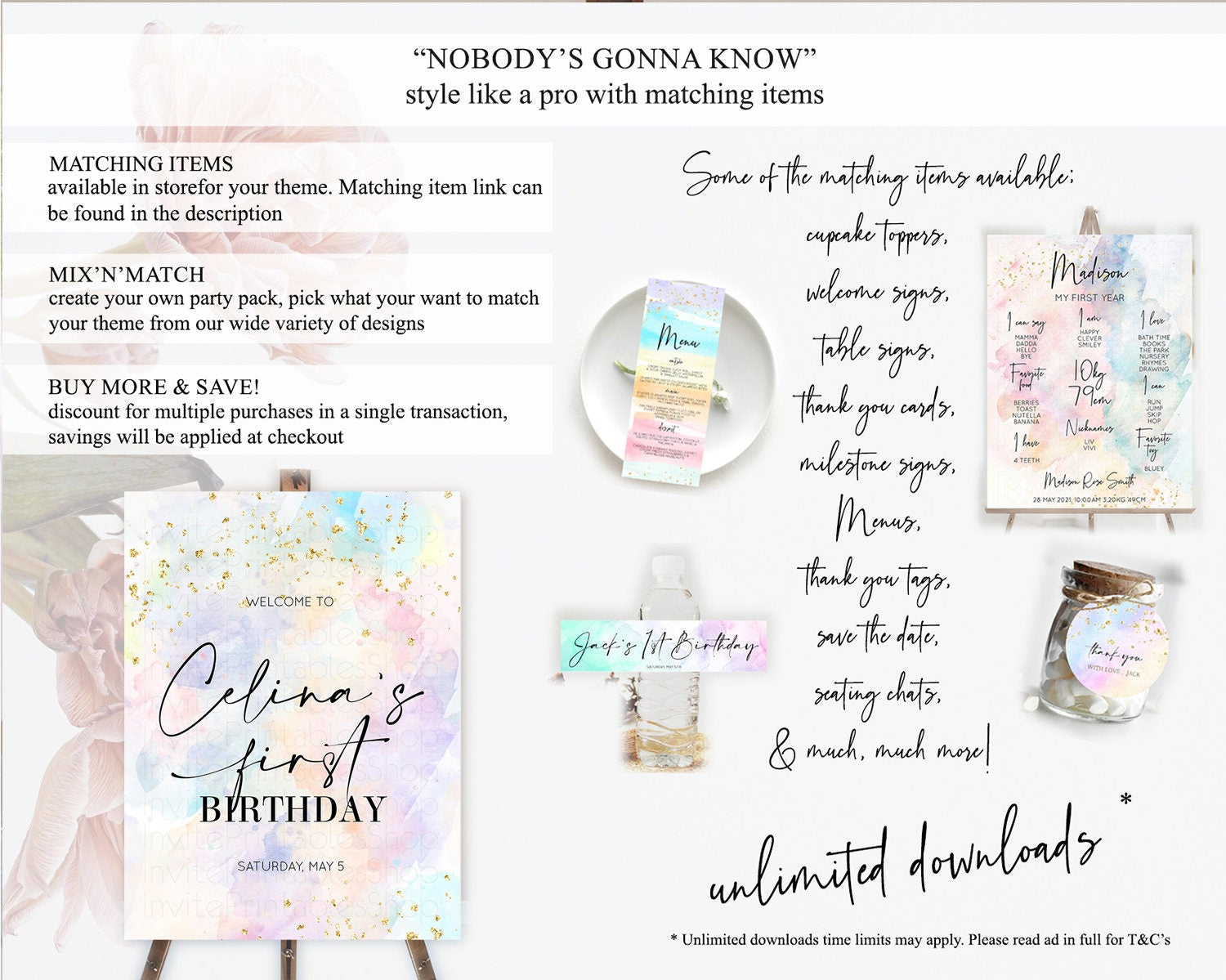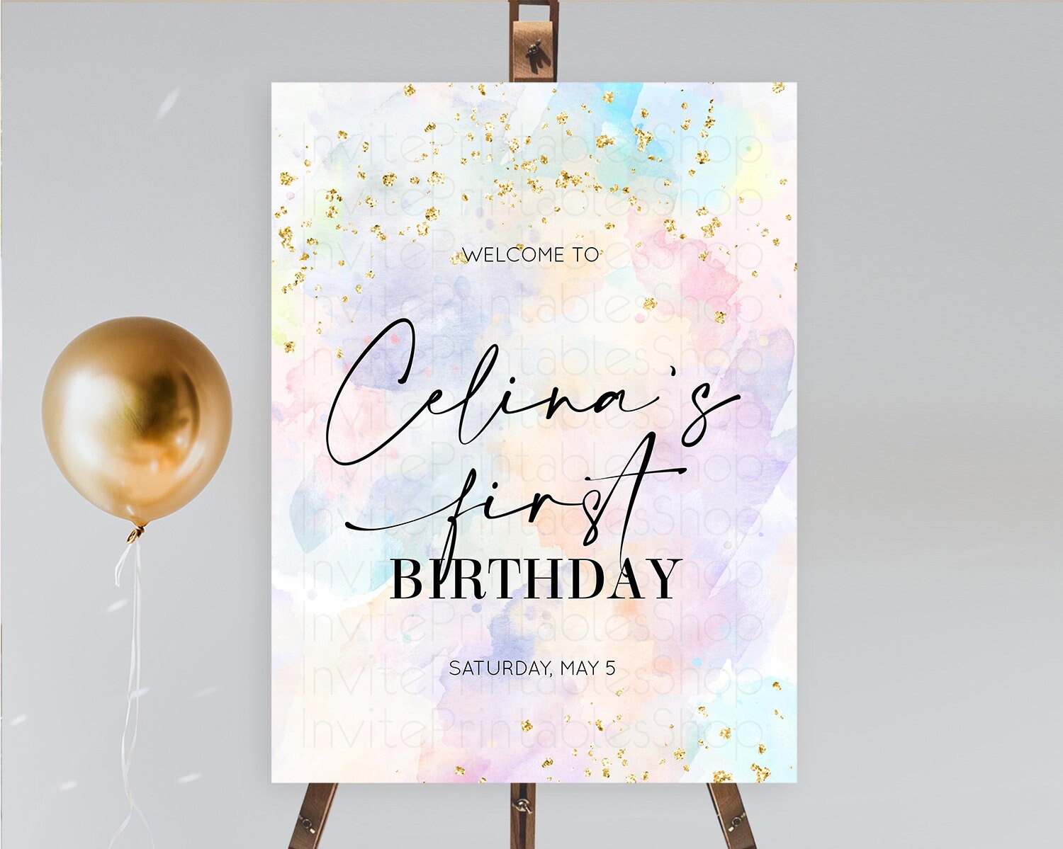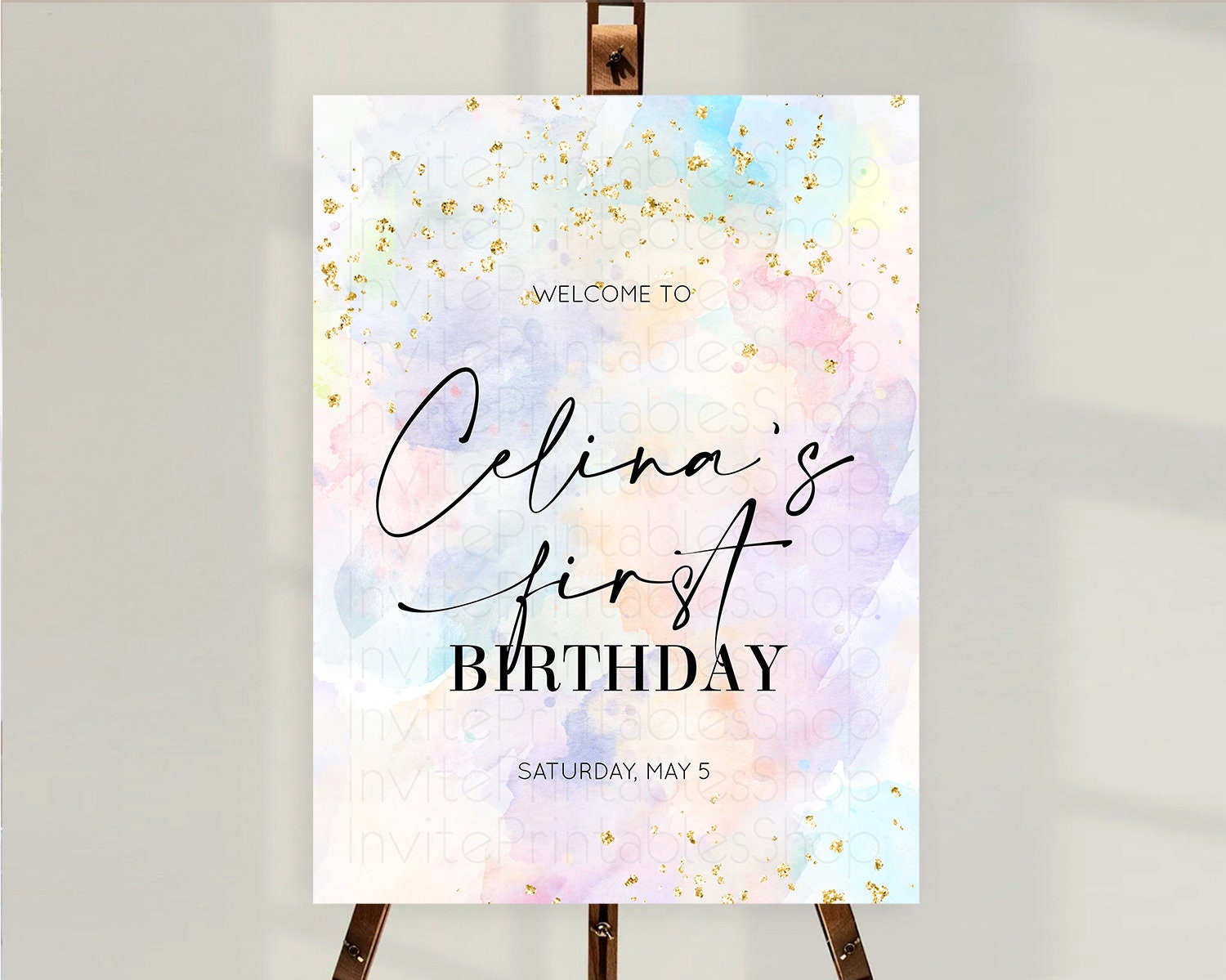 Pastel Welcome Sign Pastel Rainbow Welcome Sign Colorful Rainbow Confetti Watercolor Glitter Pastel First Birthday Welcome Sign D10605