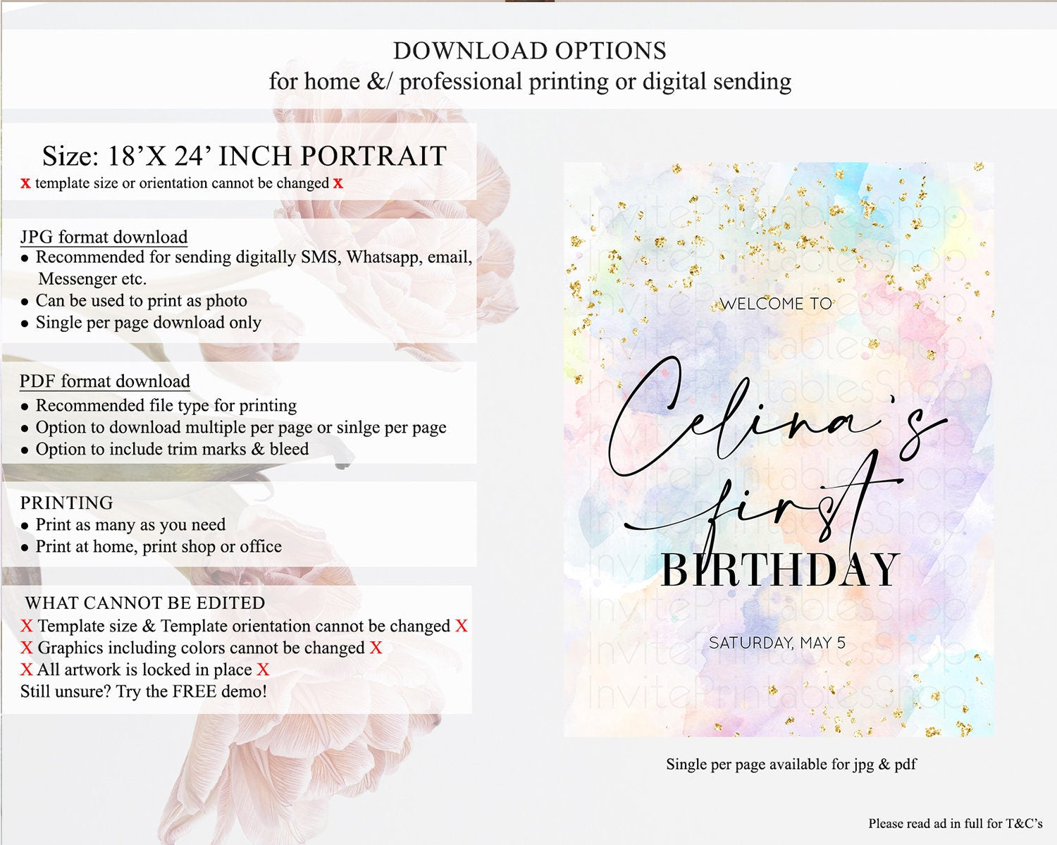 • Template size & orientation cannot be changed. Please use the demo link to confirm this product suits your needs.