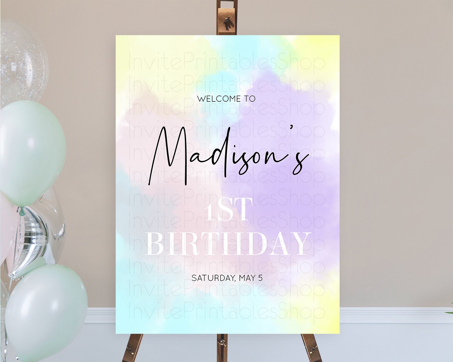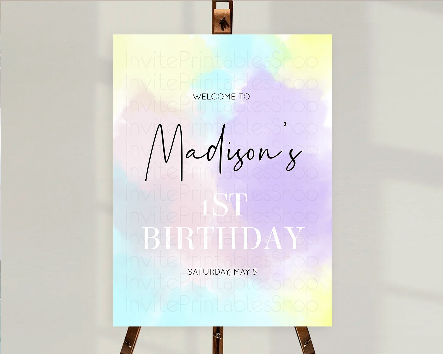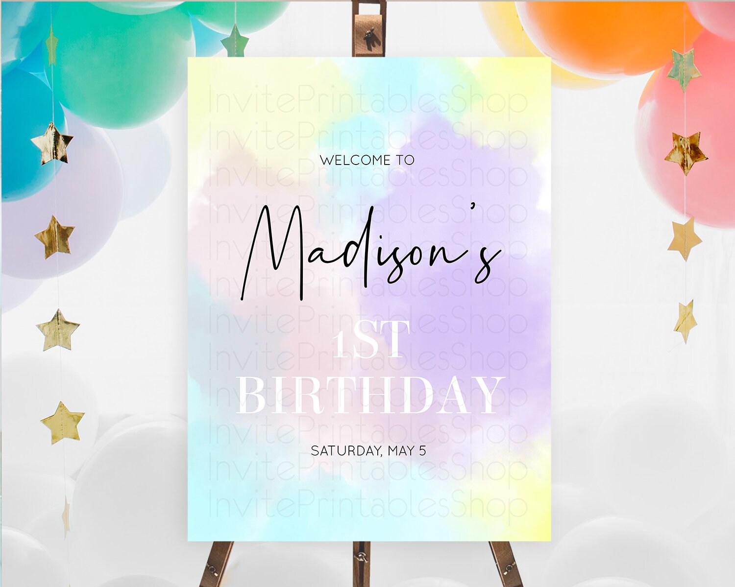 Pastel Welcome Sign Pastel Rainbow Welcome Sign Colorful Rainbow Confetti Watercolor Glitter Pastel First Birthday Welcome Sign D10617