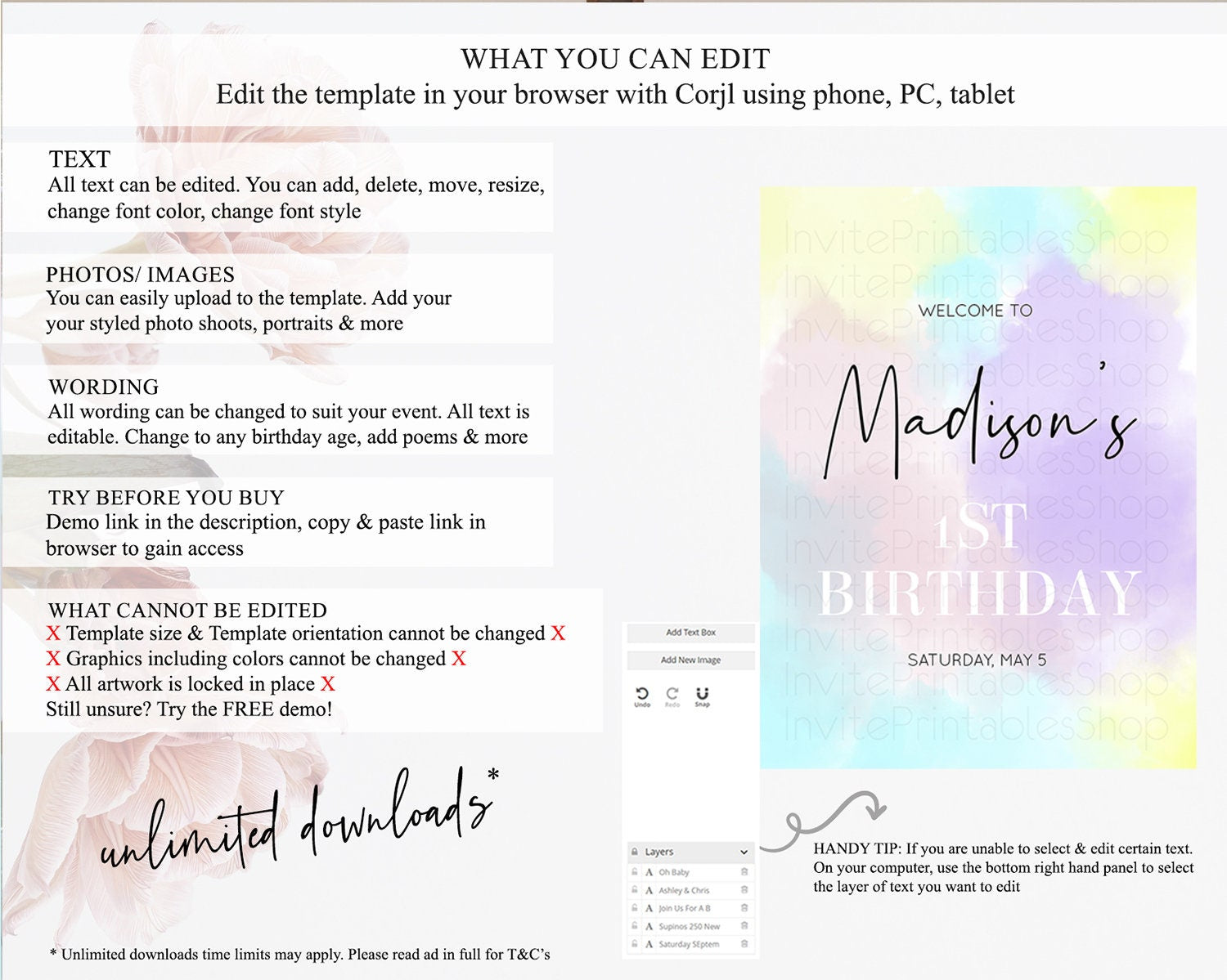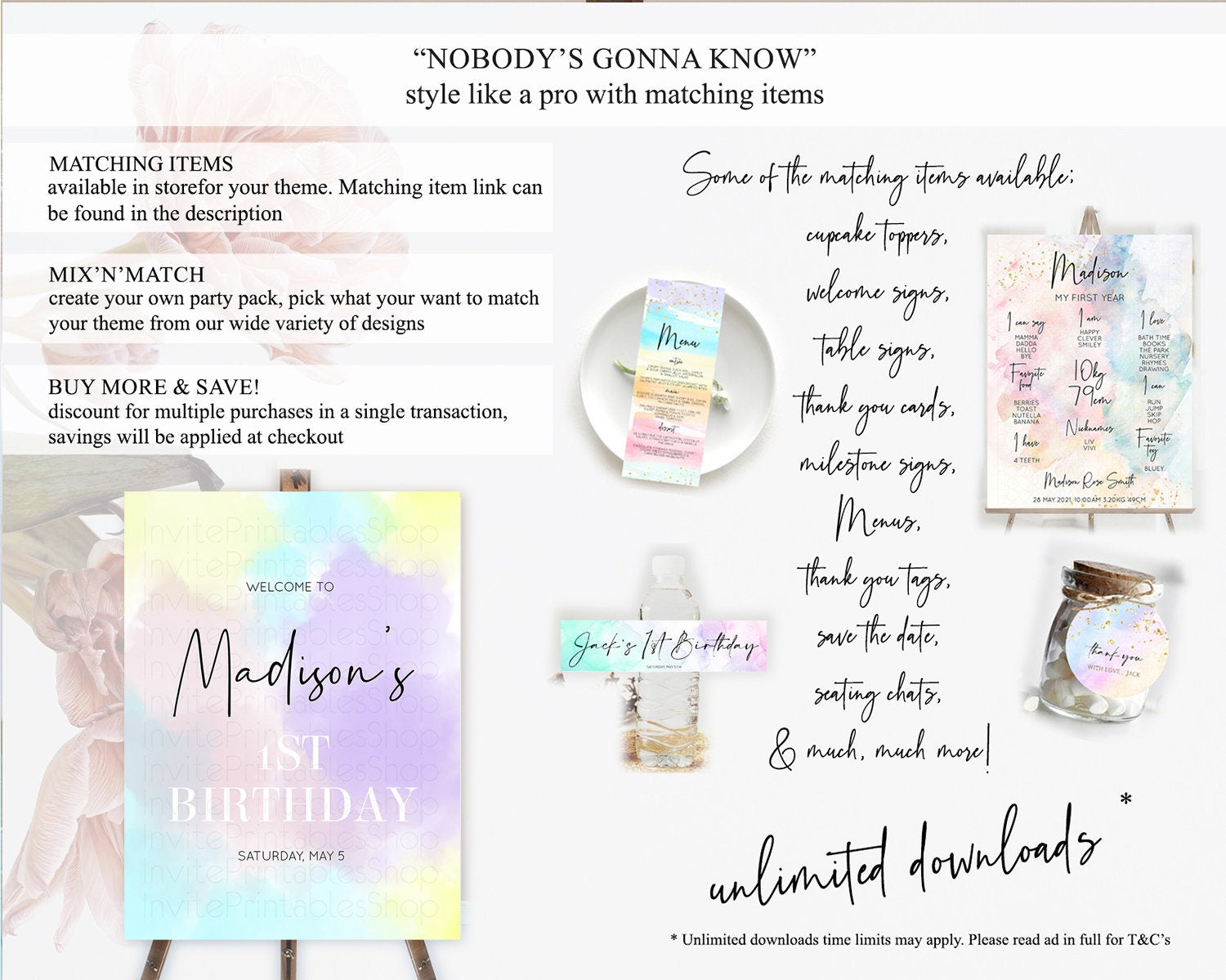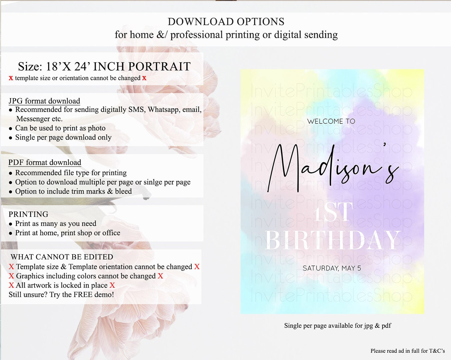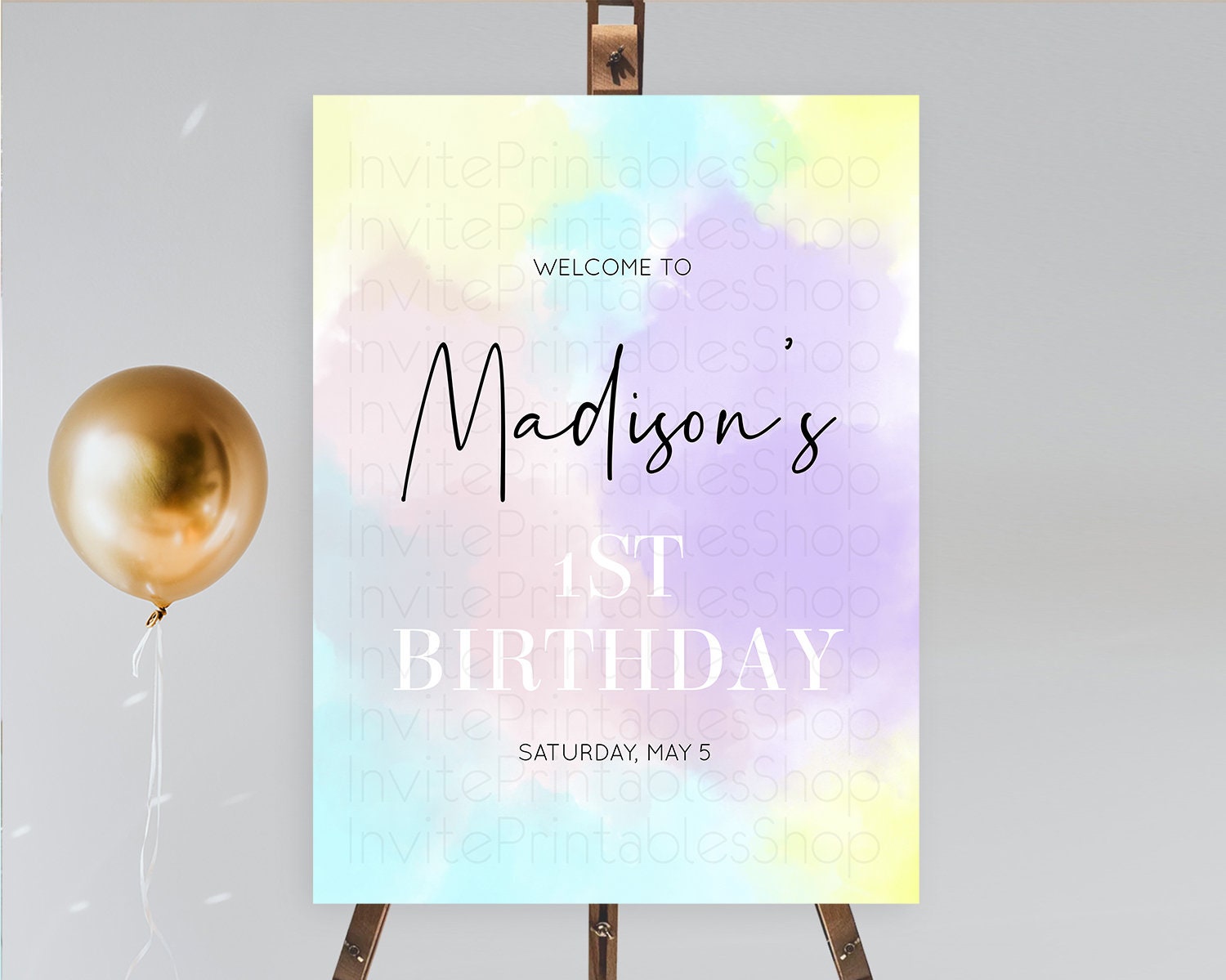 Pastel Welcome Sign Pastel Rainbow Welcome Sign Colorful Rainbow Confetti Watercolor Glitter Pastel First Birthday Welcome Sign D10617