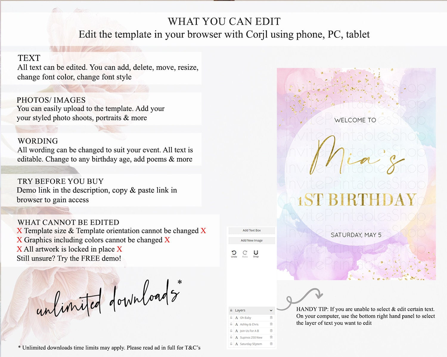 • After purchase, Corjl emails your editing link. Allow up to 15 minutes for delivery.
