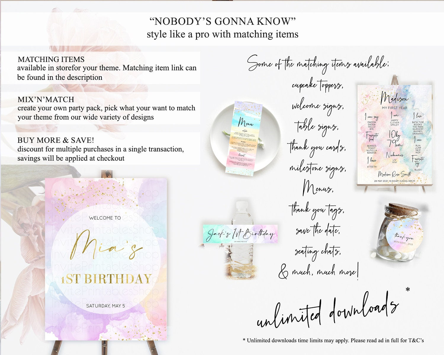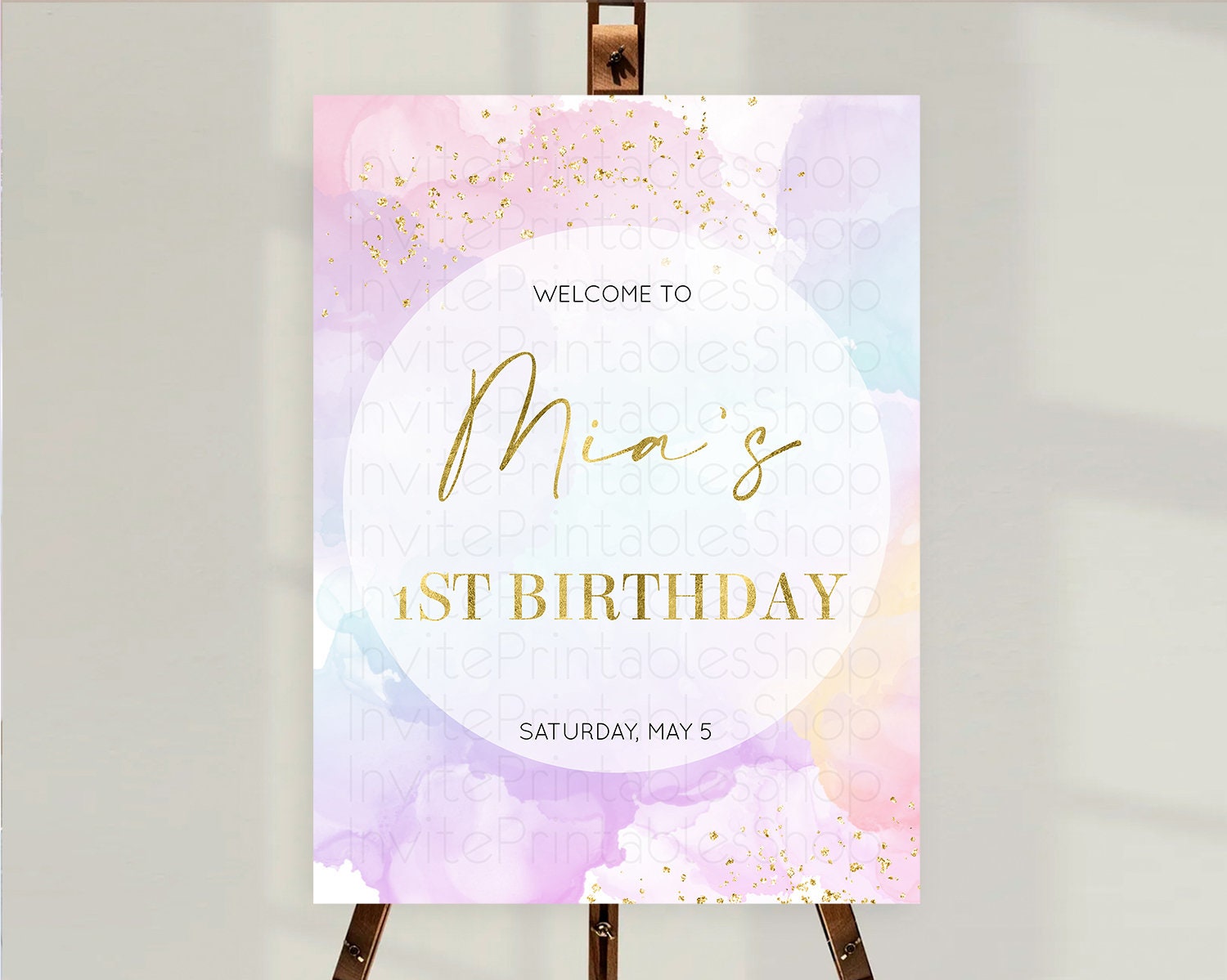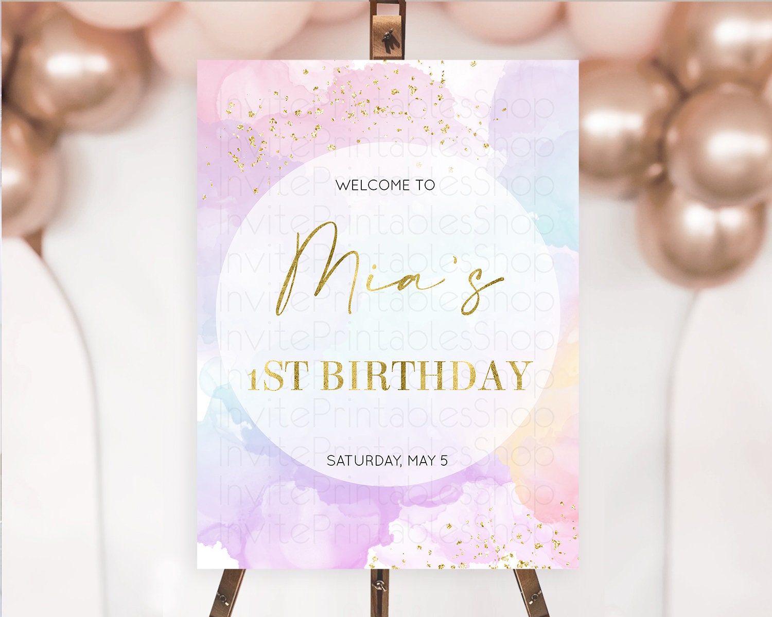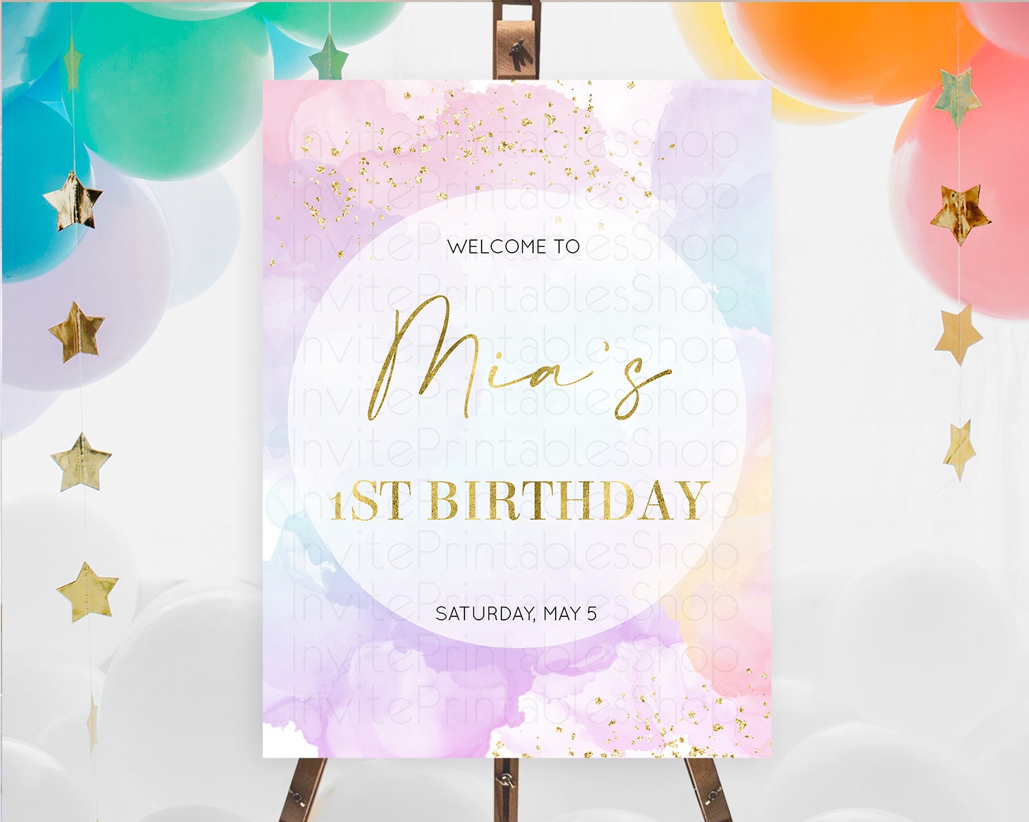 Pastel Welcome Sign Pastel Rainbow Welcome Sign Colorful Rainbow Confetti Watercolor Glitter Pastel First Birthday Welcome Sign D10623