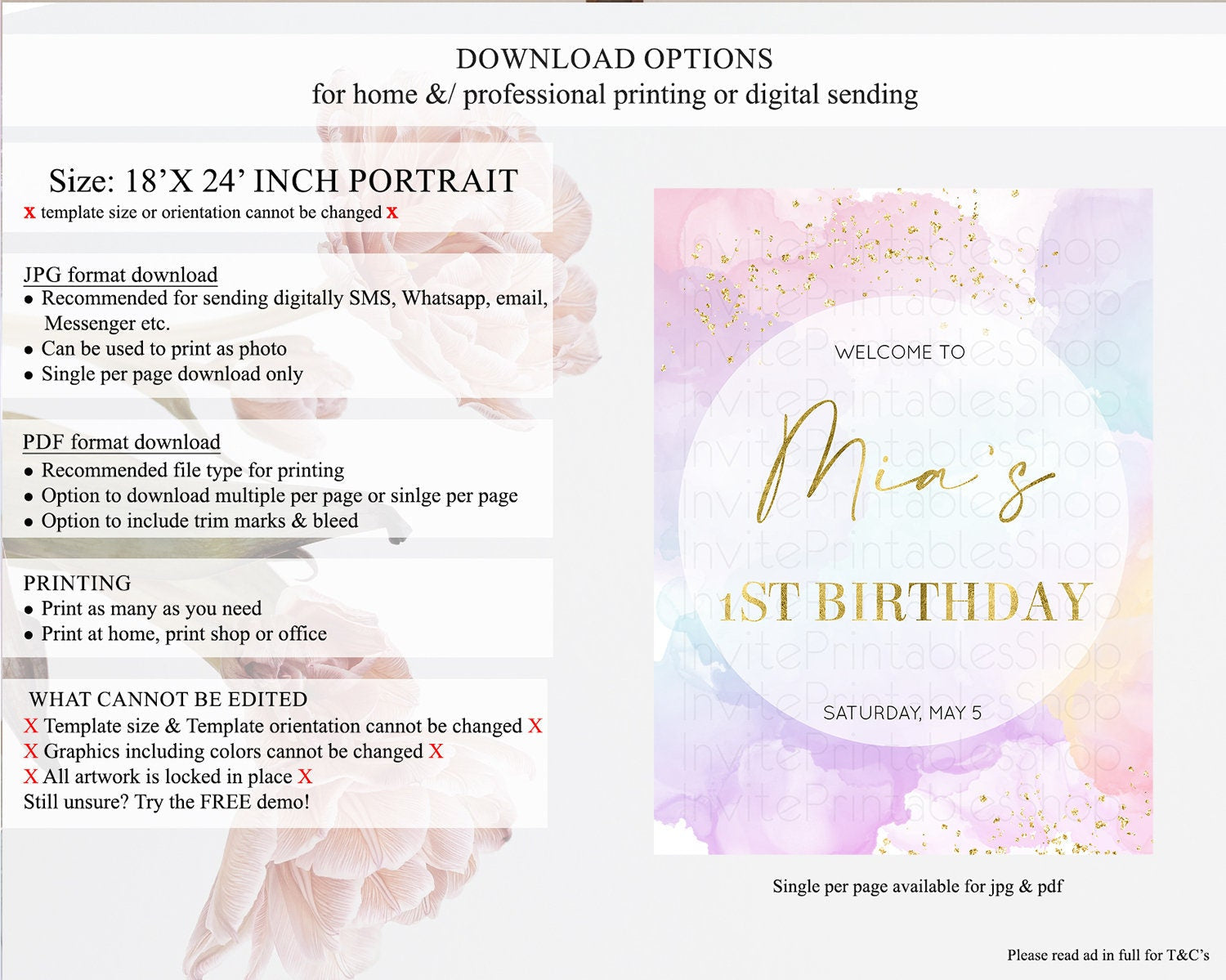 • Template size & orientation cannot be changed. Please use the demo link to confirm this product suits your needs.