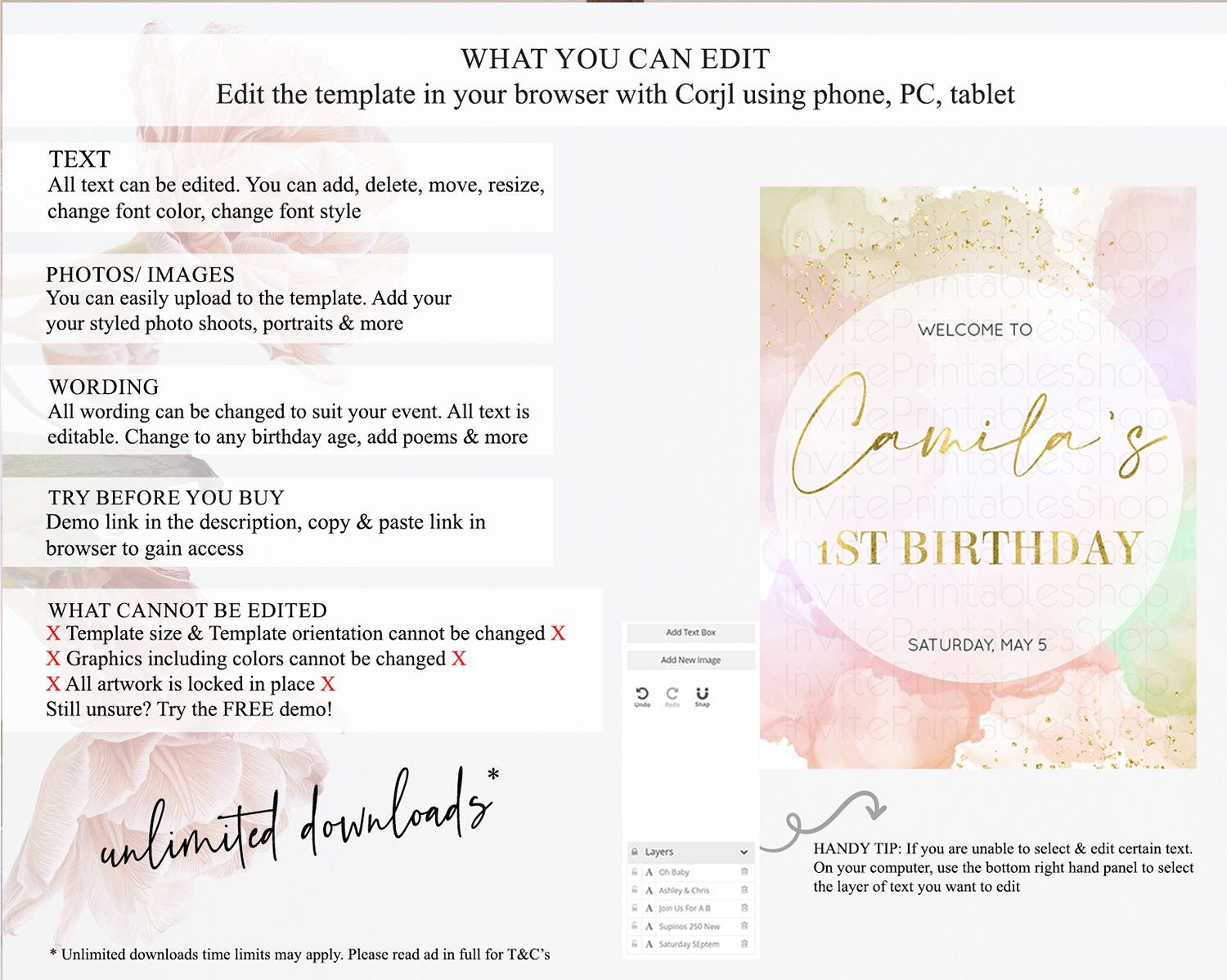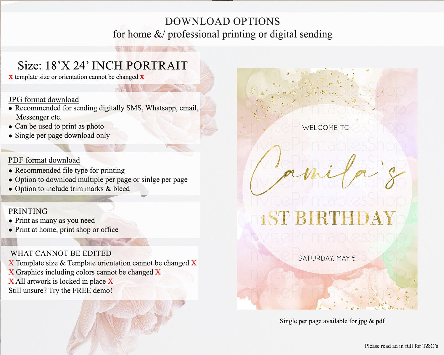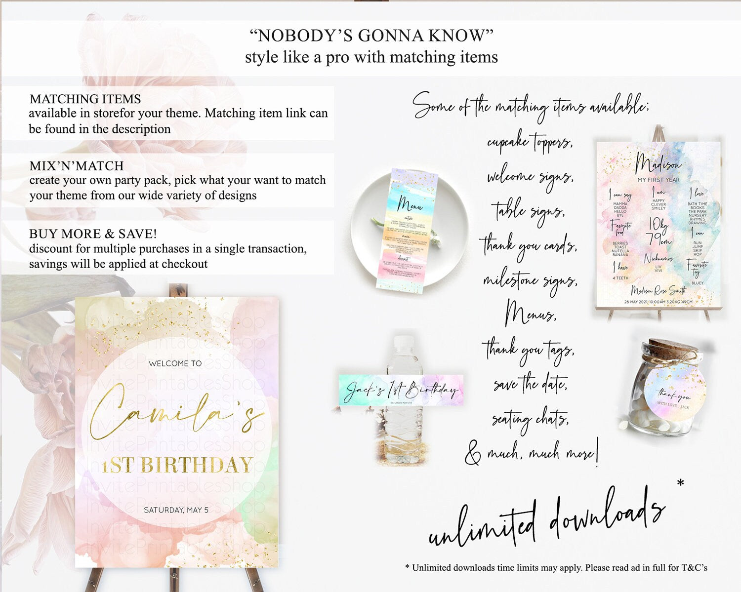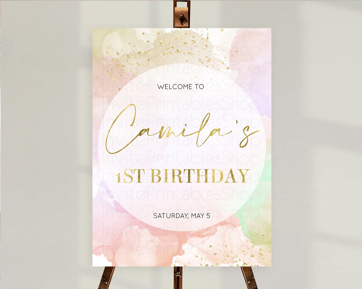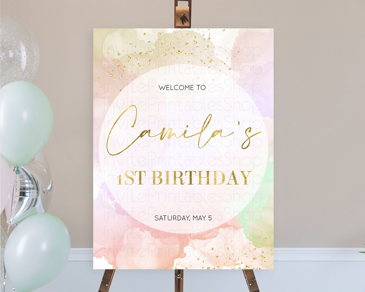 Pastel Welcome Sign Pastel Rainbow Welcome Sign Colorful Rainbow Confetti Watercolor Glitter Pastel First Birthday Welcome Sign D10627