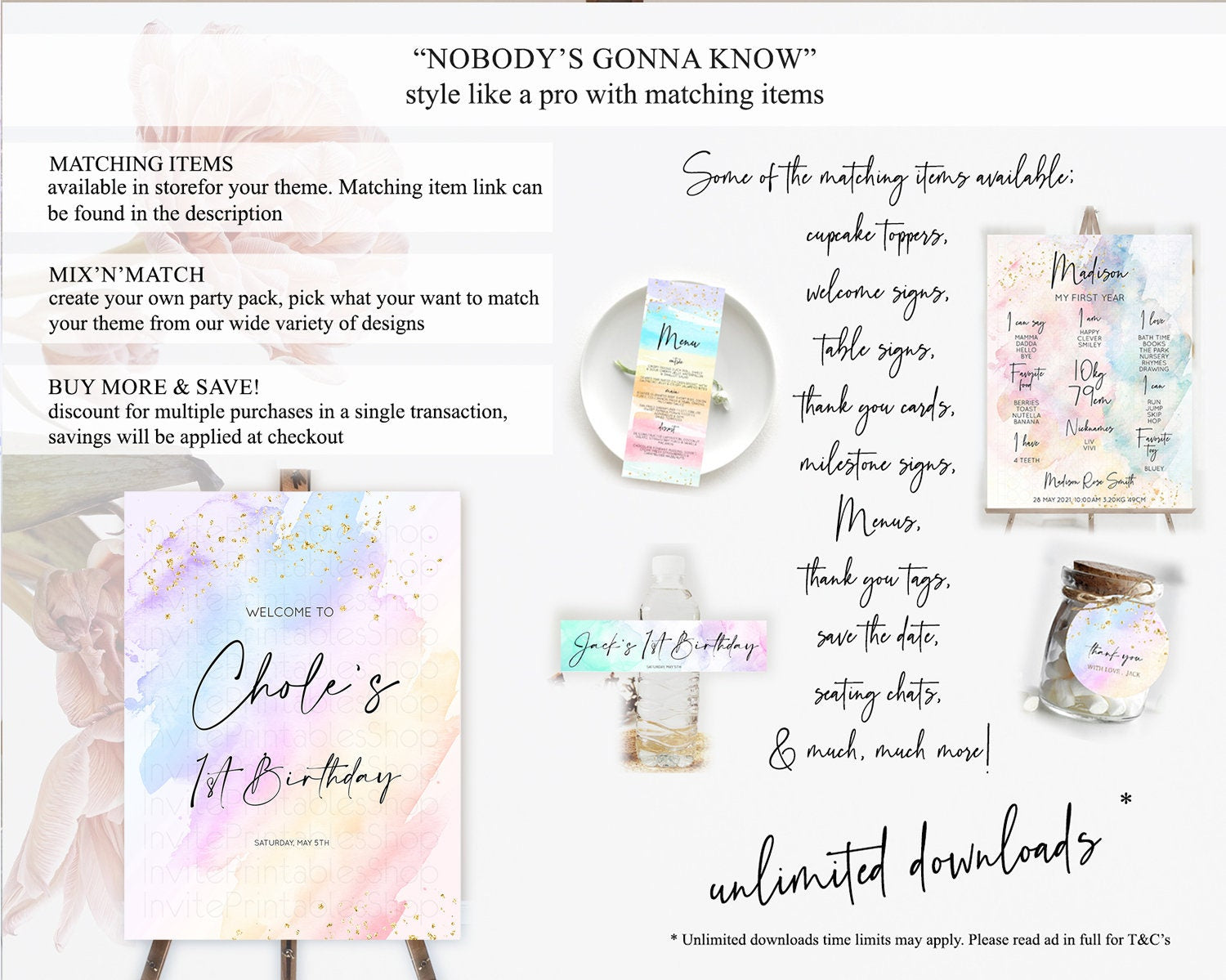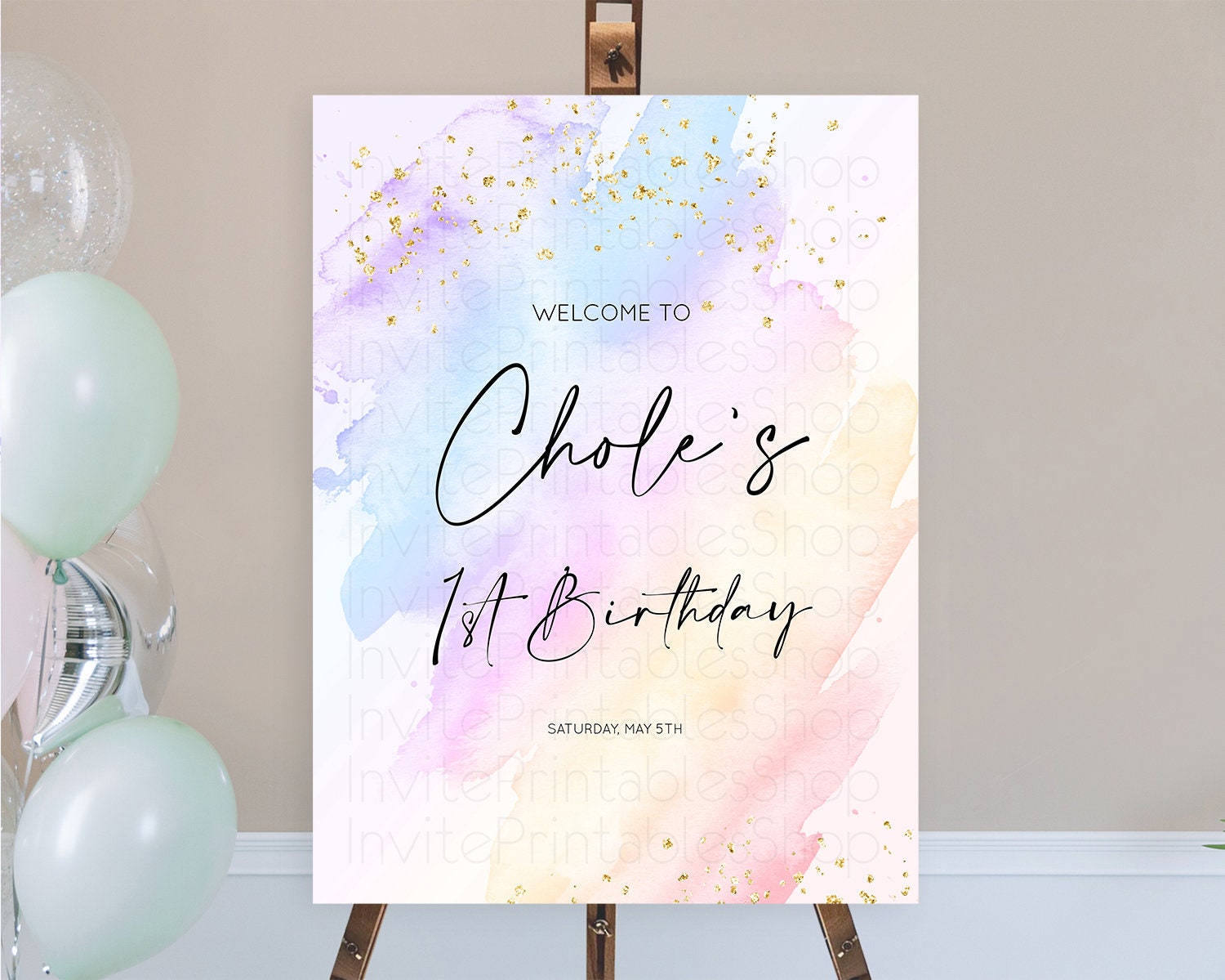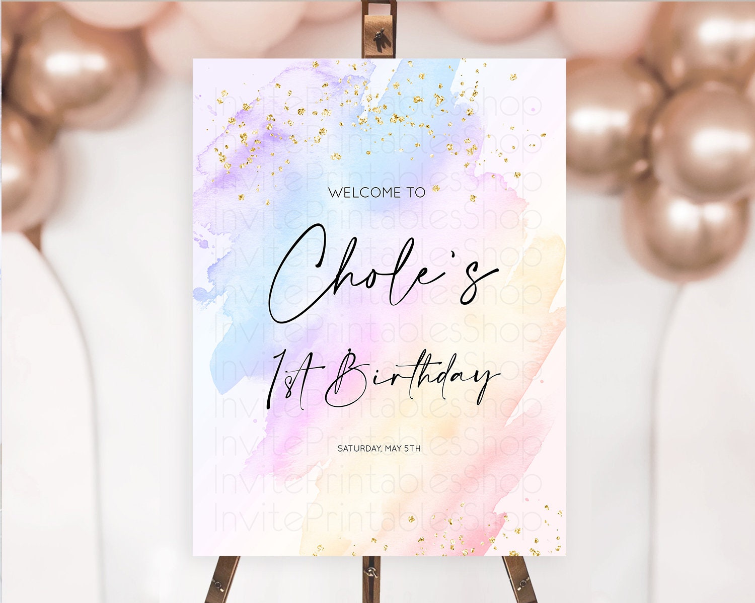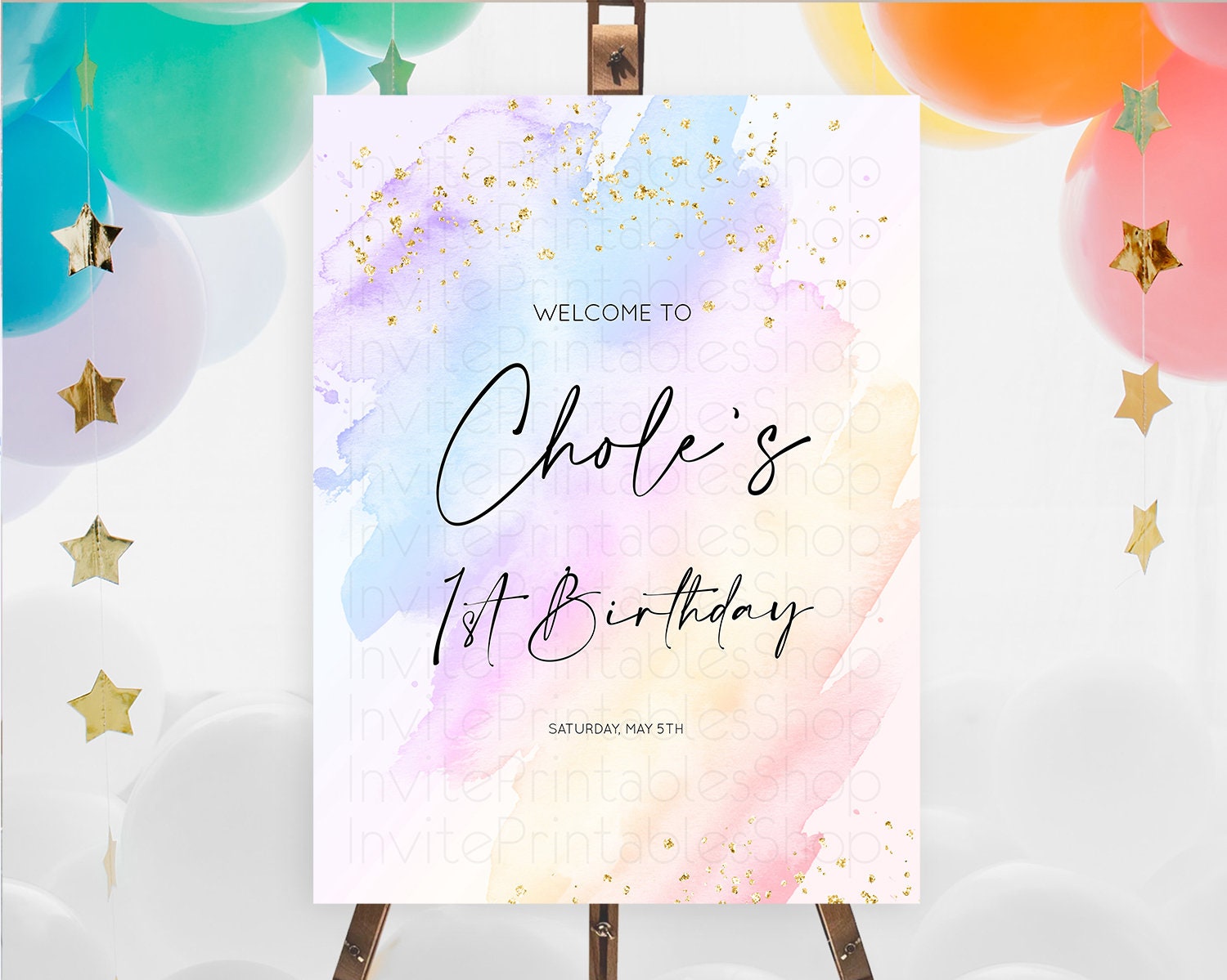 Pastel Welcome Sign Pastel Rainbow Welcome Sign Colorful Rainbow Confetti Watercolor Glitter Pastel First Birthday Welcome Sign D10635