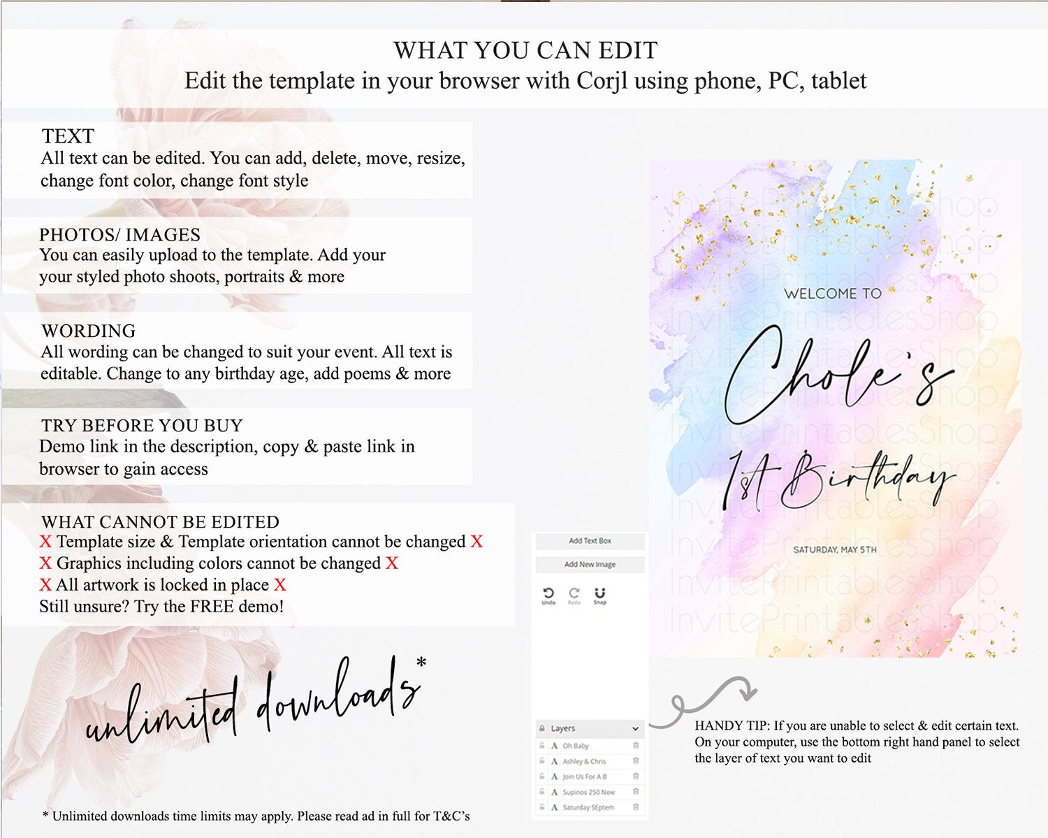 • After purchase, Corjl emails your editing link. Allow up to 15 minutes for delivery.