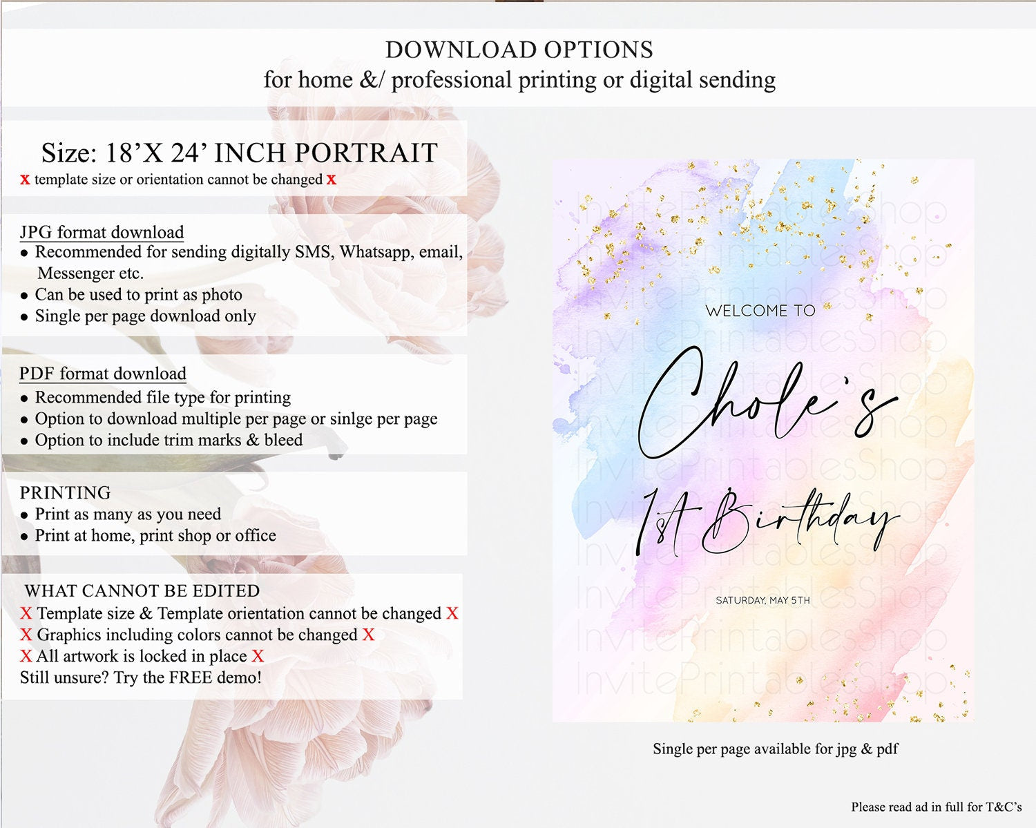 • Template size & orientation cannot be changed. Please use the demo link to confirm this product suits your needs.