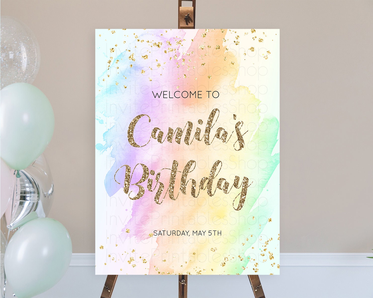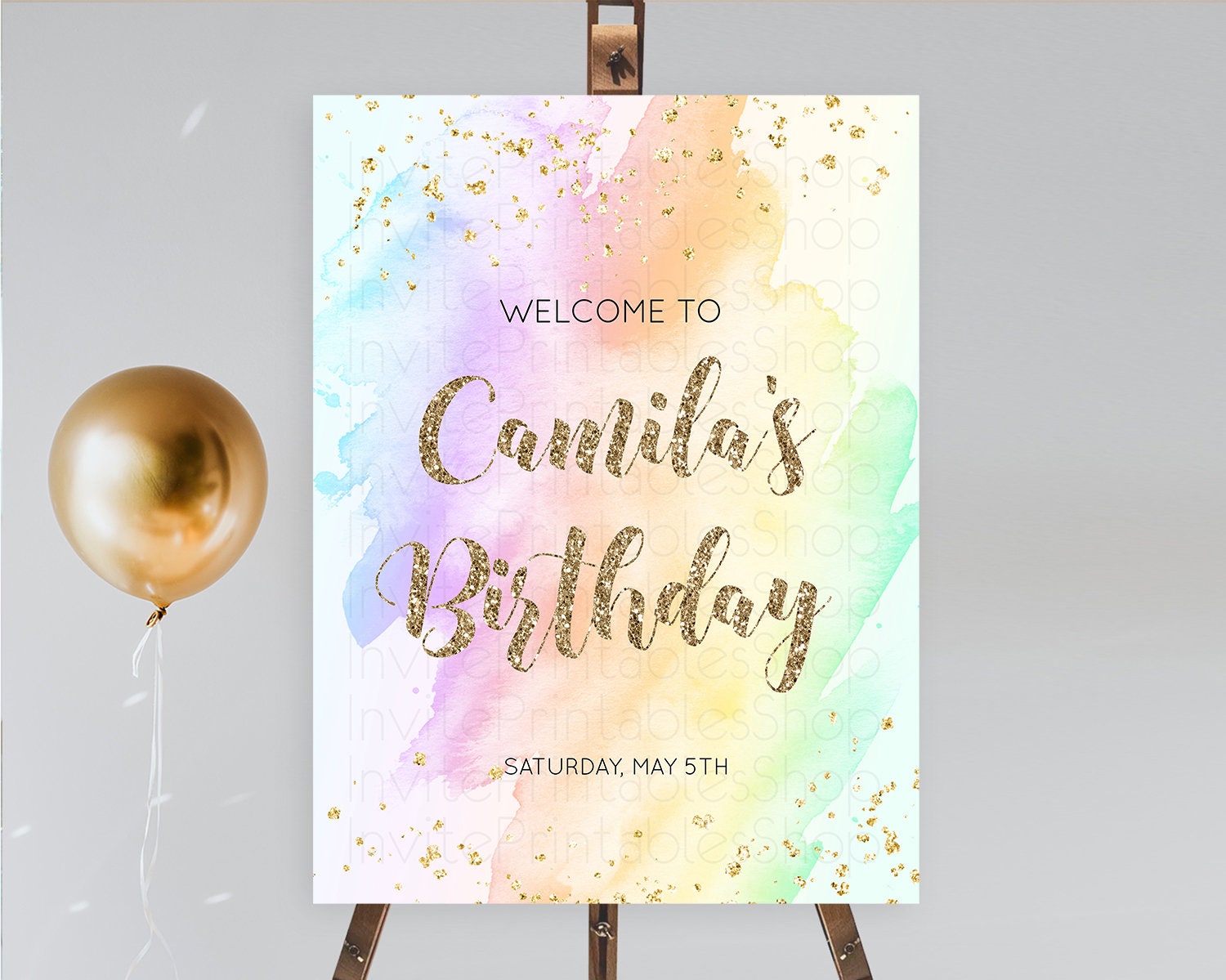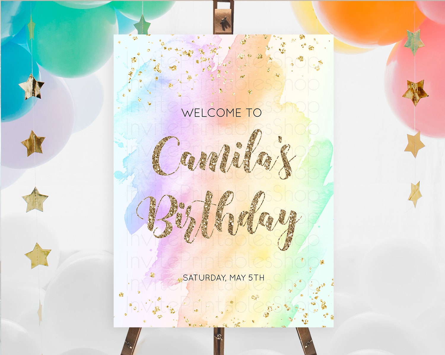 Pastel Welcome Sign Pastel Rainbow Welcome Sign Colorful Rainbow Confetti Watercolor Glitter Pastel First Birthday Welcome Sign D10643