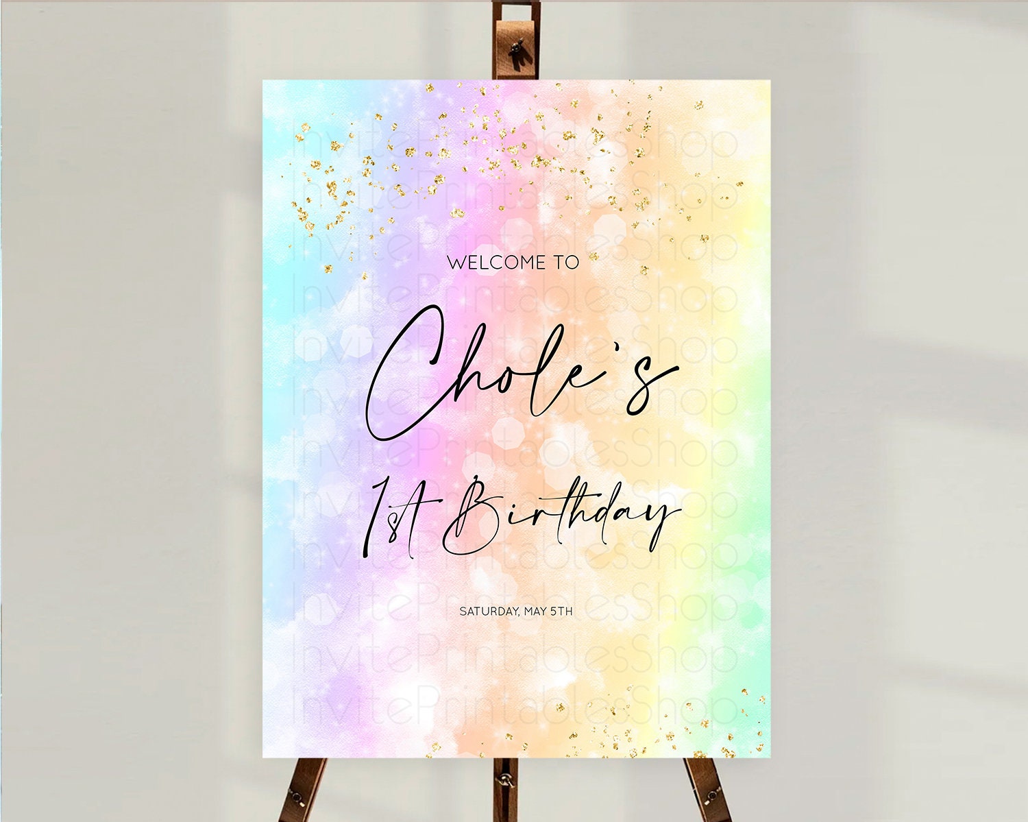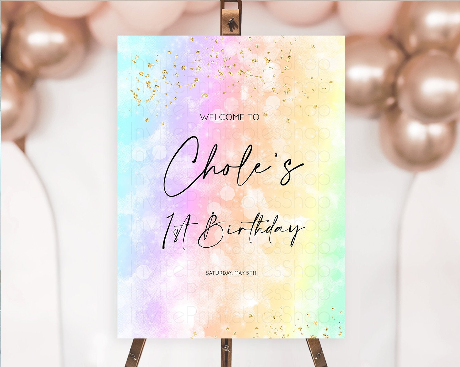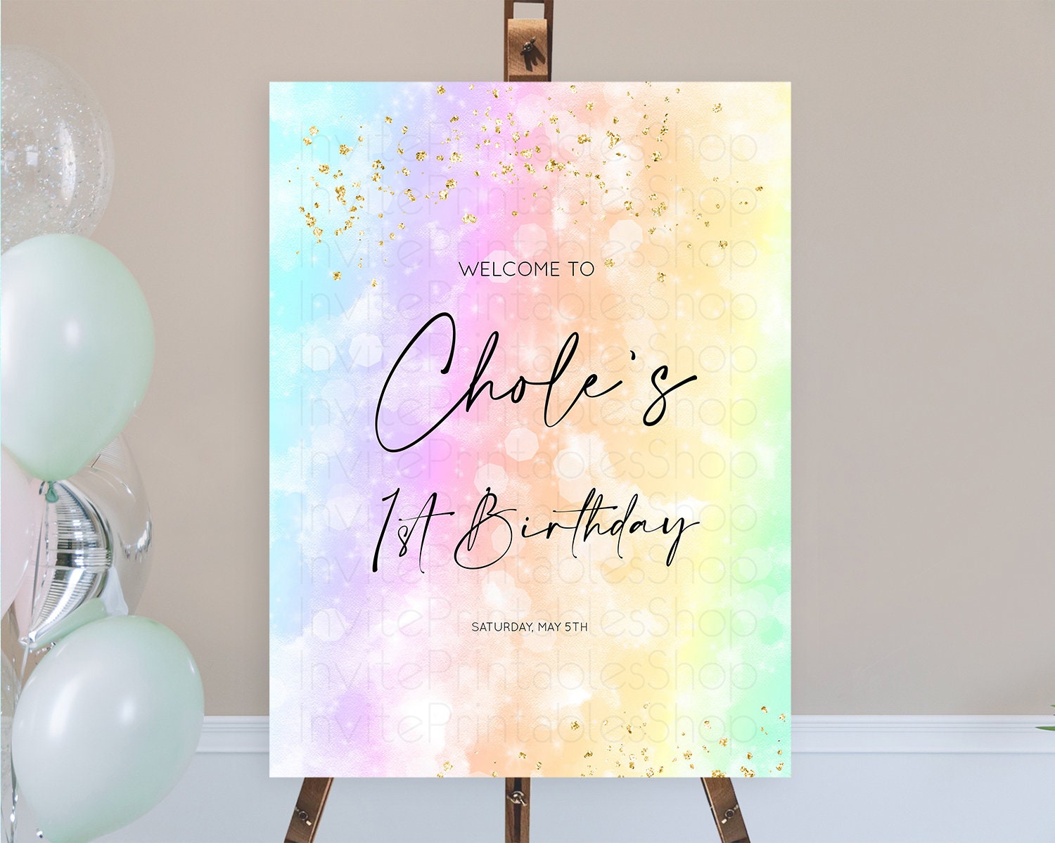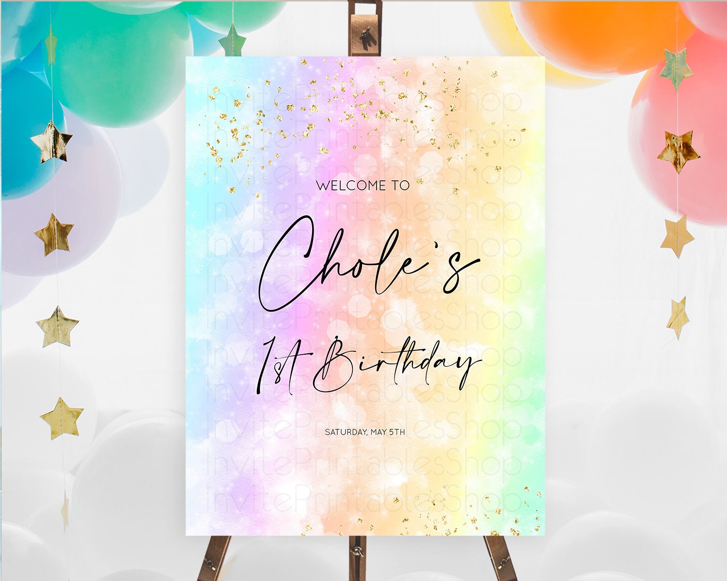 Pastel Welcome Sign Pastel Rainbow Welcome Sign Colorful Rainbow Confetti Watercolor Glitter Pastel First Birthday Welcome Sign D10647