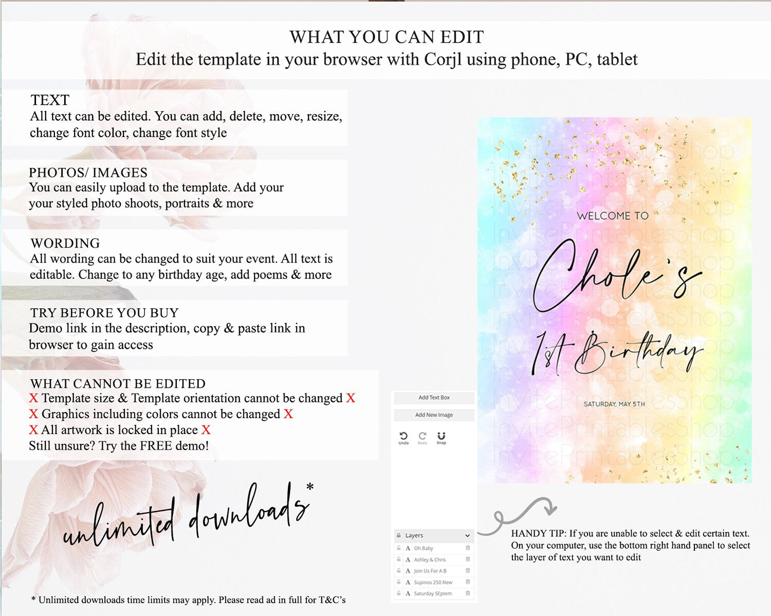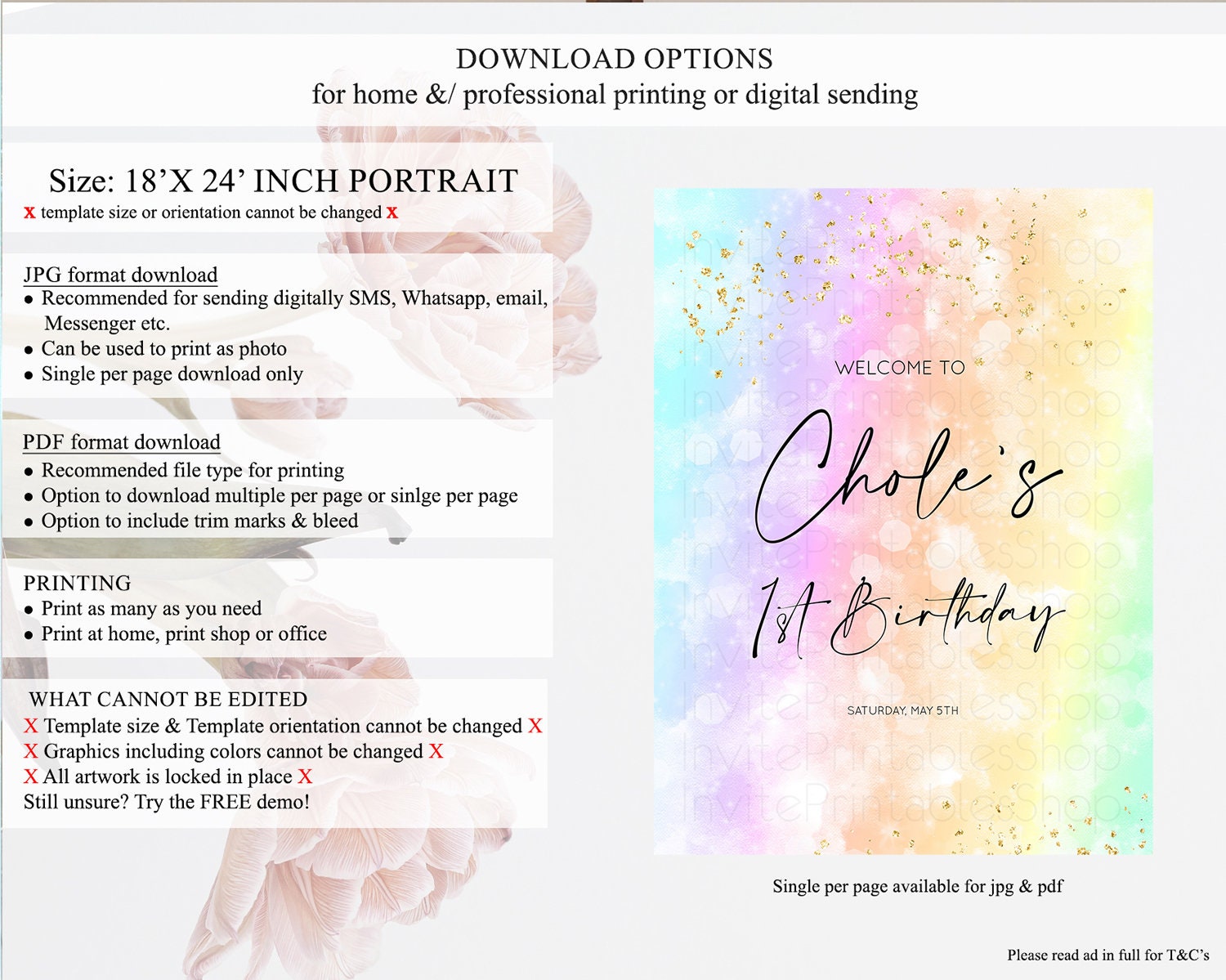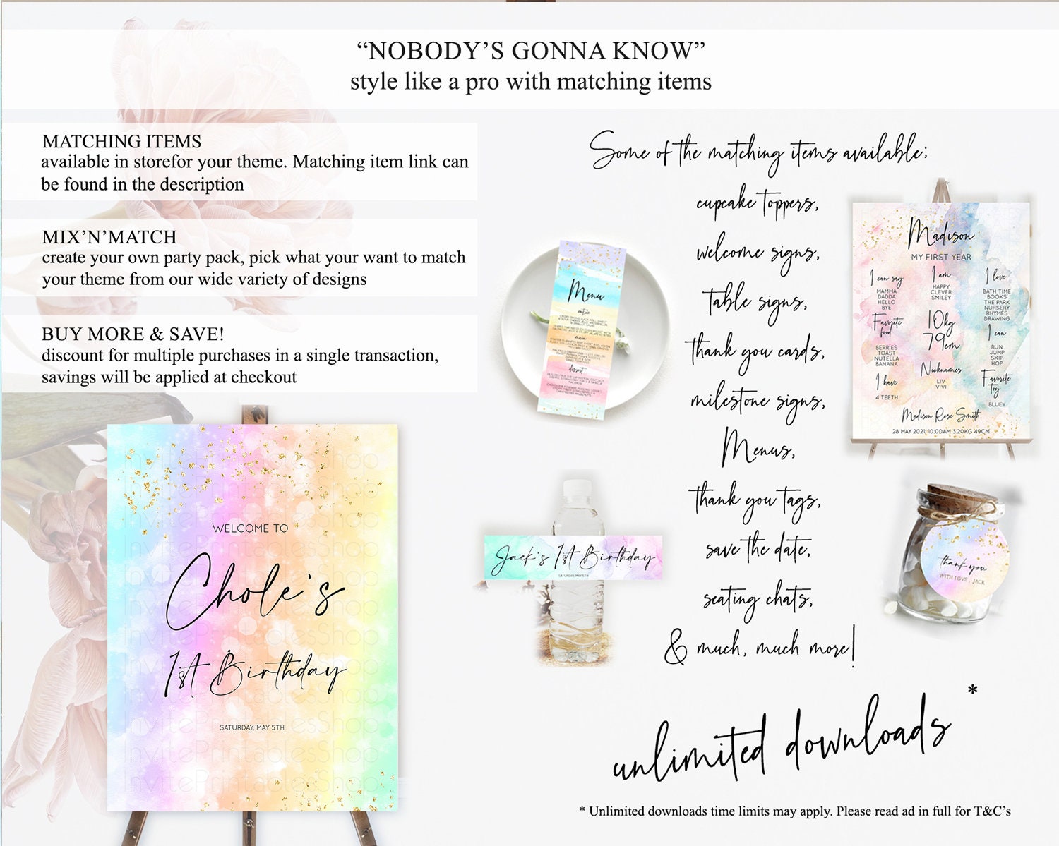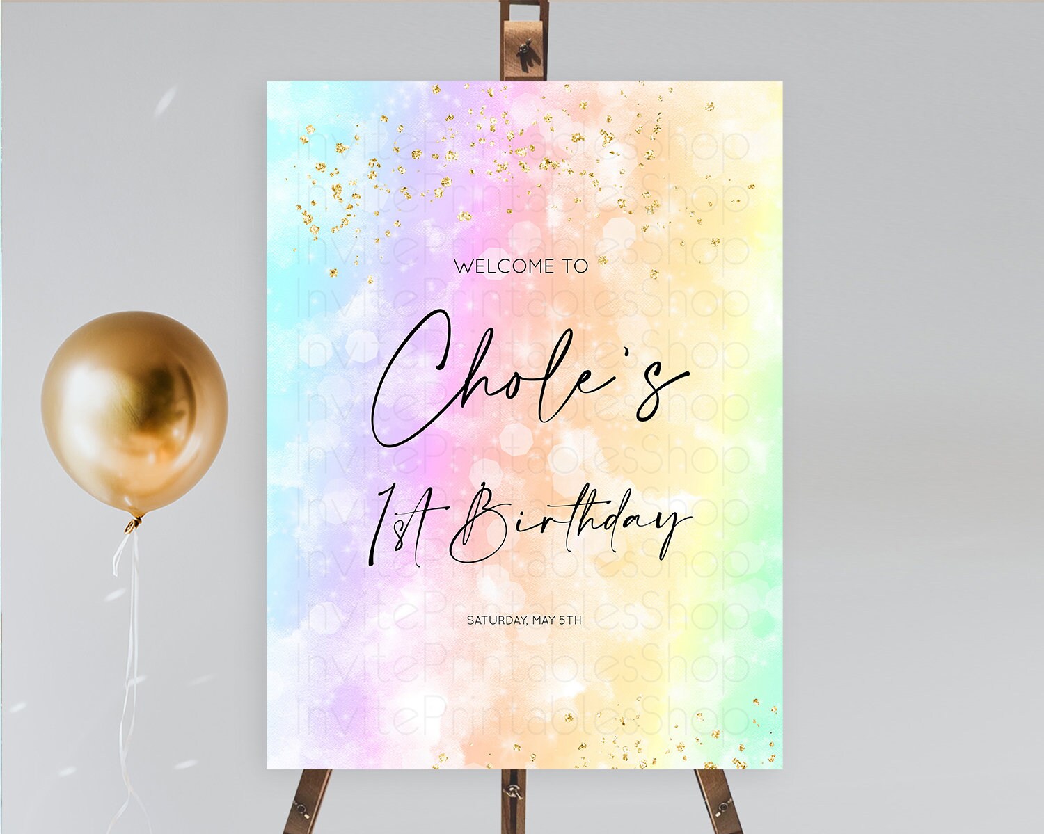 Pastel Welcome Sign Pastel Rainbow Welcome Sign Colorful Rainbow Confetti Watercolor Glitter Pastel First Birthday Welcome Sign D10647