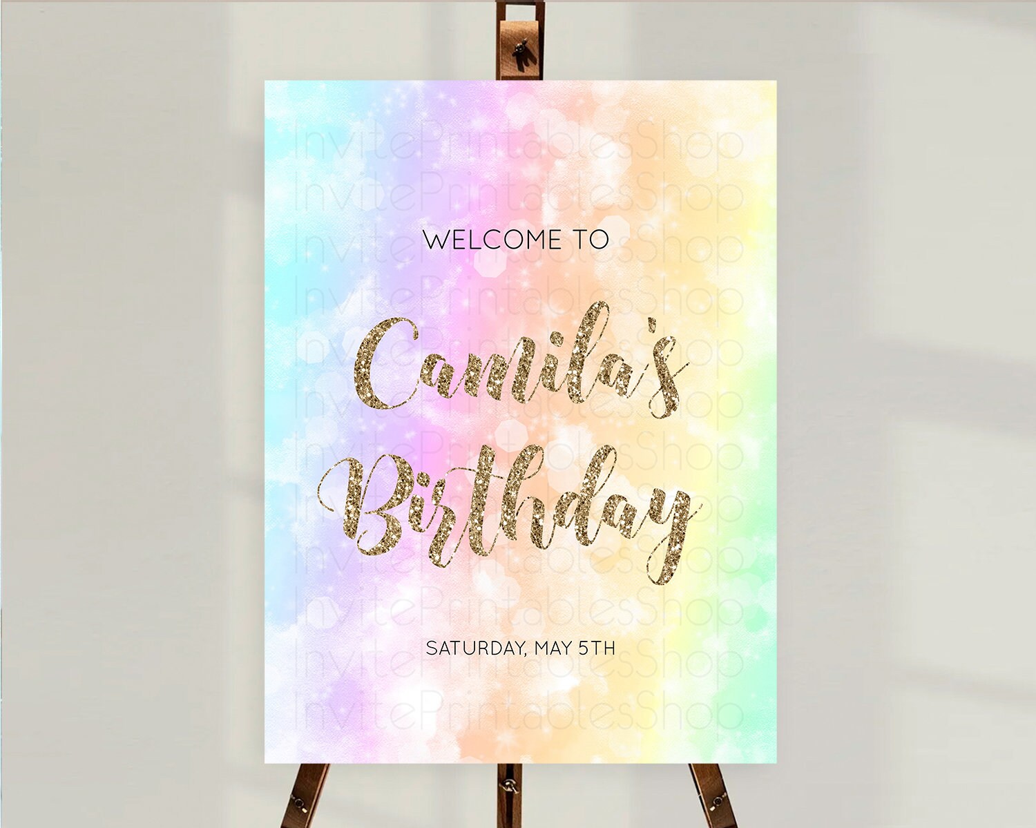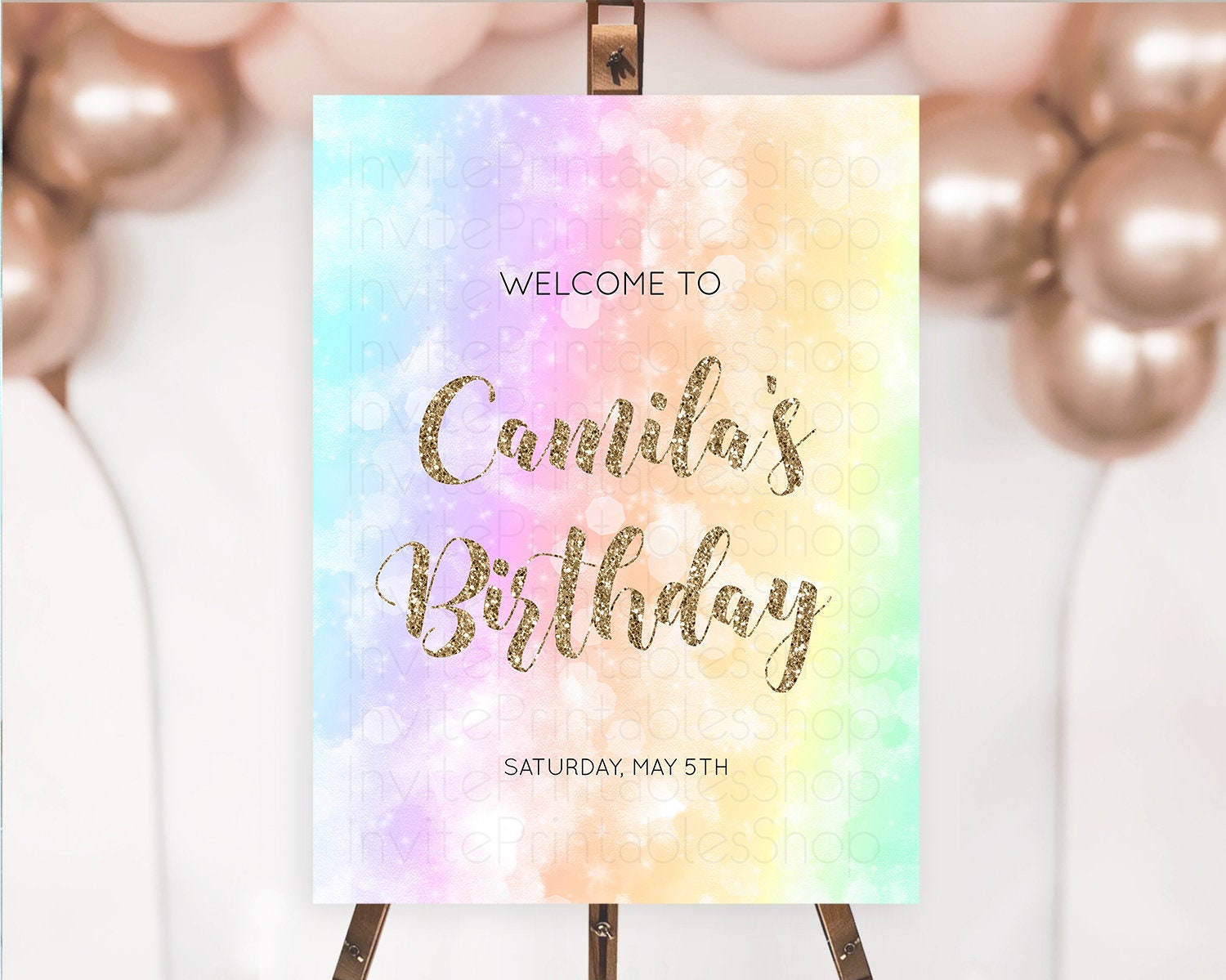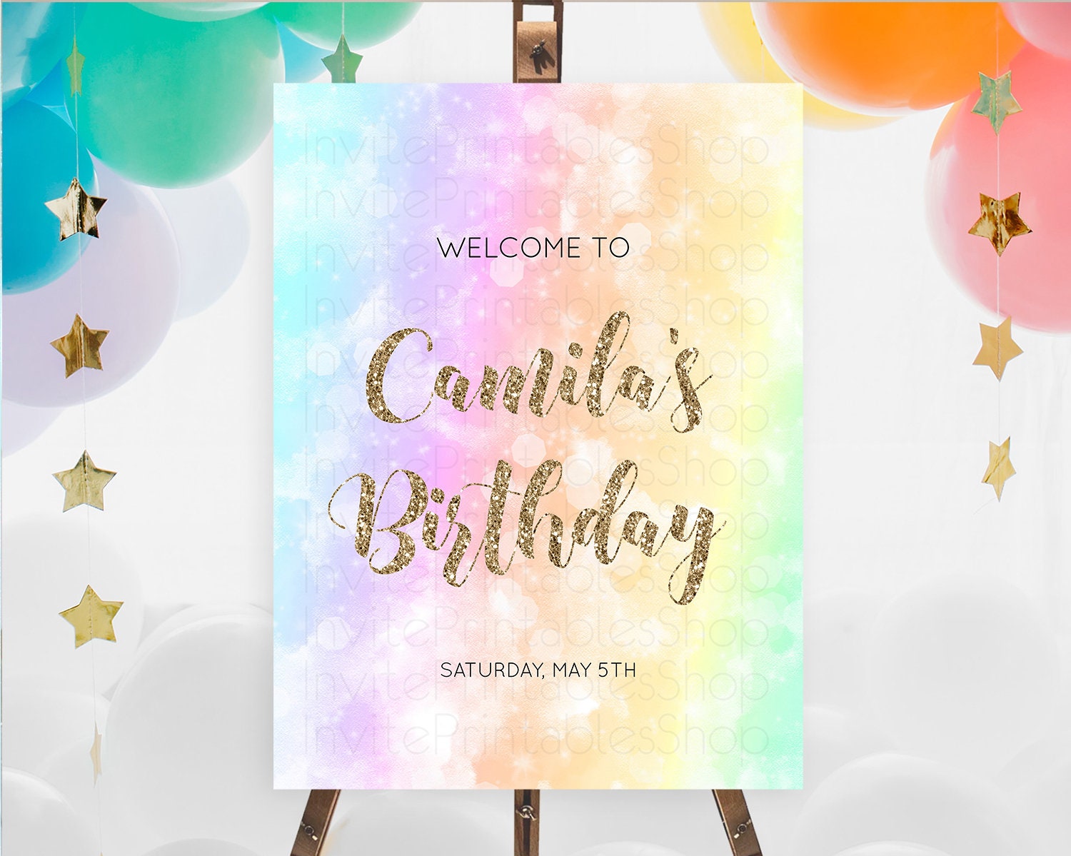 Pastel Welcome Sign Pastel Rainbow Welcome Sign Colorful Rainbow Confetti Watercolor Glitter Pastel First Birthday Welcome Sign D10648
