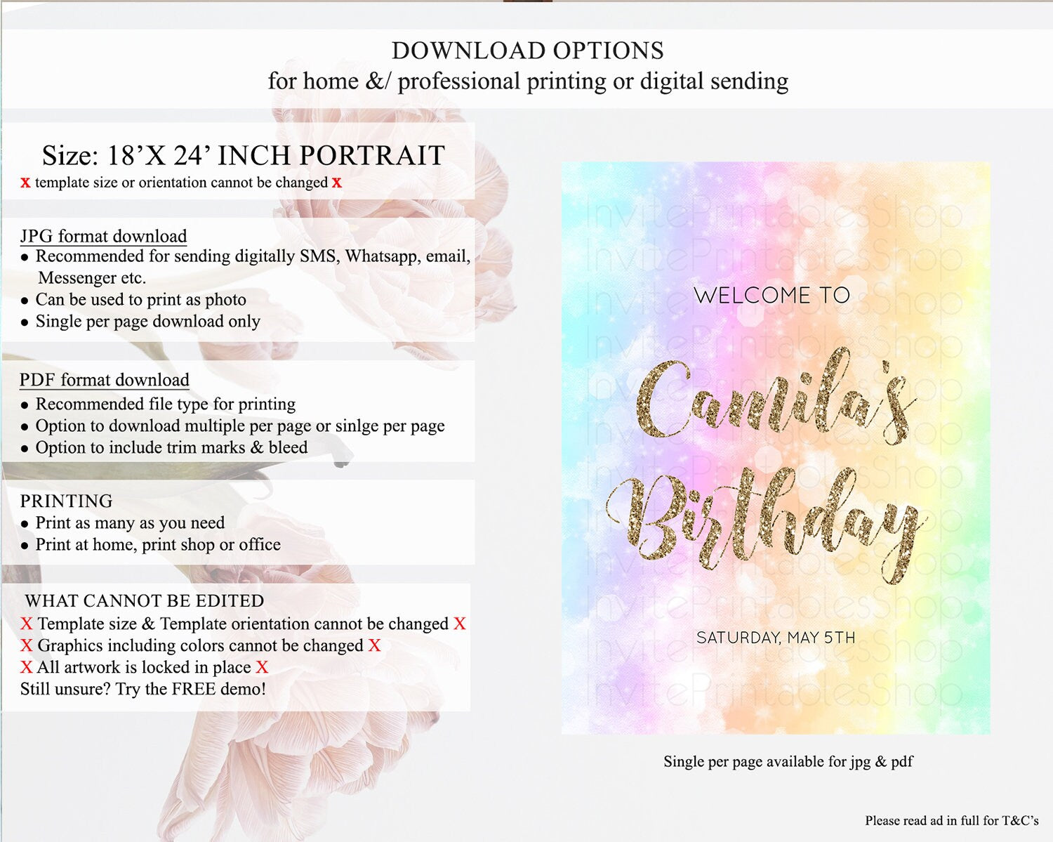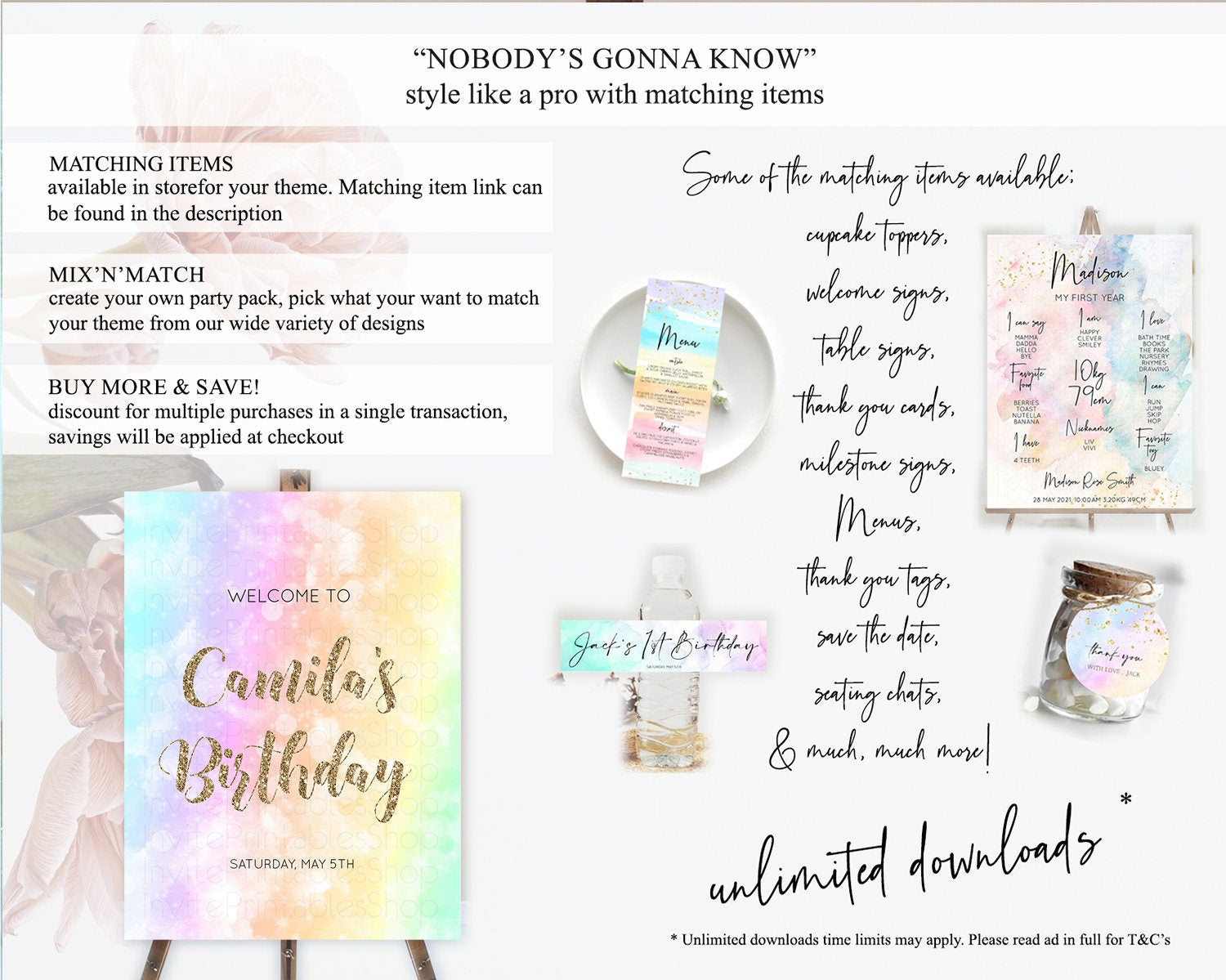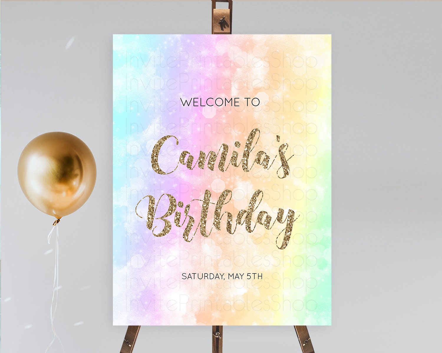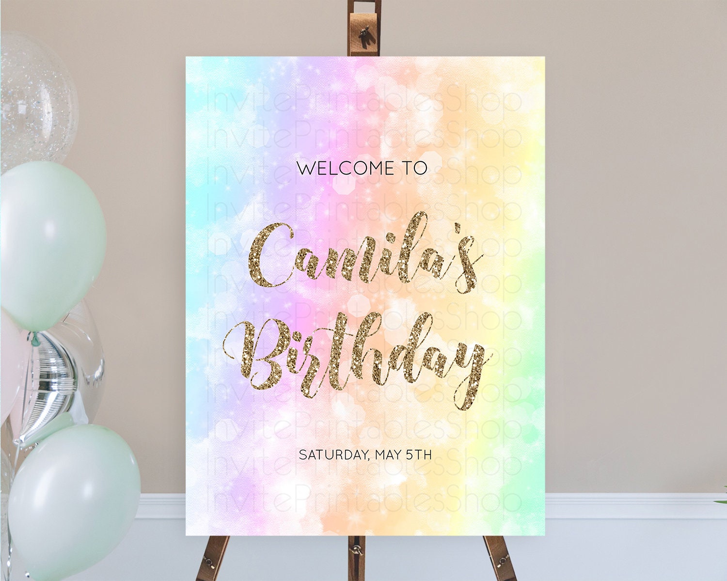 Pastel Welcome Sign Pastel Rainbow Welcome Sign Colorful Rainbow Confetti Watercolor Glitter Pastel First Birthday Welcome Sign D10648