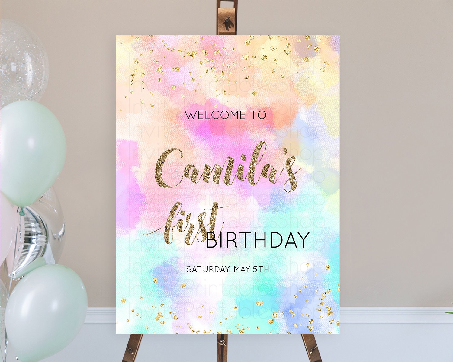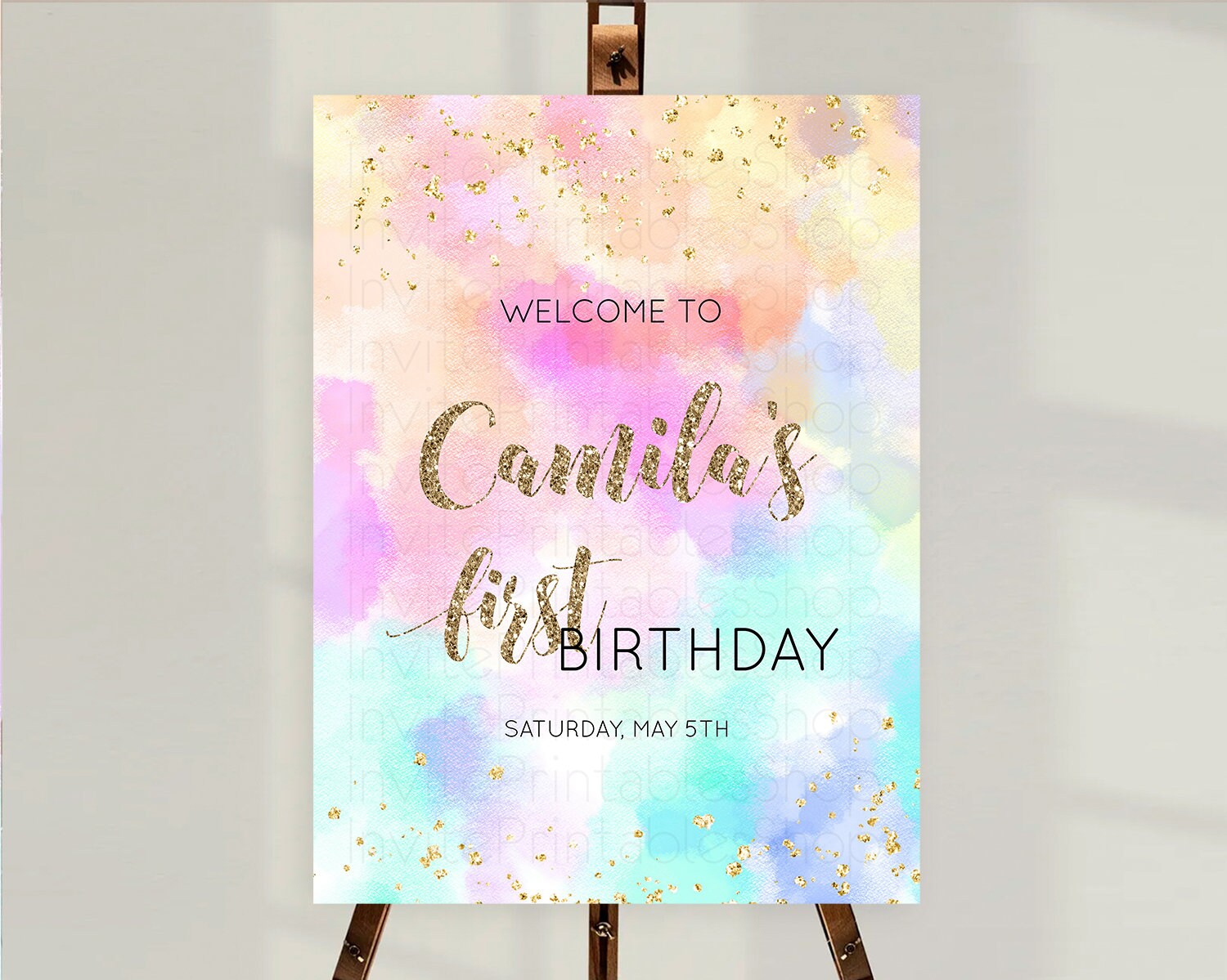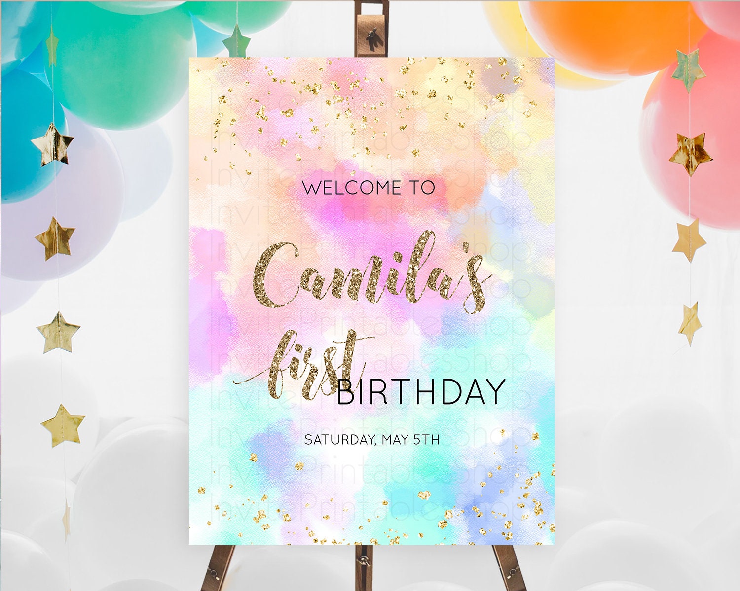 Pastel Welcome Sign Pastel Rainbow Welcome Sign Colorful Rainbow Confetti Watercolor Glitter Pastel First Birthday Welcome Sign D10669
