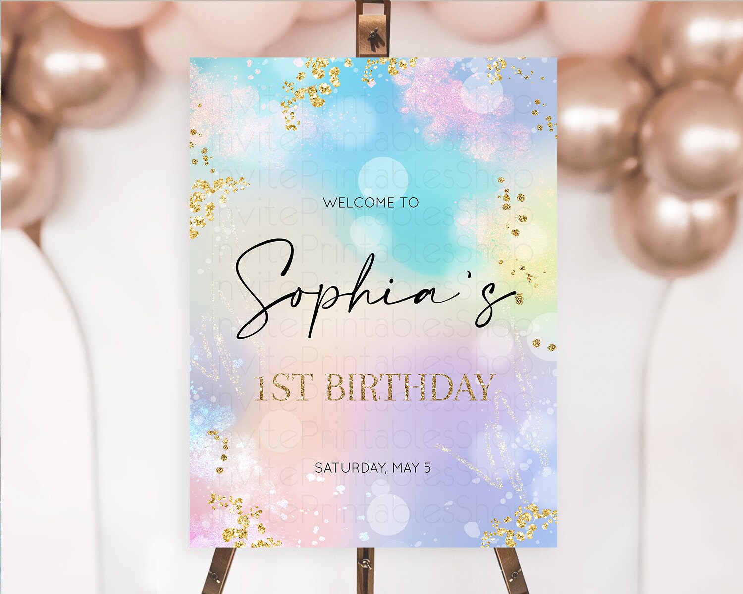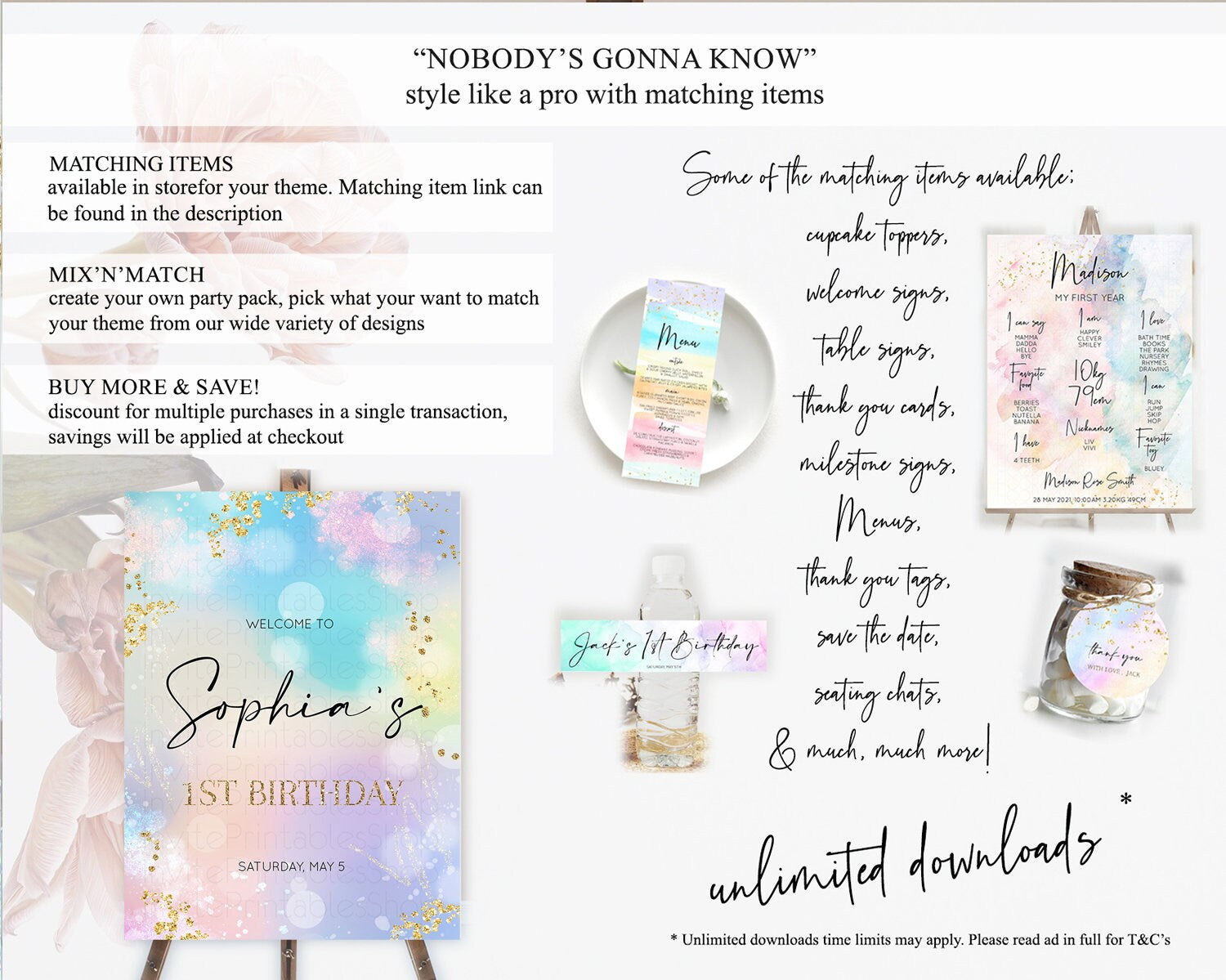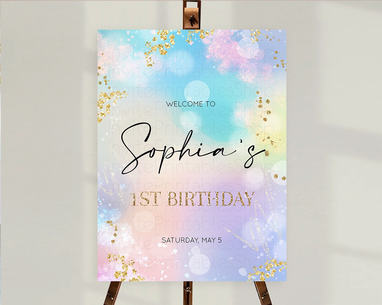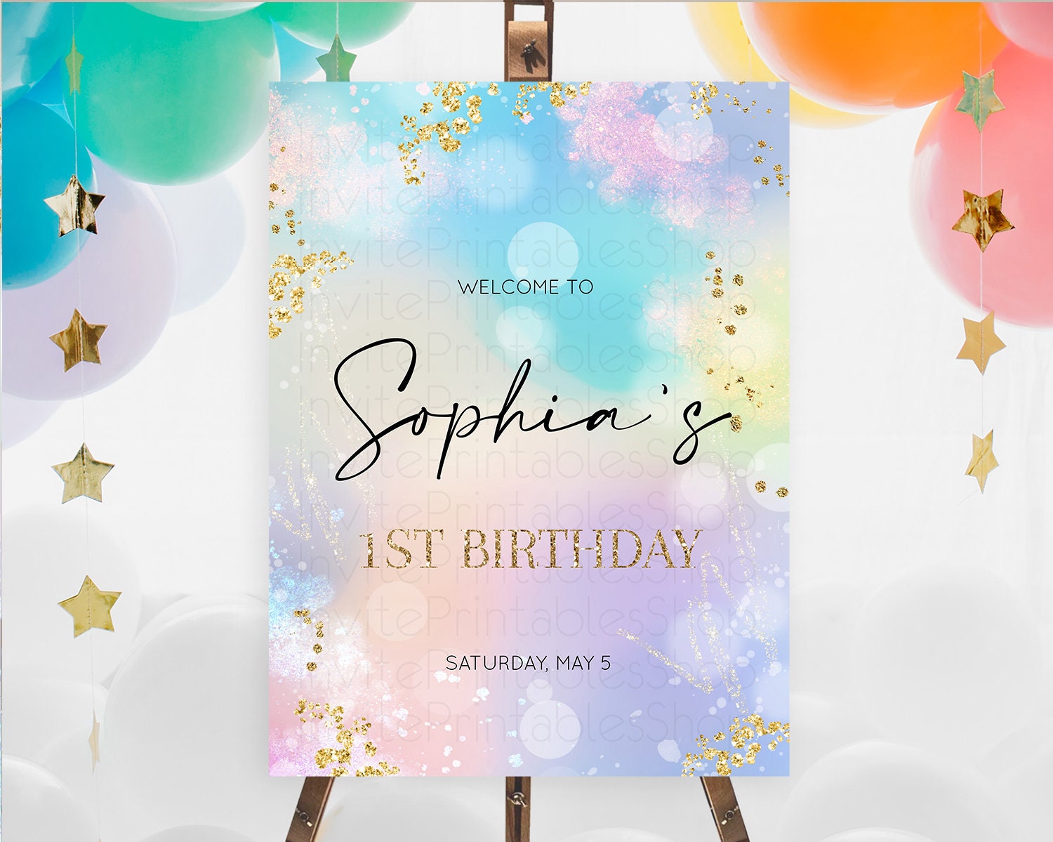 Pastel Welcome Sign Pastel Rainbow Welcome Sign Colorful Rainbow Confetti Watercolor Glitter Pastel First Birthday Welcome Sign D10675