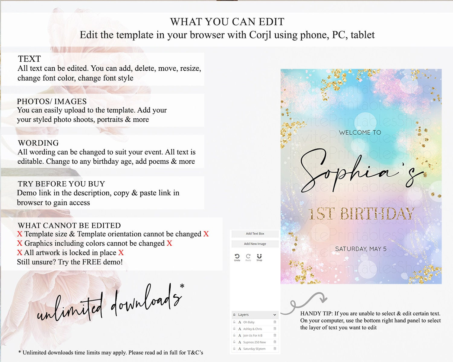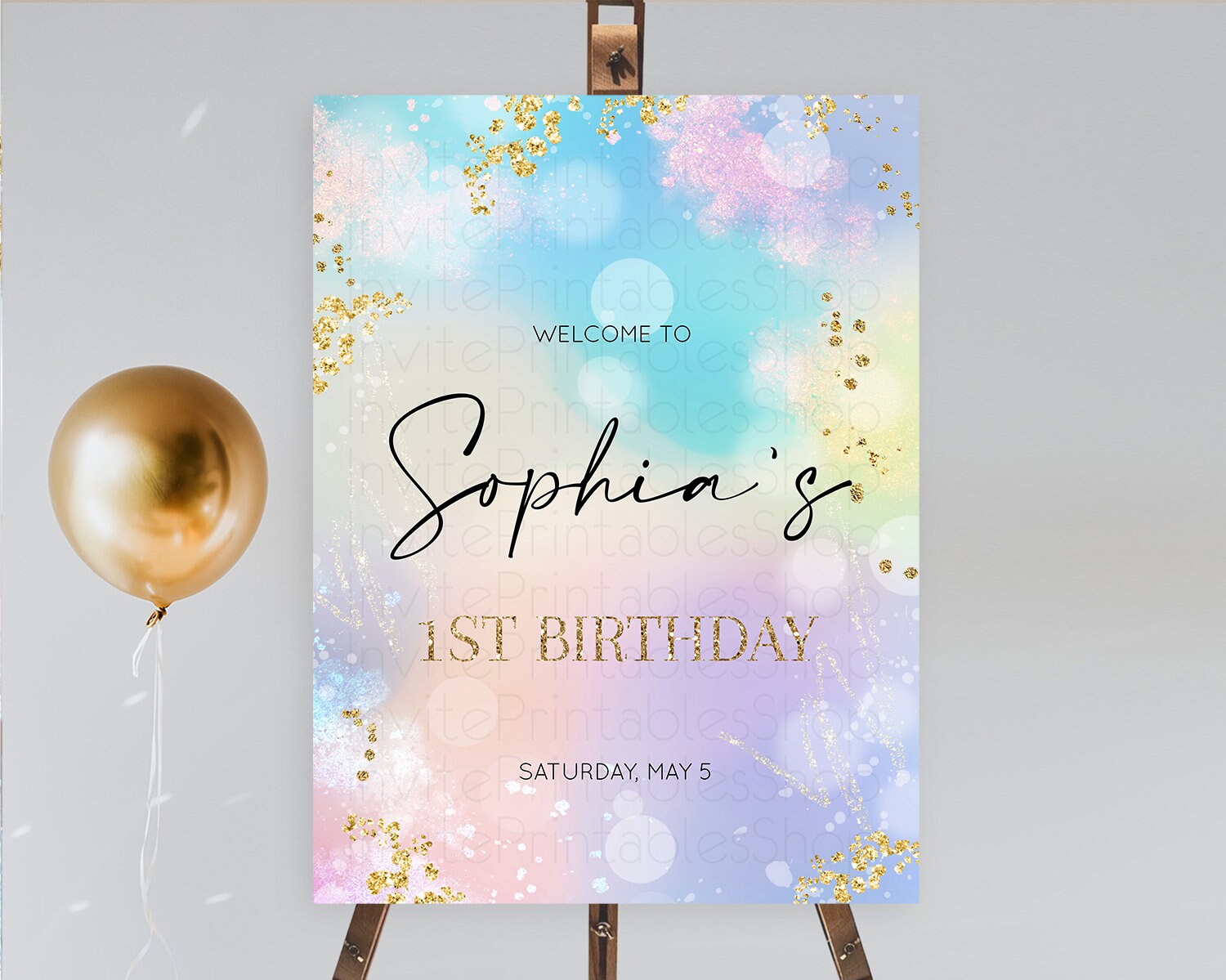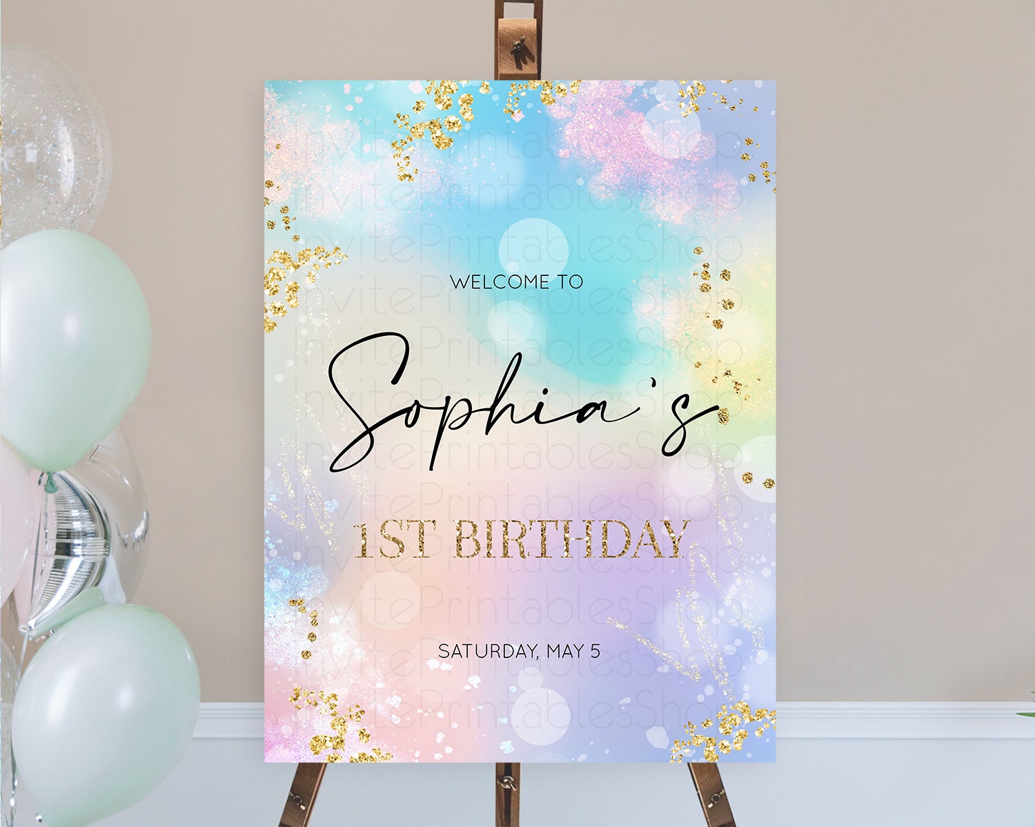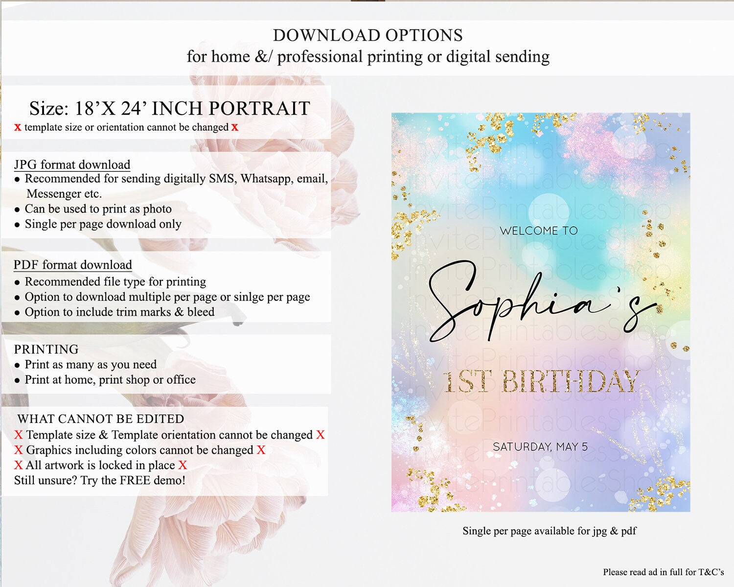 Pastel Welcome Sign Pastel Rainbow Welcome Sign Colorful Rainbow Confetti Watercolor Glitter Pastel First Birthday Welcome Sign D10675