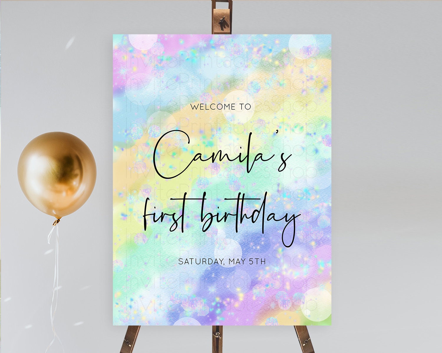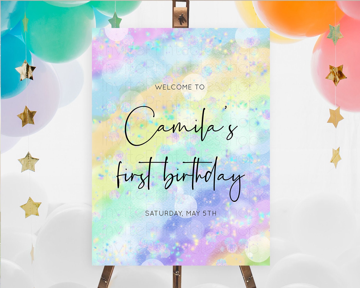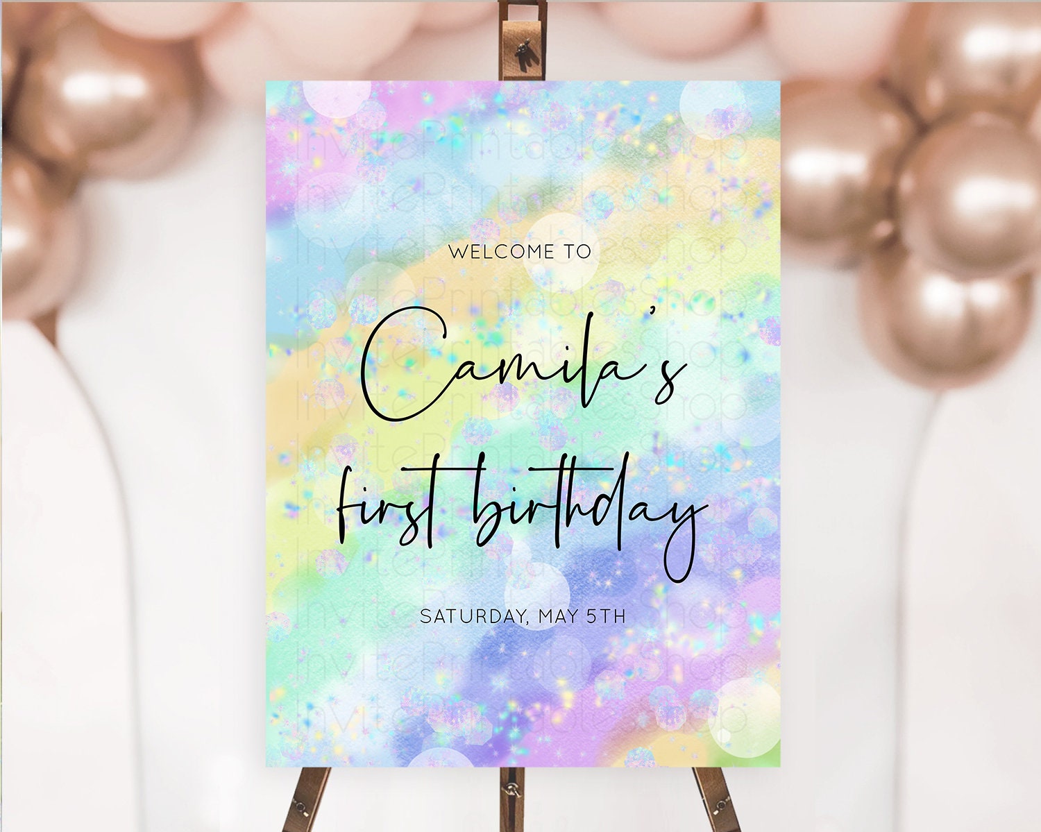 Pastel Welcome Sign Pastel Rainbow Welcome Sign Colorful Rainbow Confetti Watercolor Glitter Pastel First Birthday Welcome Sign D10689