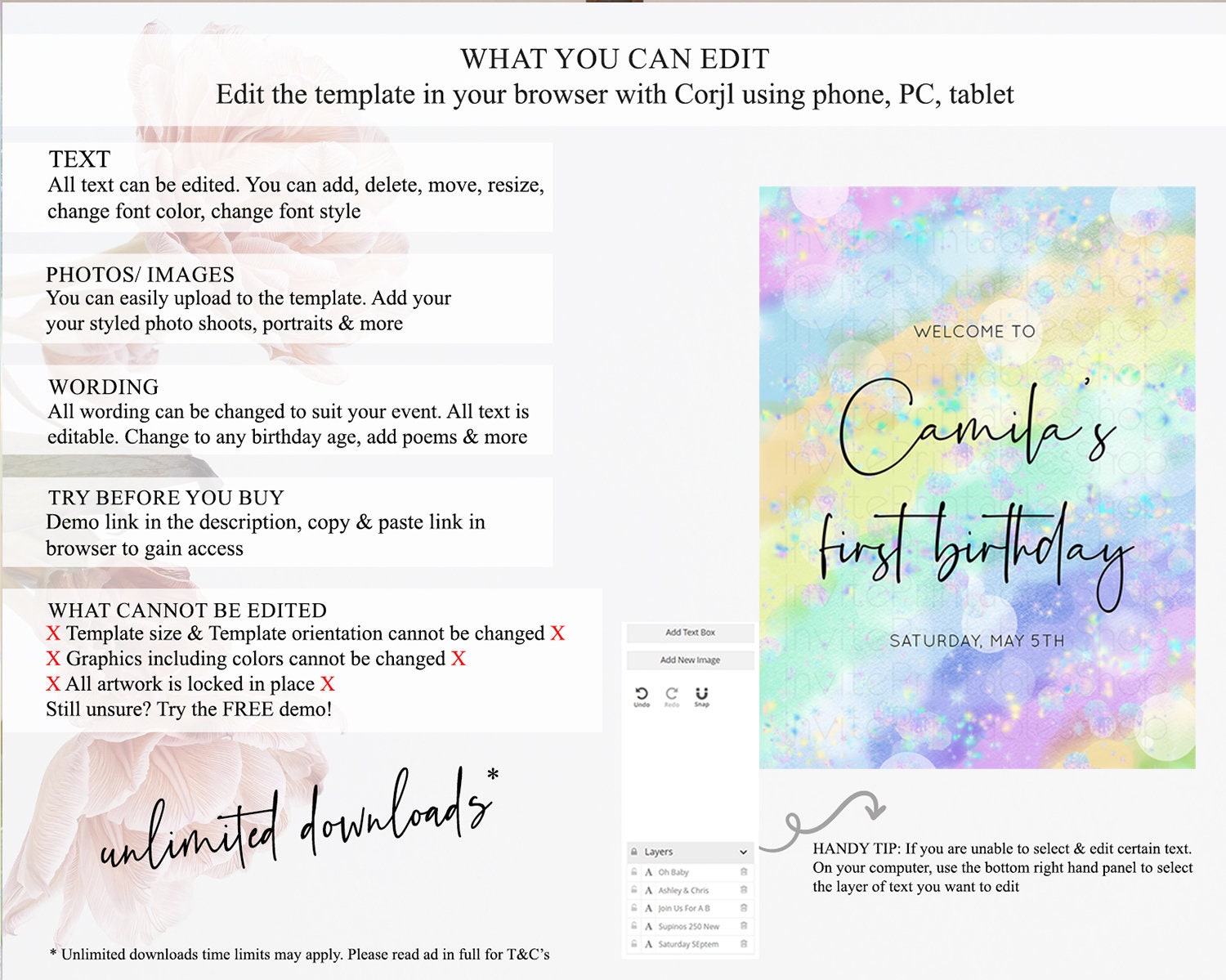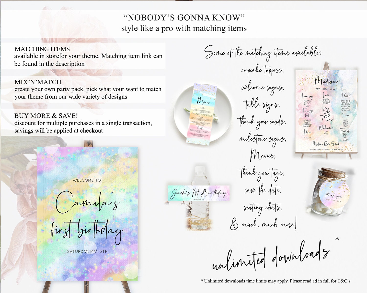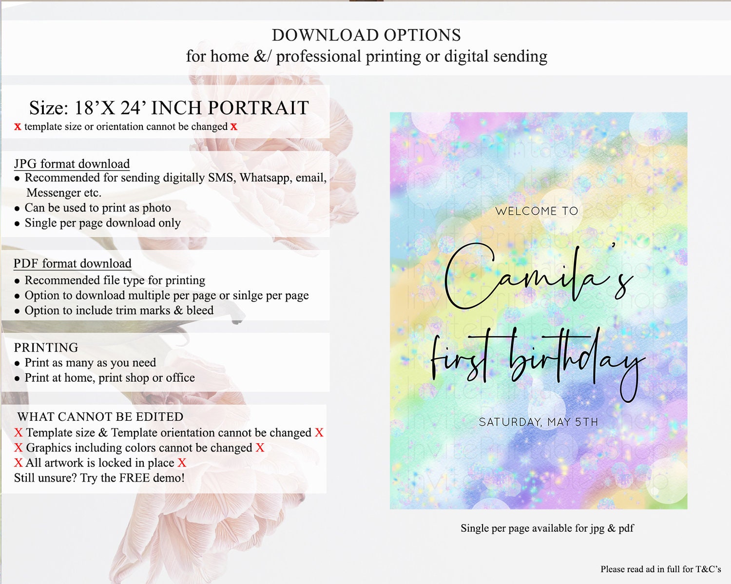 Pastel Welcome Sign Pastel Rainbow Welcome Sign Colorful Rainbow Confetti Watercolor Glitter Pastel First Birthday Welcome Sign D10689