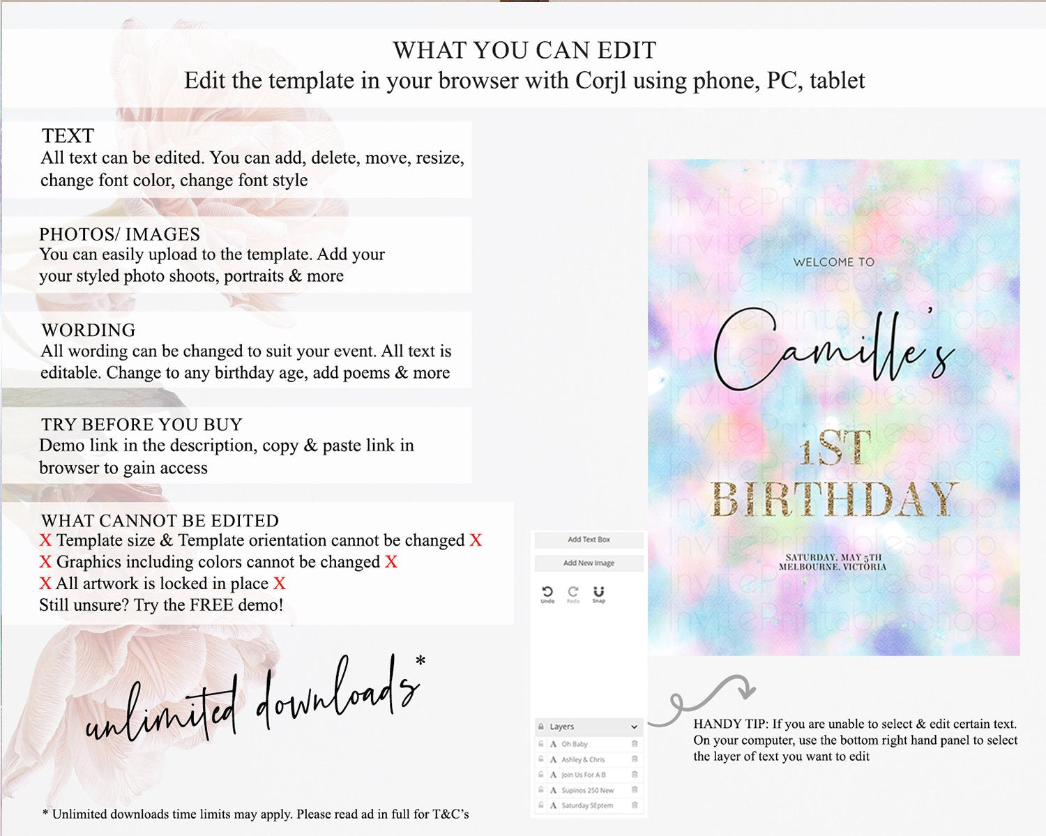 • After purchase, Corjl emails your editing link. Allow up to 15 minutes for delivery.