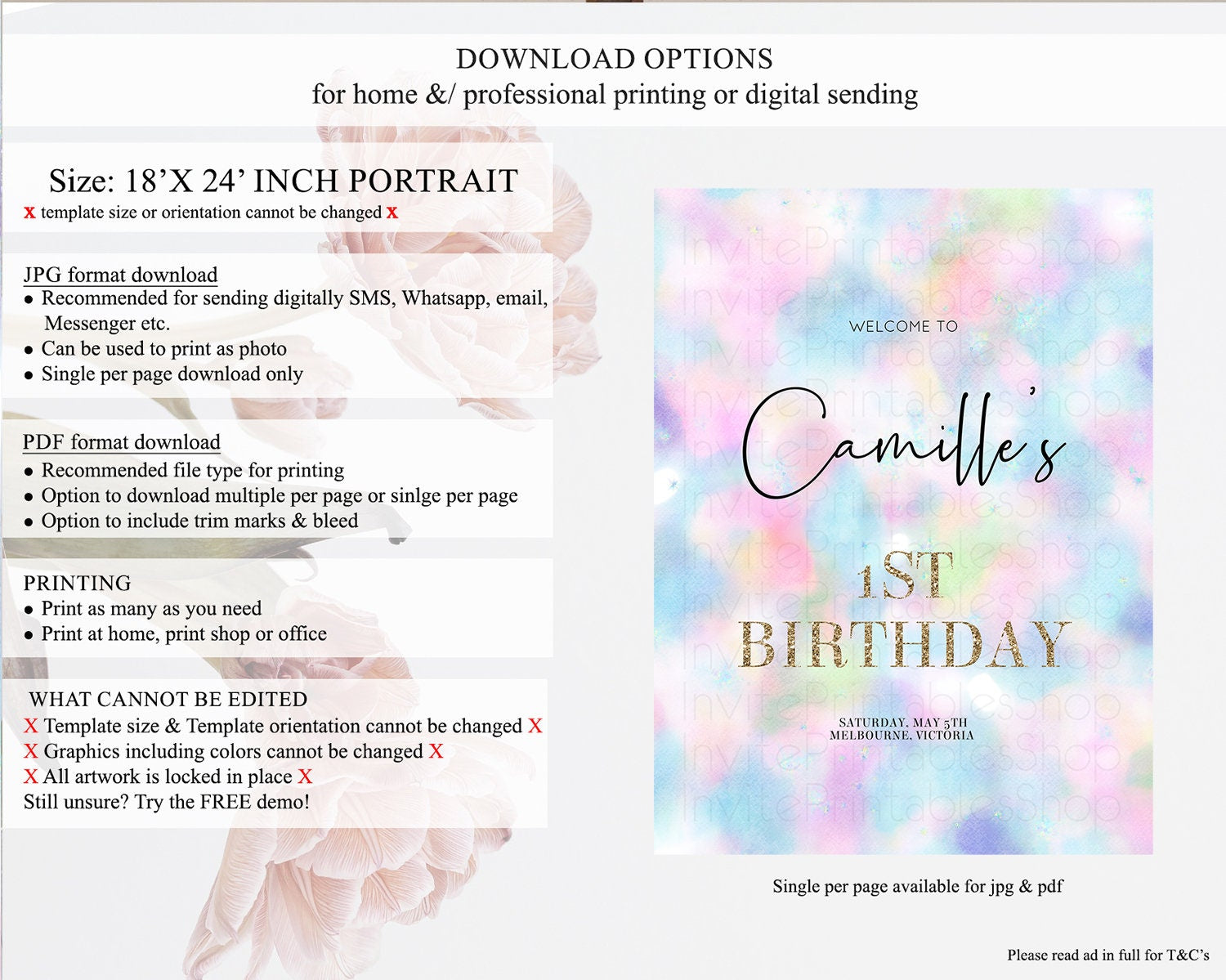 • Template size & orientation cannot be changed. Please use the demo link to confirm this product suits your needs.