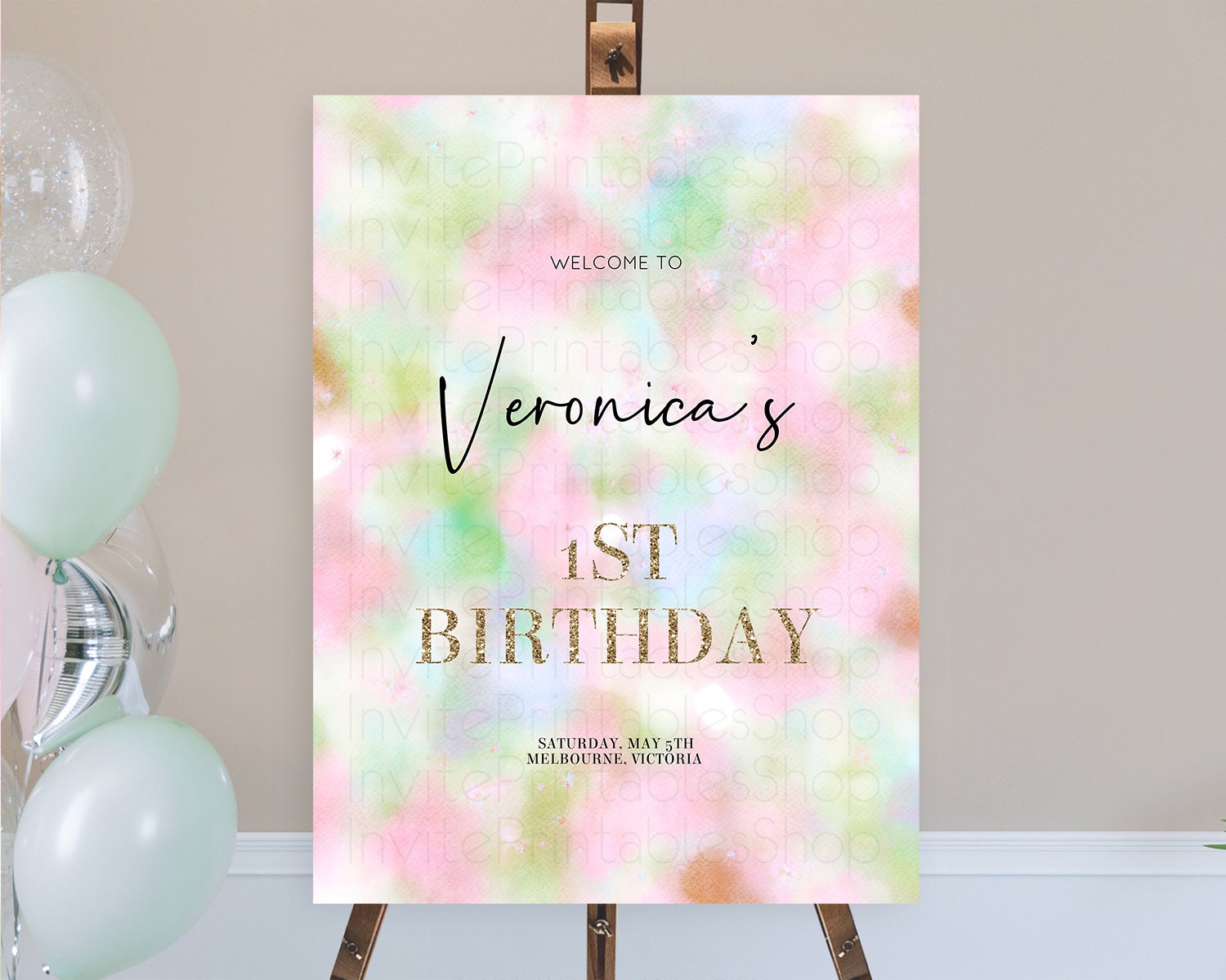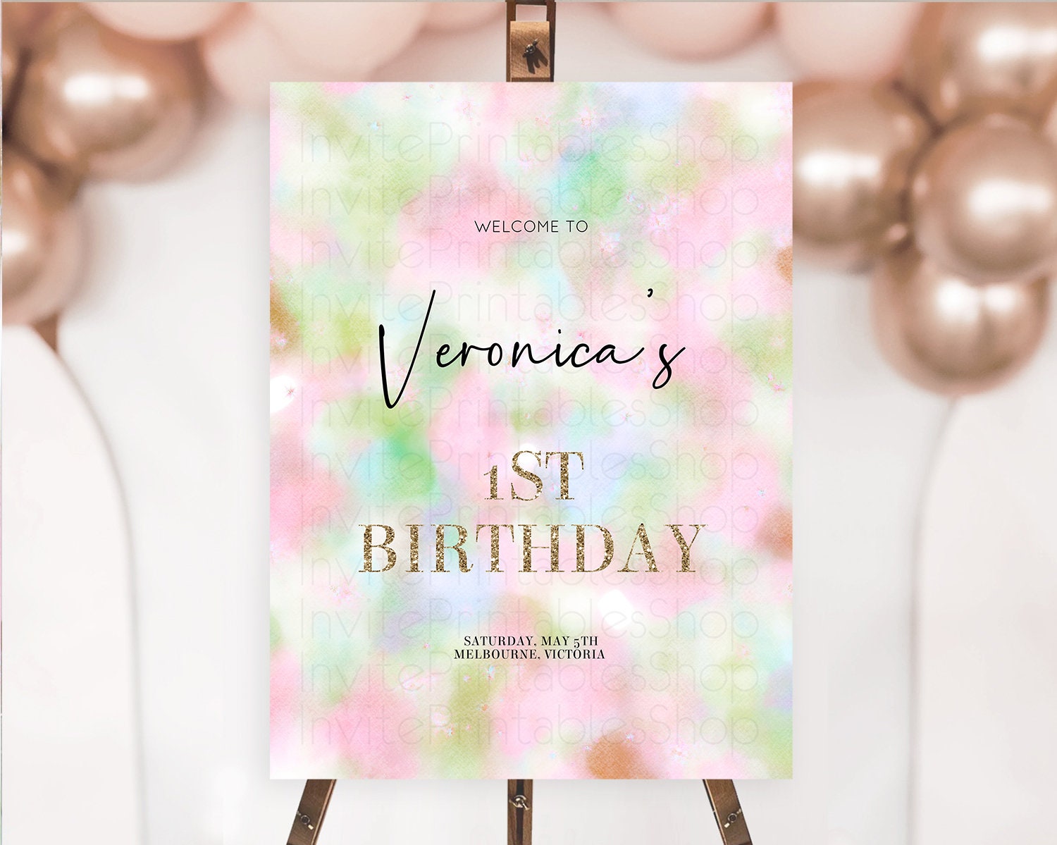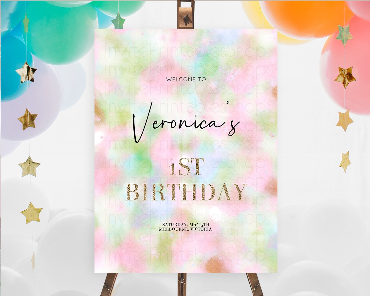 Pastel Welcome Sign Pastel Rainbow Welcome Sign Colorful Rainbow Confetti Watercolor Glitter Pastel First Birthday Welcome Sign D10698