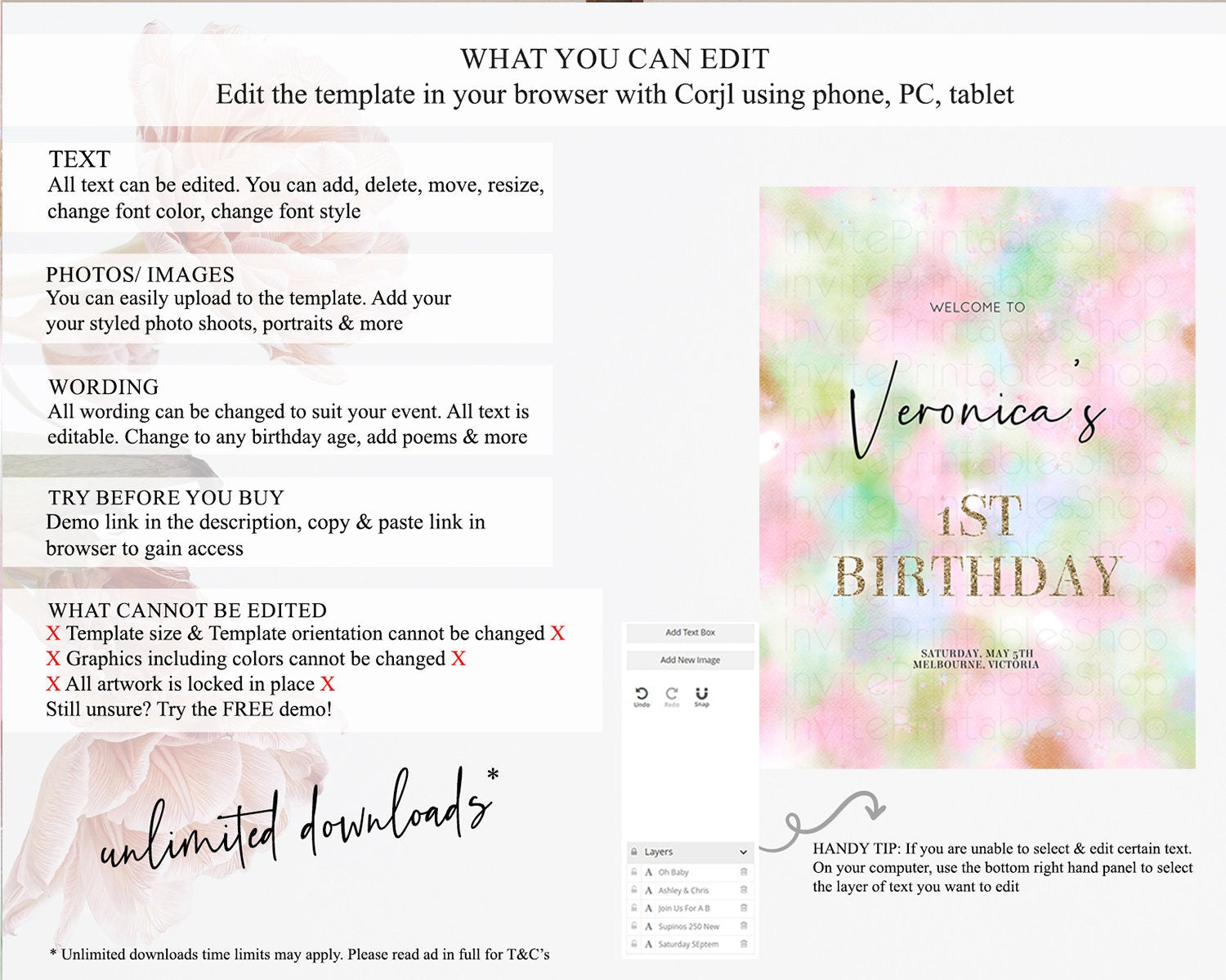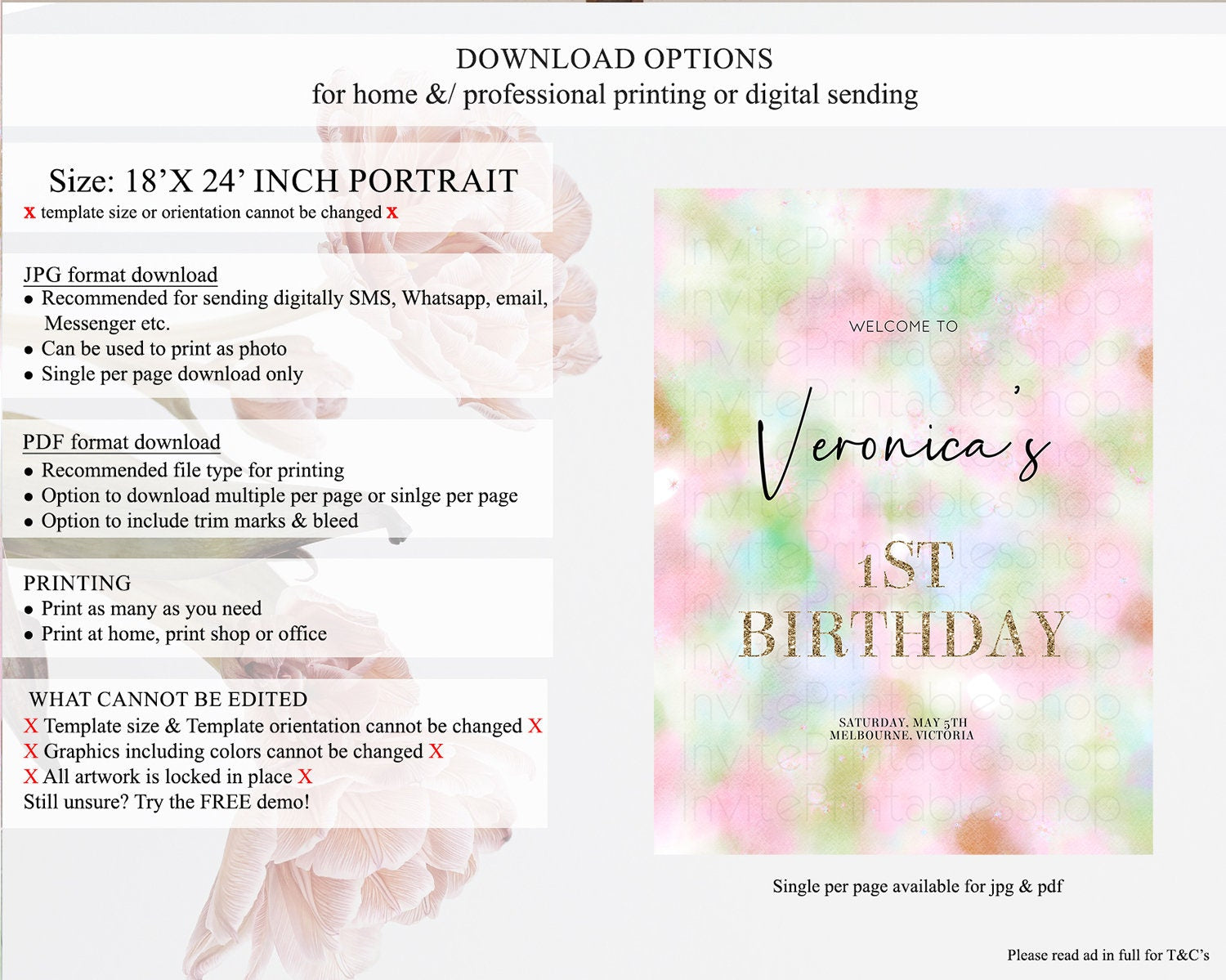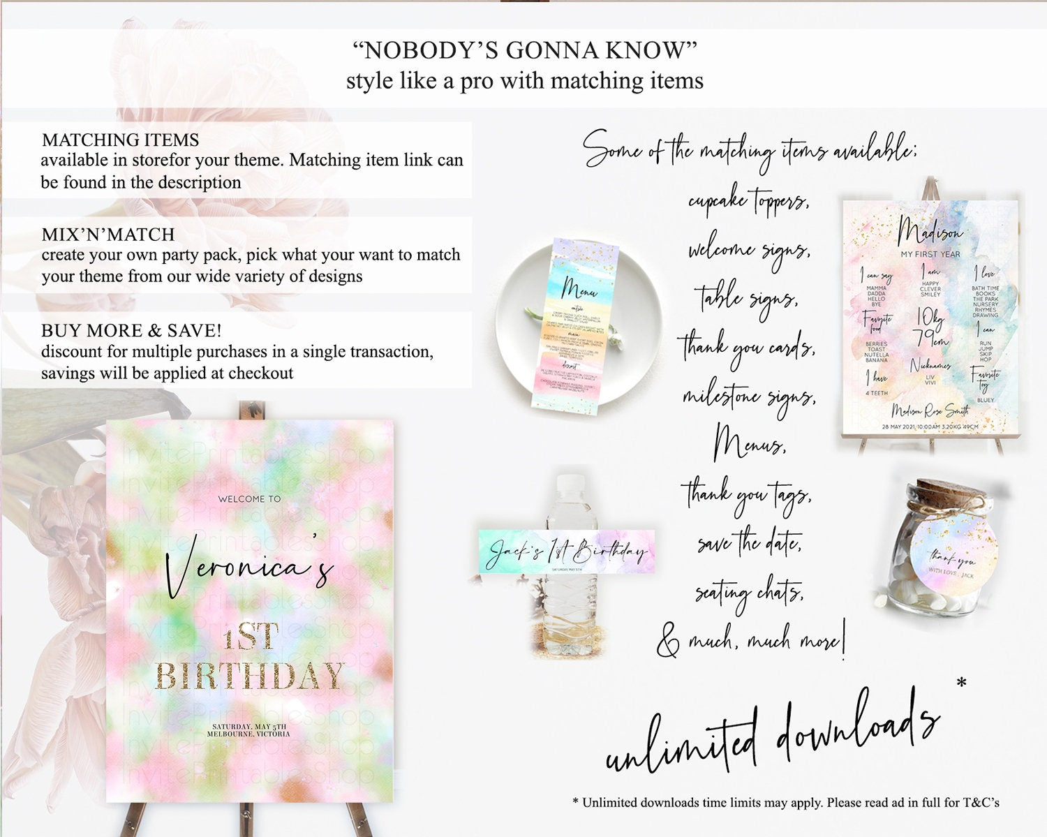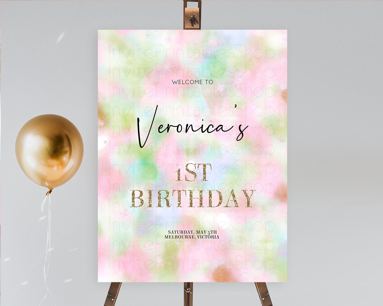 Pastel Welcome Sign Pastel Rainbow Welcome Sign Colorful Rainbow Confetti Watercolor Glitter Pastel First Birthday Welcome Sign D10698