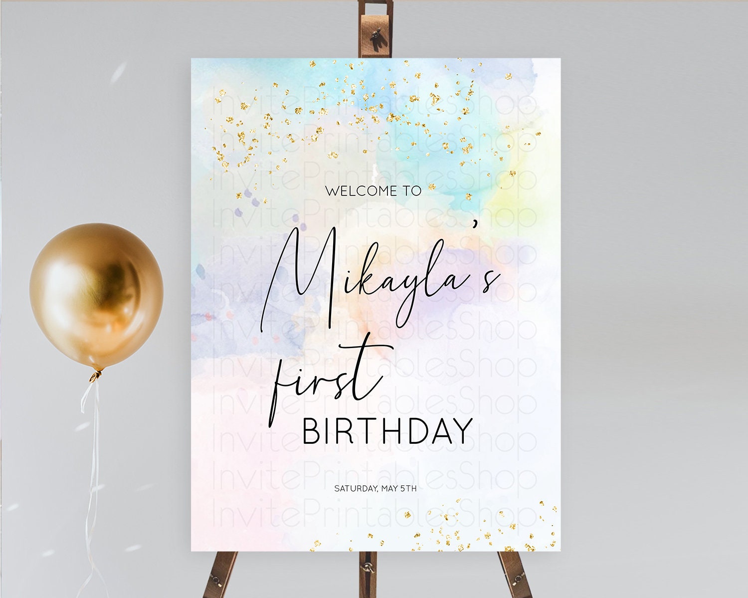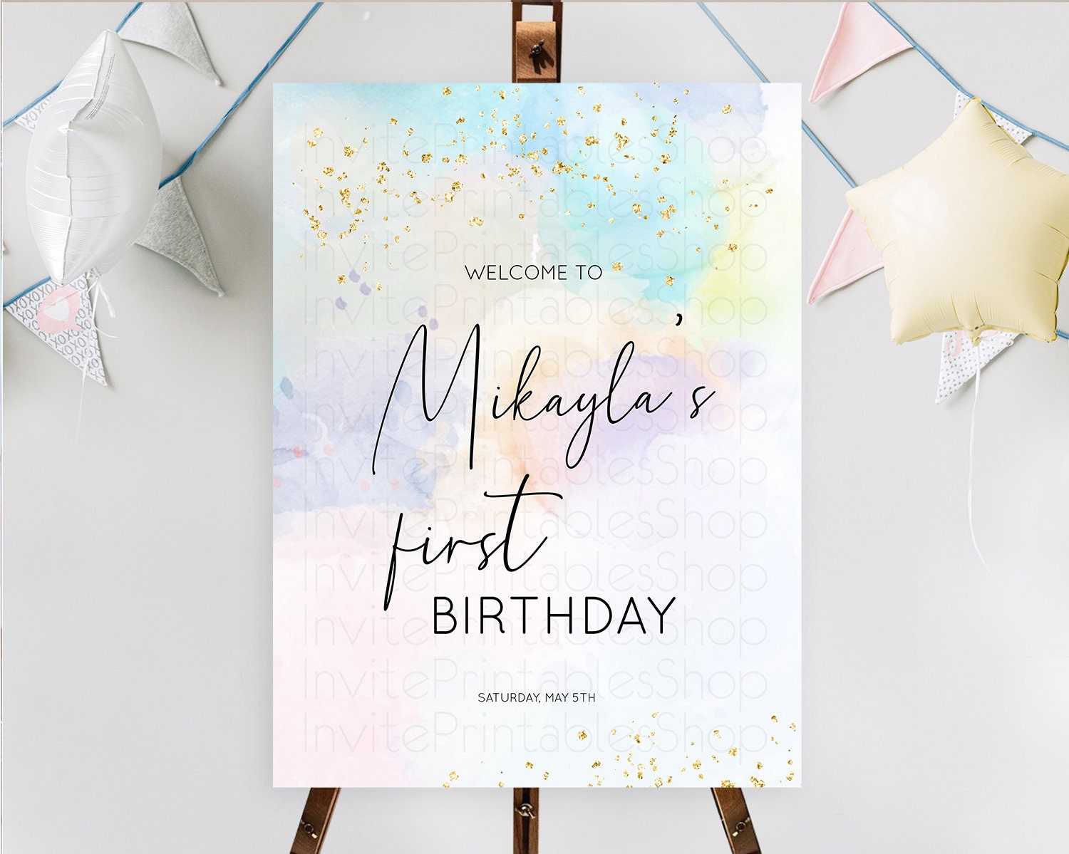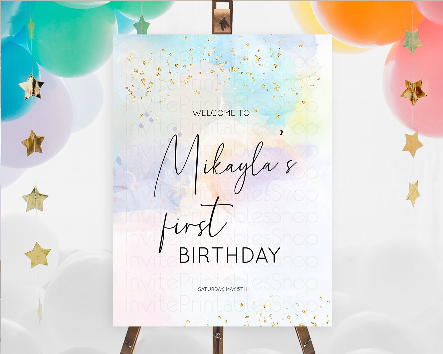 Pastel Welcome Sign Pastel Rainbow Welcome Sign Colorful Rainbow Confetti Watercolor Glitter Pastel First Birthday Welcome Sign D10769