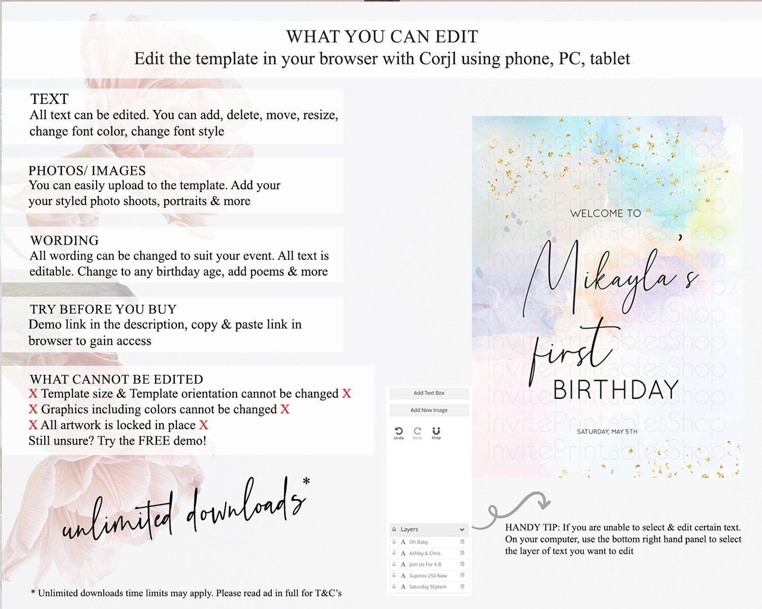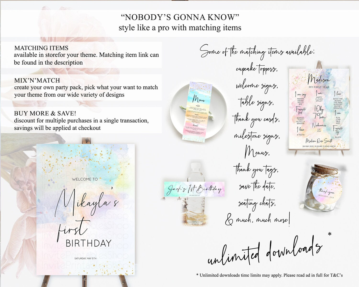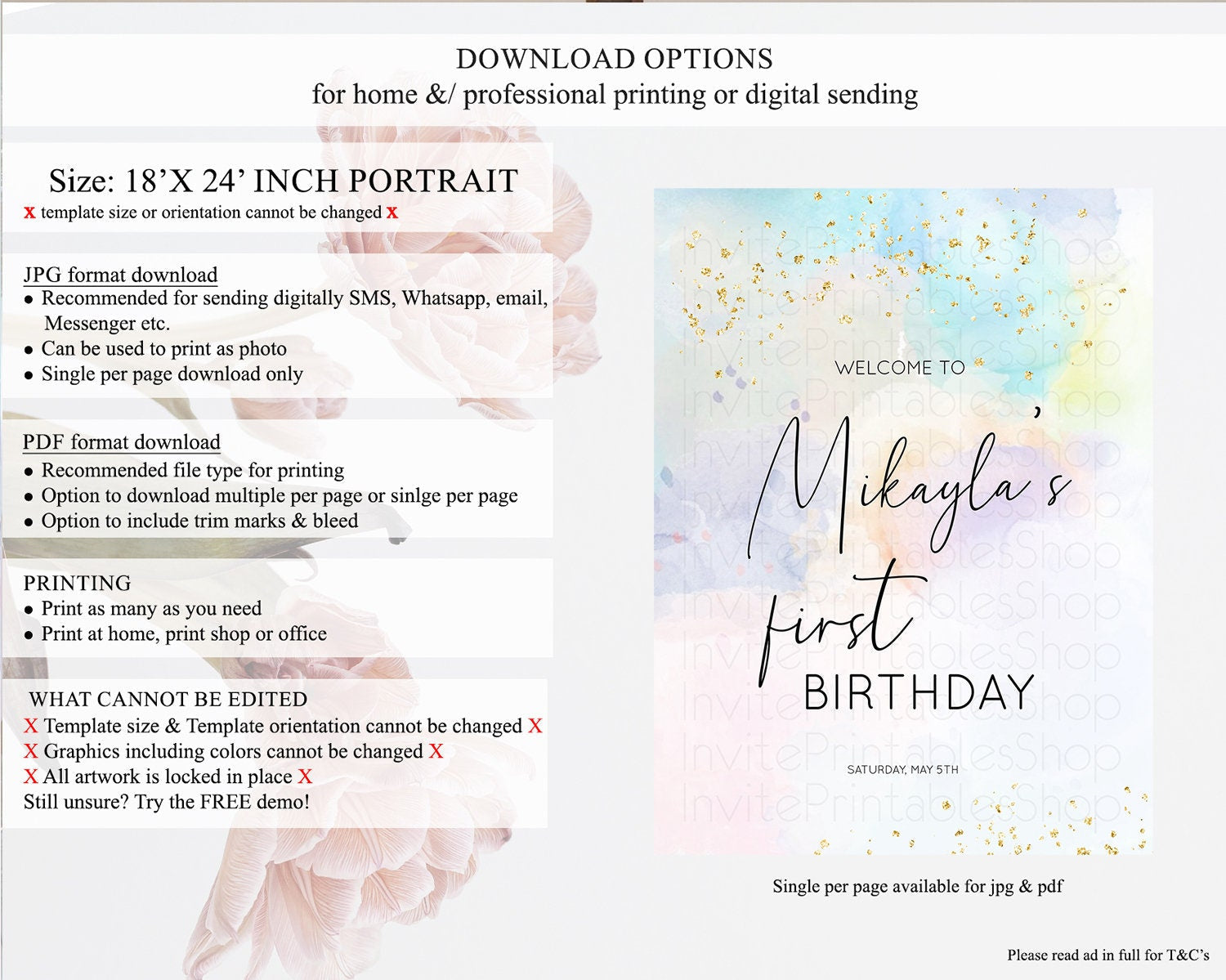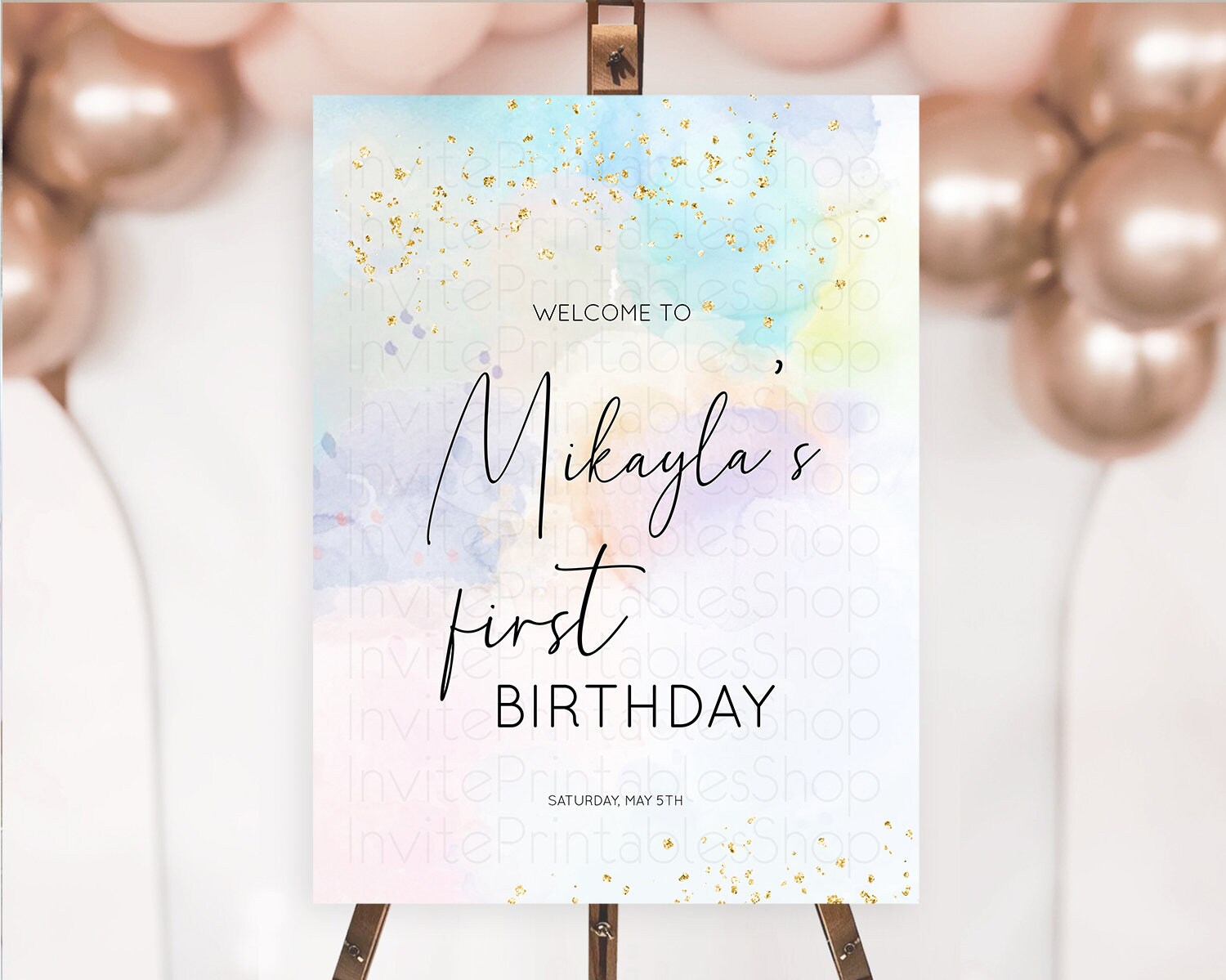 Pastel Welcome Sign Pastel Rainbow Welcome Sign Colorful Rainbow Confetti Watercolor Glitter Pastel First Birthday Welcome Sign D10769